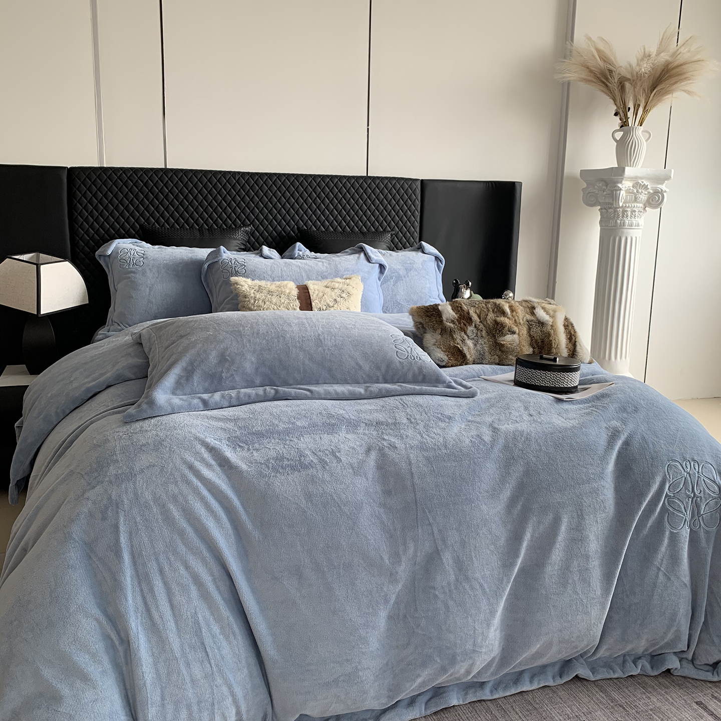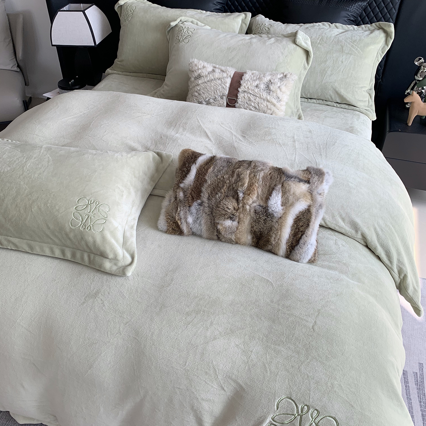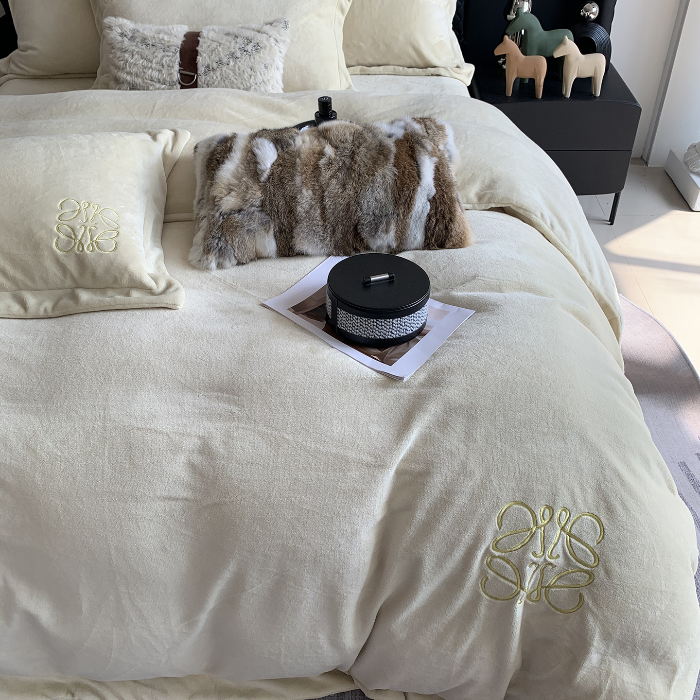 莱豫家纺 2025秋冬新品加厚牛奶绒刺绣款四件套宽边工艺全消光牛奶绒 罗意威温柔浅杏