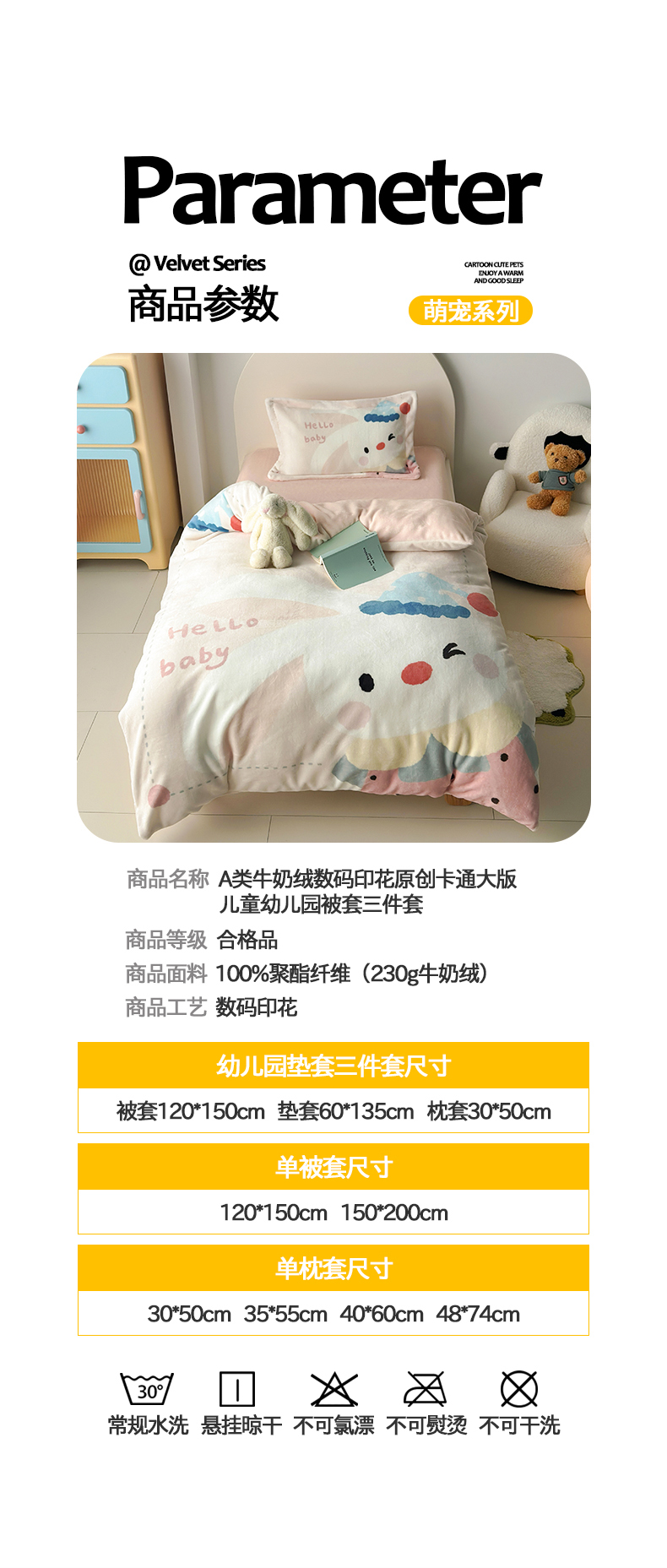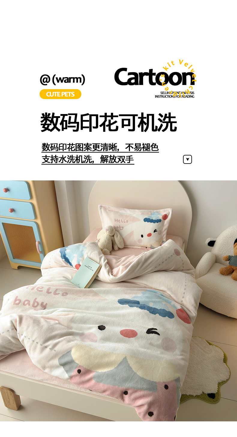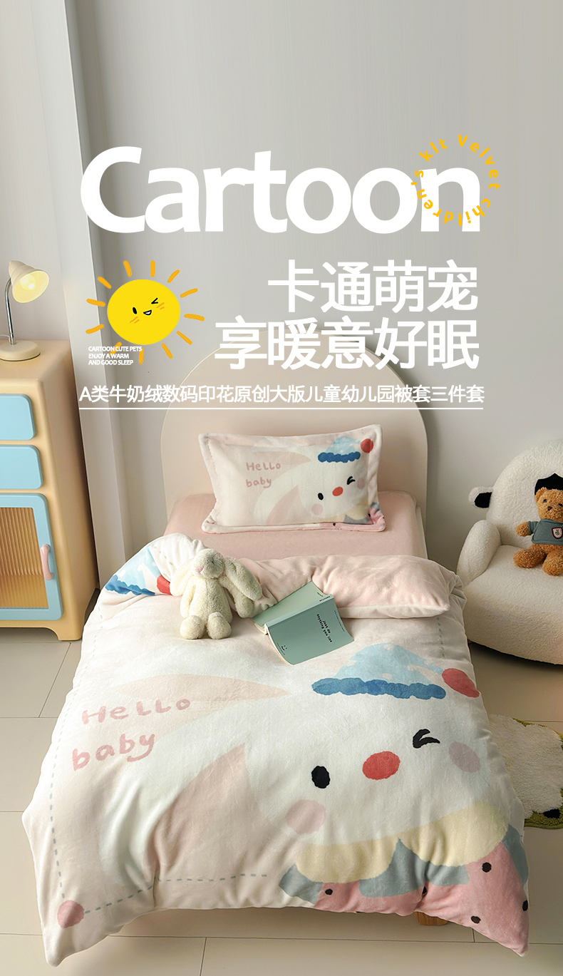 当前位置: 91家纺网 > 商品网购 > 床品套件 > 三件套 > 荷马之梦 2025新款A类牛奶绒数码印花原创卡通大版儿童幼儿园被套三件套-萌宠系列 小兔贝贝