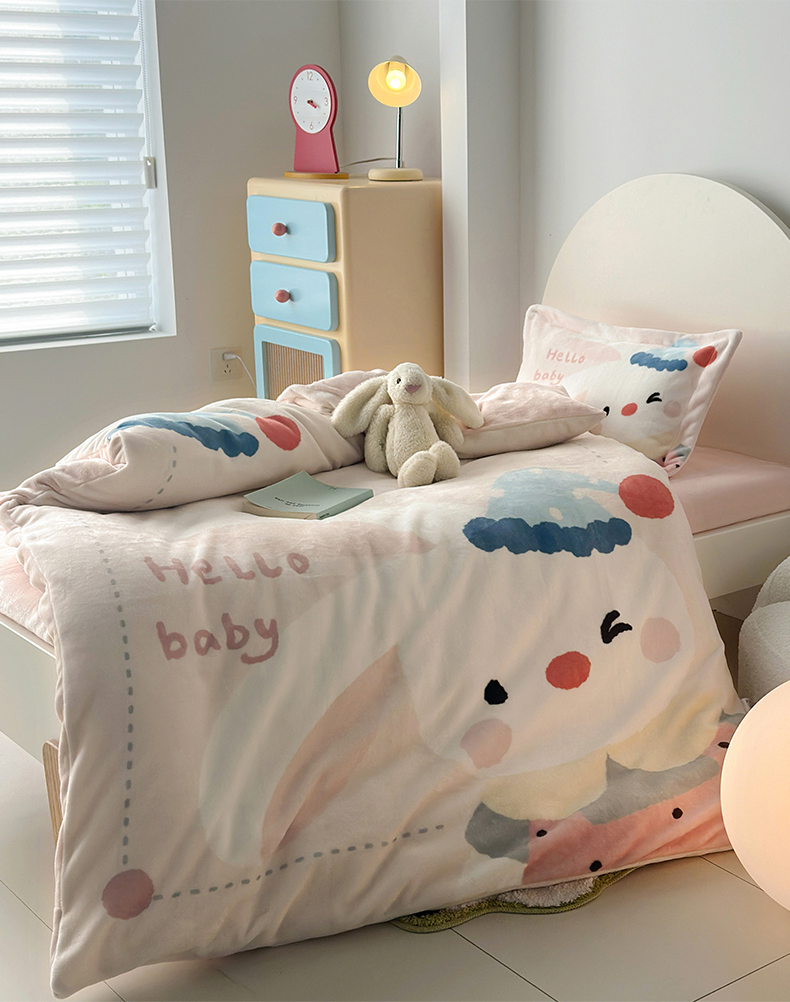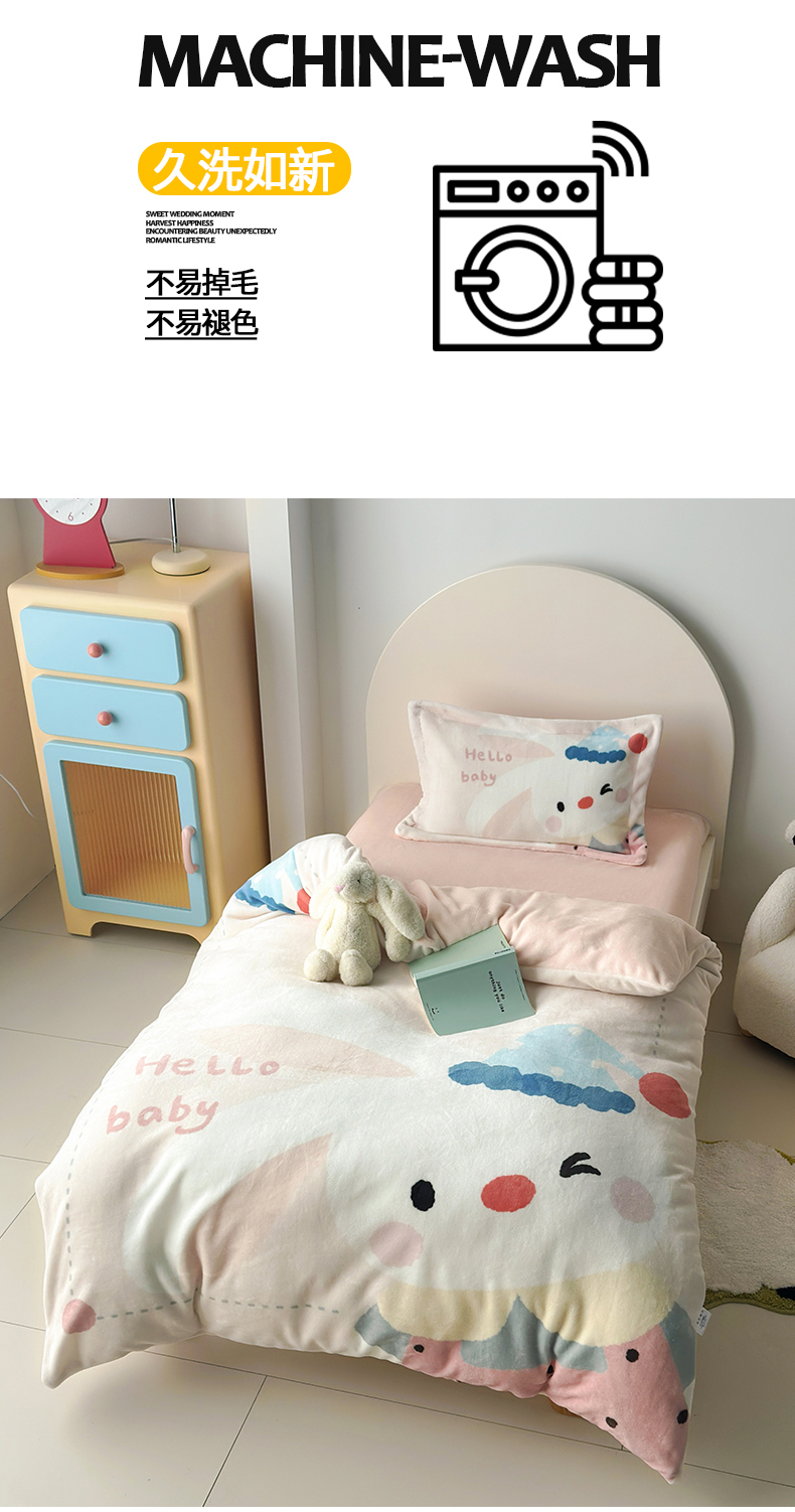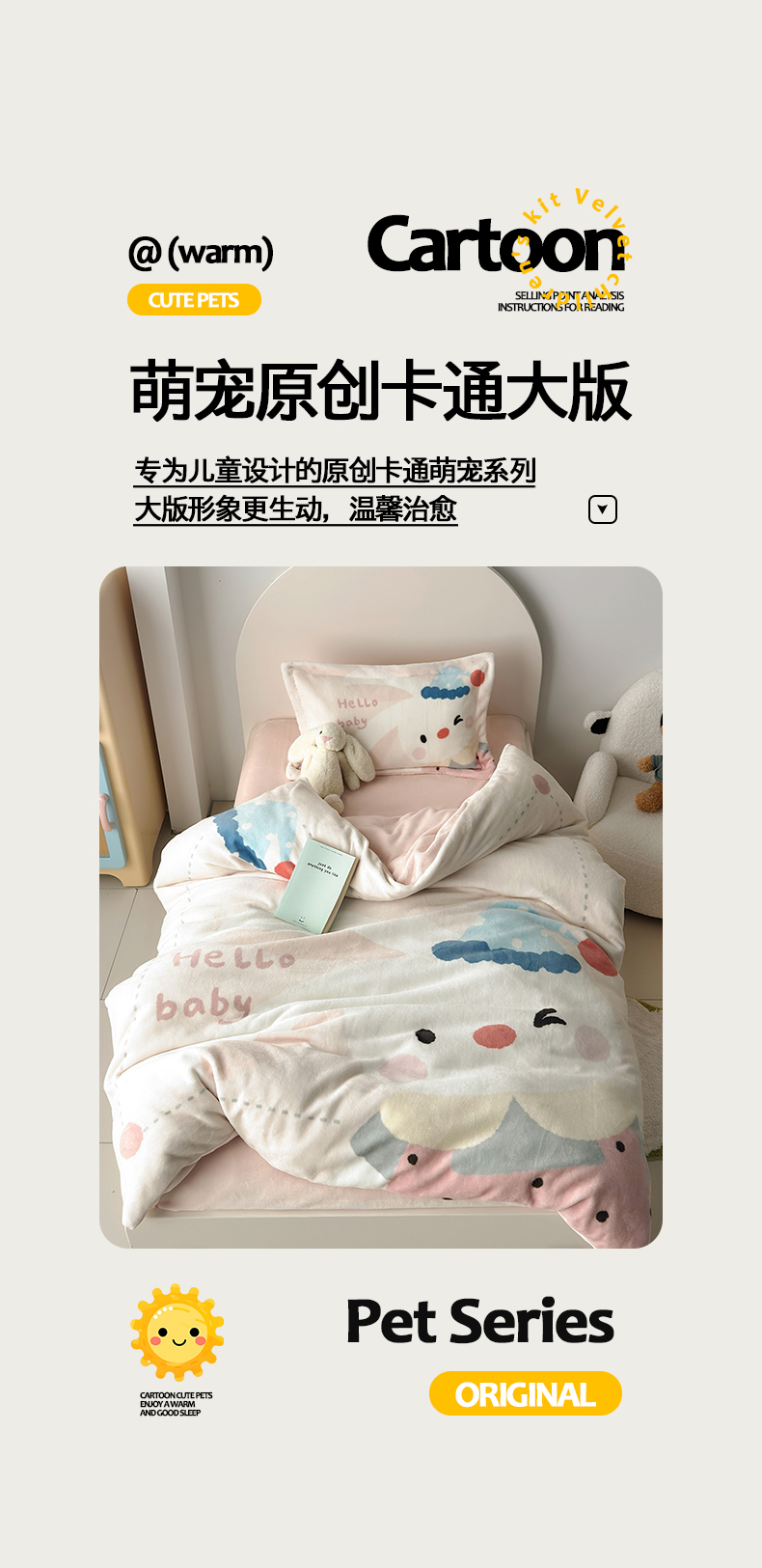 当前位置: 91家纺网 > 商品网购 > 床品套件 > 三件套 > 荷马之梦 2025新款A类牛奶绒数码印花原创卡通大版儿童幼儿园被套三件套-萌宠系列 小兔贝贝