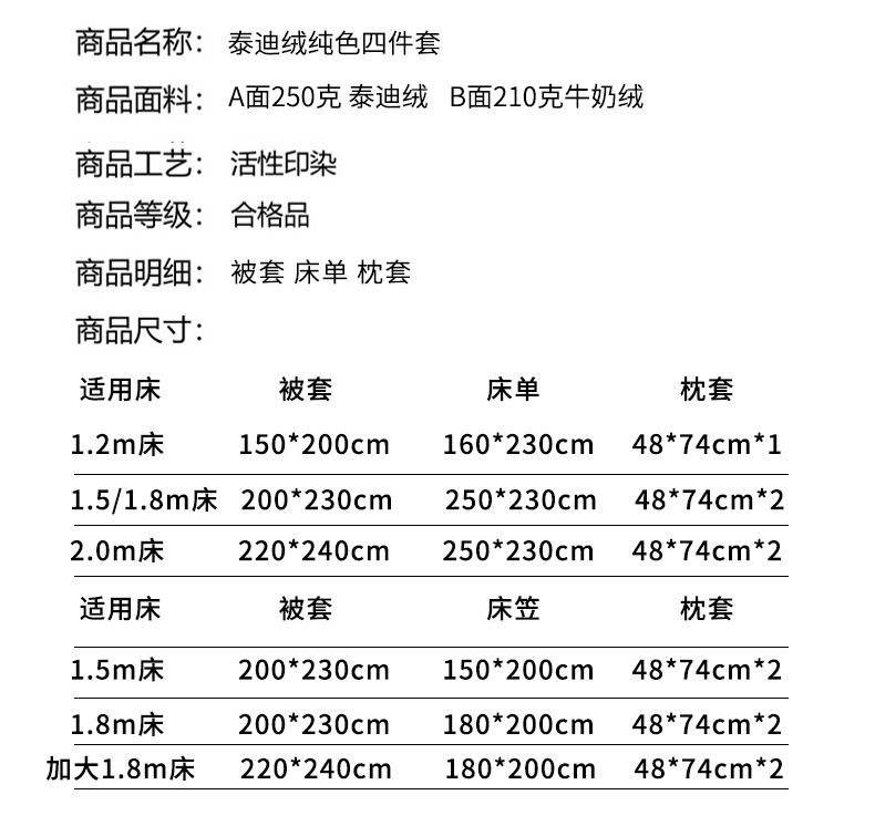 1.8m床笠款四件套 | ¥92.00 |