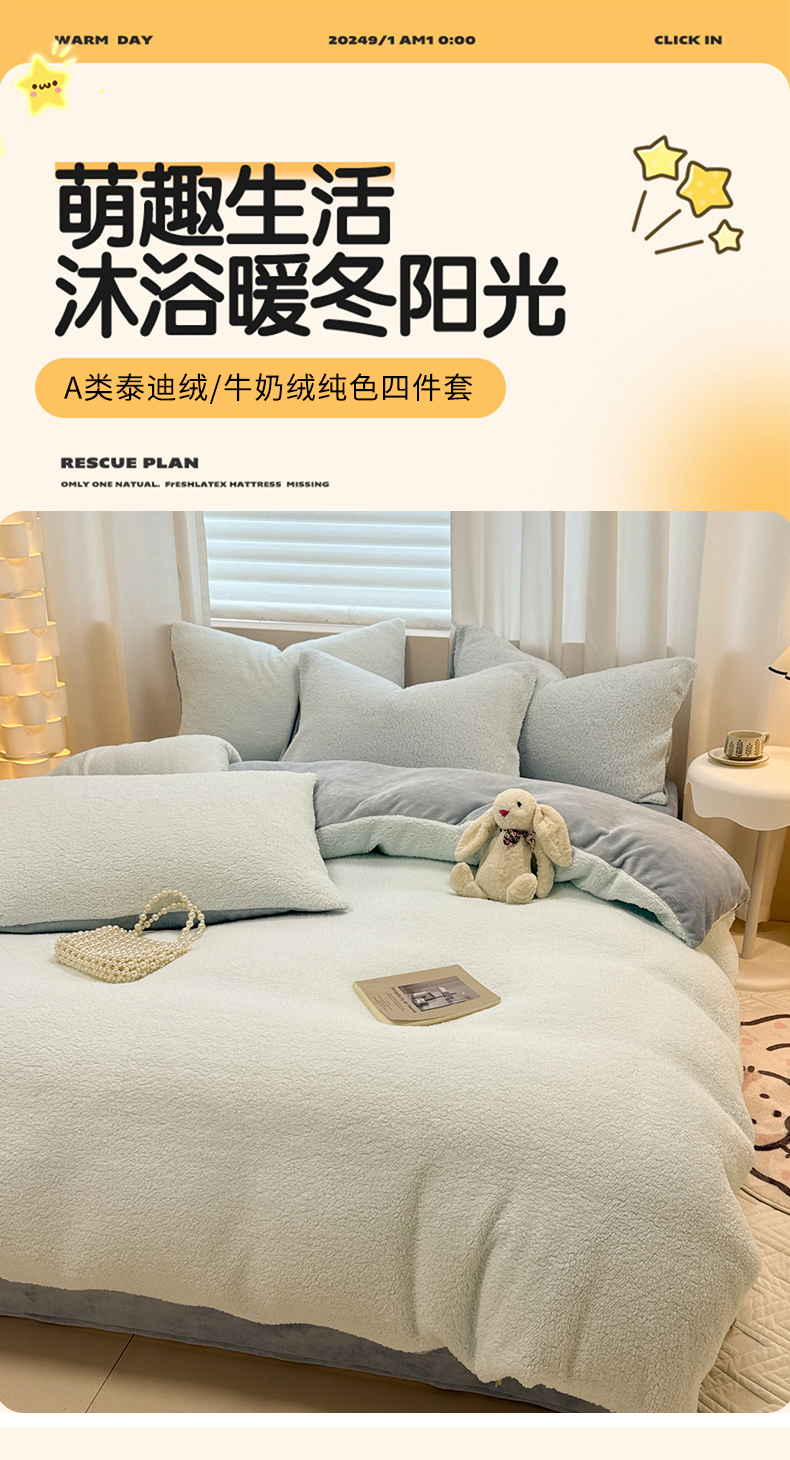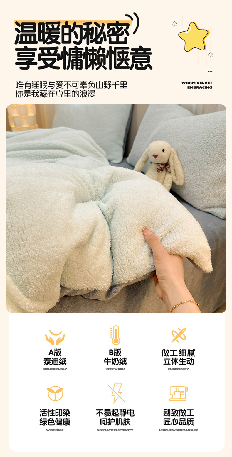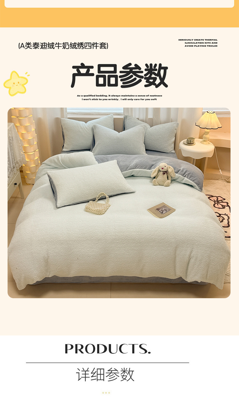 当前位置: 91家纺网 > 商品网购 > 床品套件 > 四件套 > 牛奶绒四件套 > 眠博士 2025新款A类泰迪绒牛奶绒纯色四件套 泰迪绒-安妮蓝
