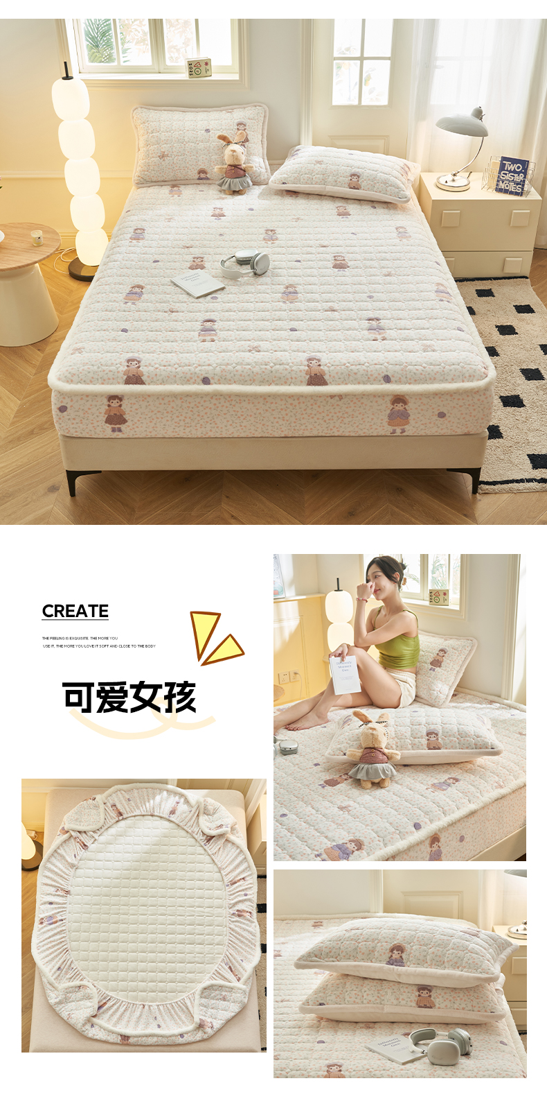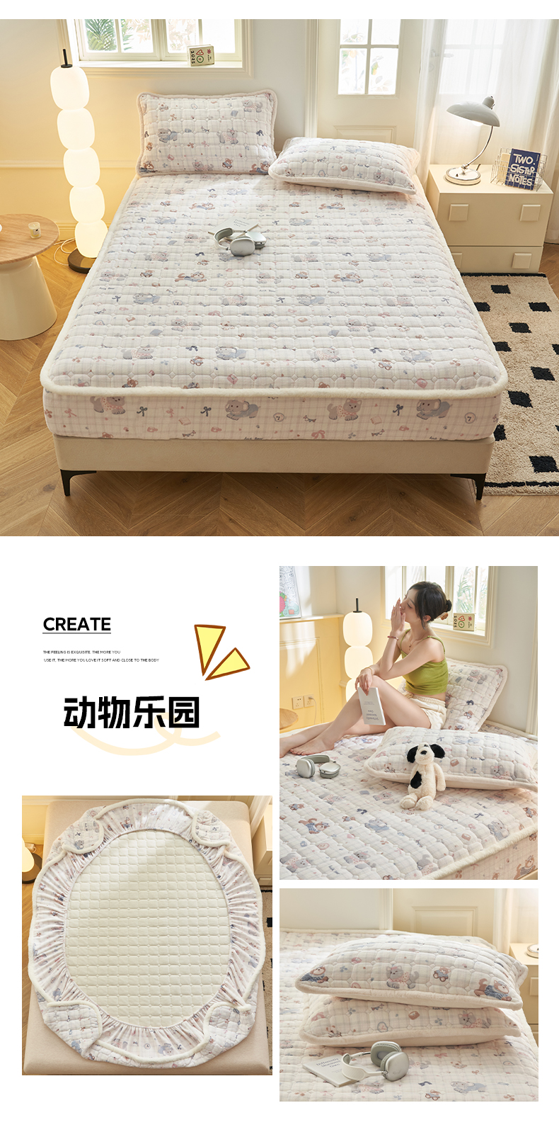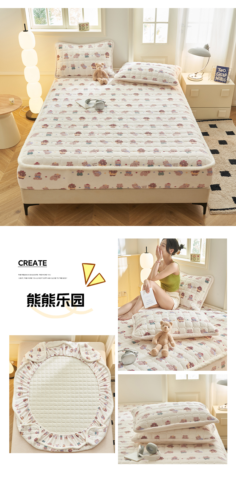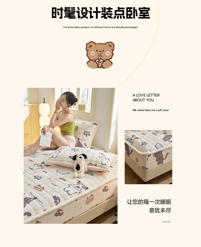 (总)晨曦家纺 2025新款加厚加绒牛奶绒卡通夹棉三层单床笠,调皮猫狗,动物乐园,可爱女孩,可爱熊猫,快乐小狗,萌萌熊仔,苹果乐园,兔女孩,兔兔花园,鲜花小兔,熊熊乐园,英伦小熊