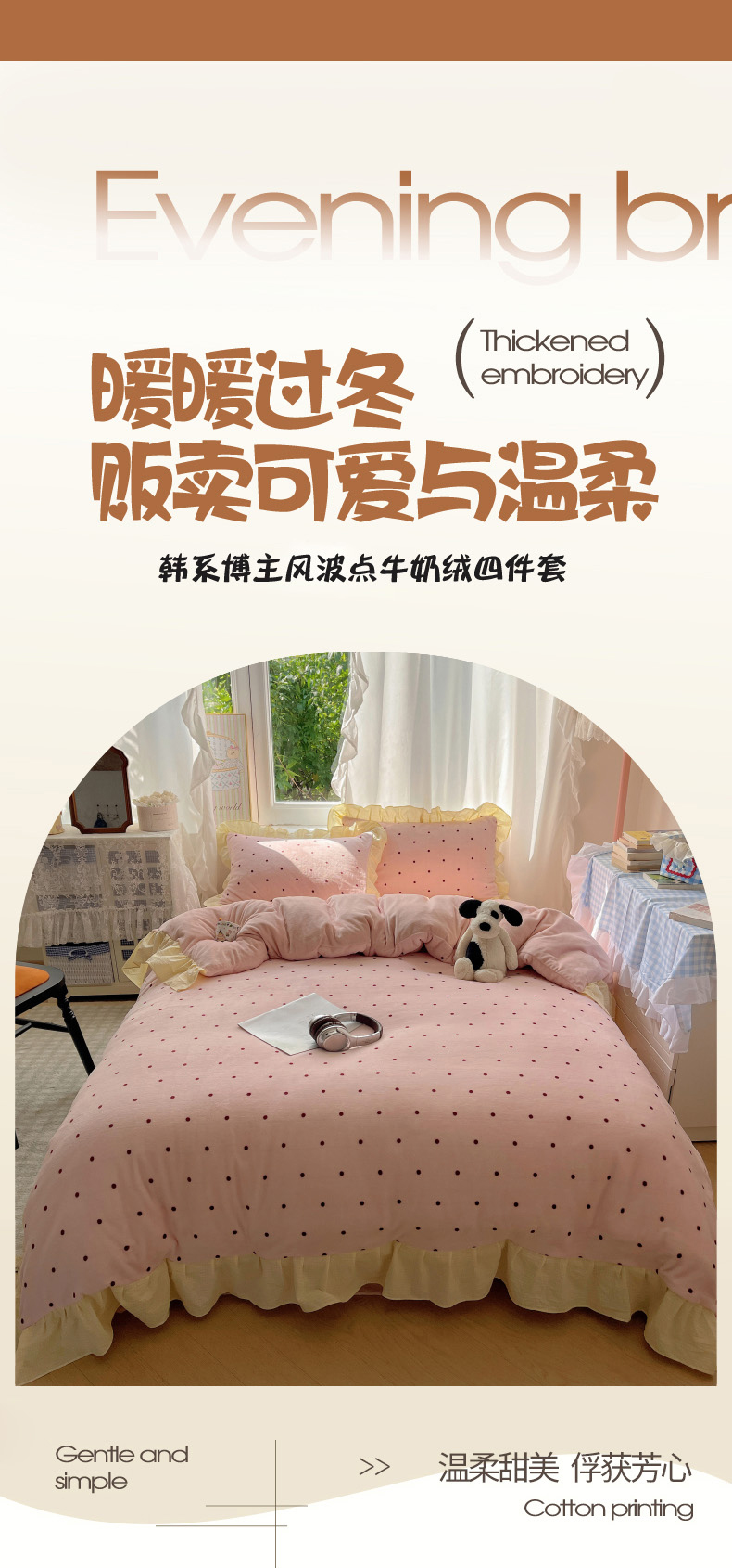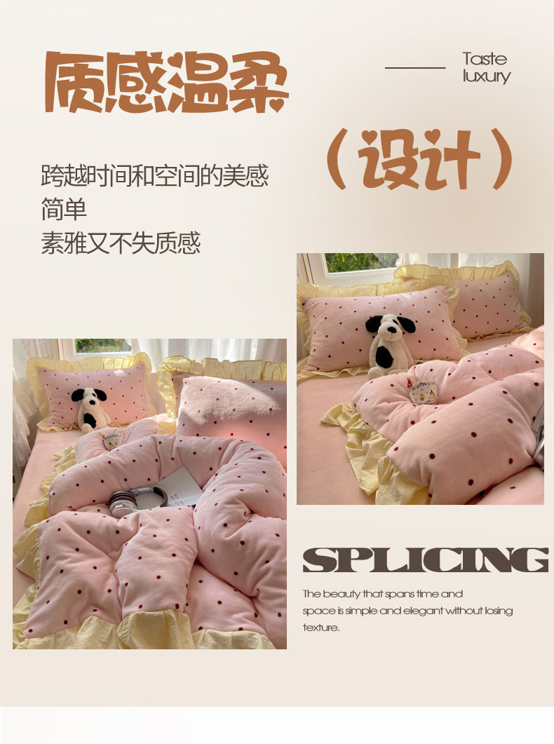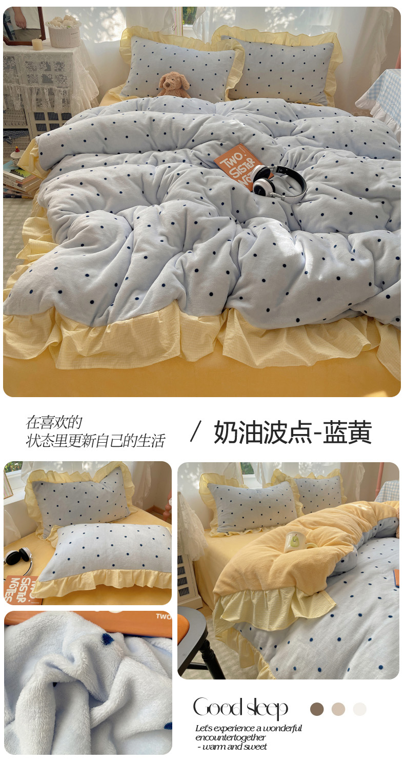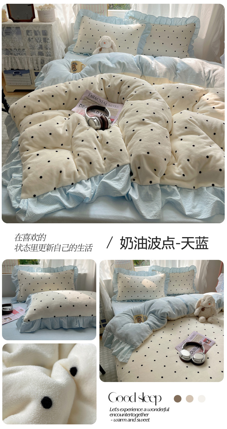 当前位置: 91家纺网 > 商品网购 > 床品套件 > 四件套 > 牛奶绒四件套 > 丽涵家纺 2025秋冬新品韩系牛奶绒波点小格子花边四件套 奶油波点-蜜粉