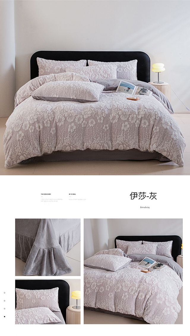 诺梵家纺 2025新款立体兔毛烂花四件套 伊莎-灰
