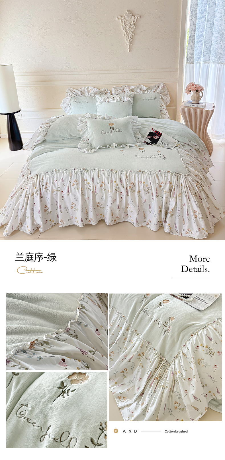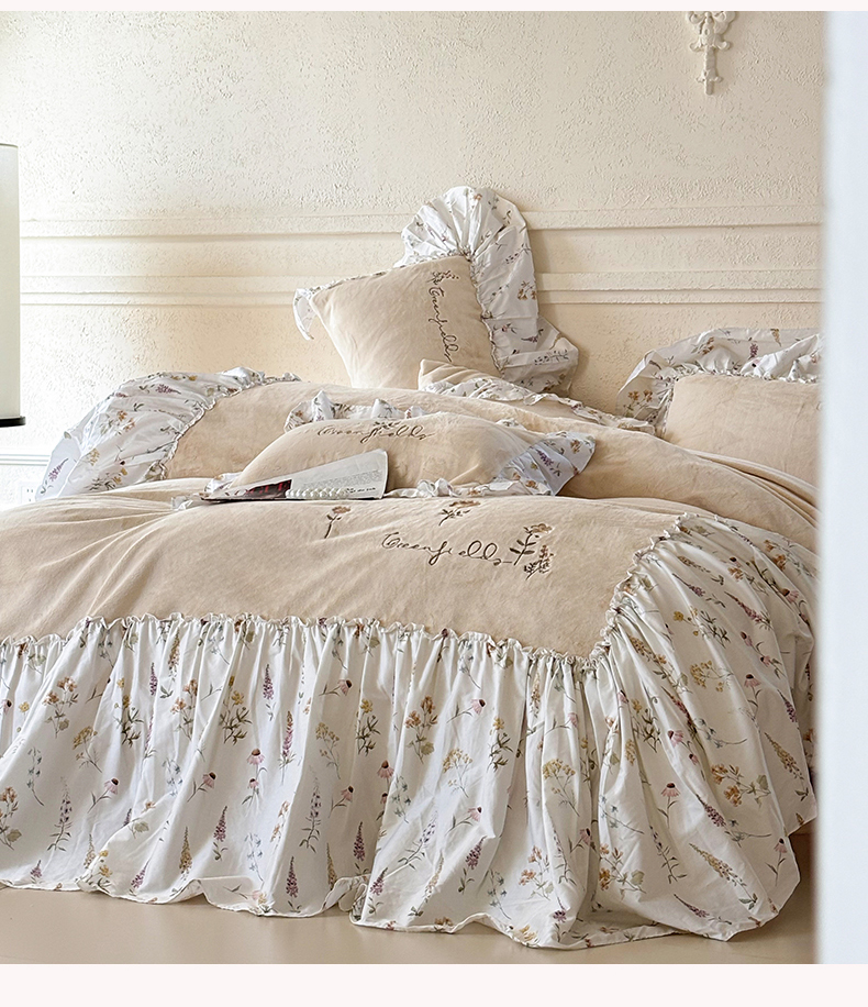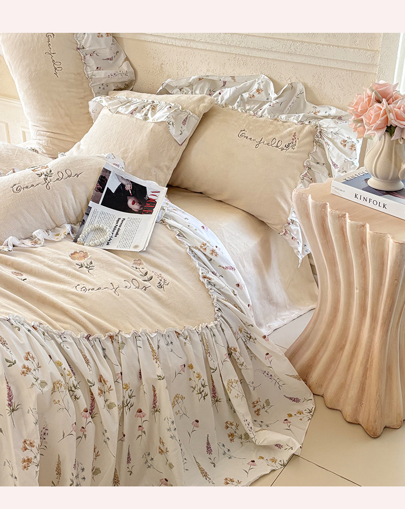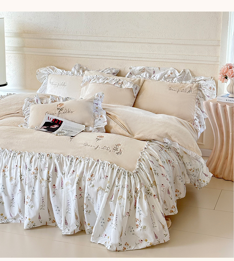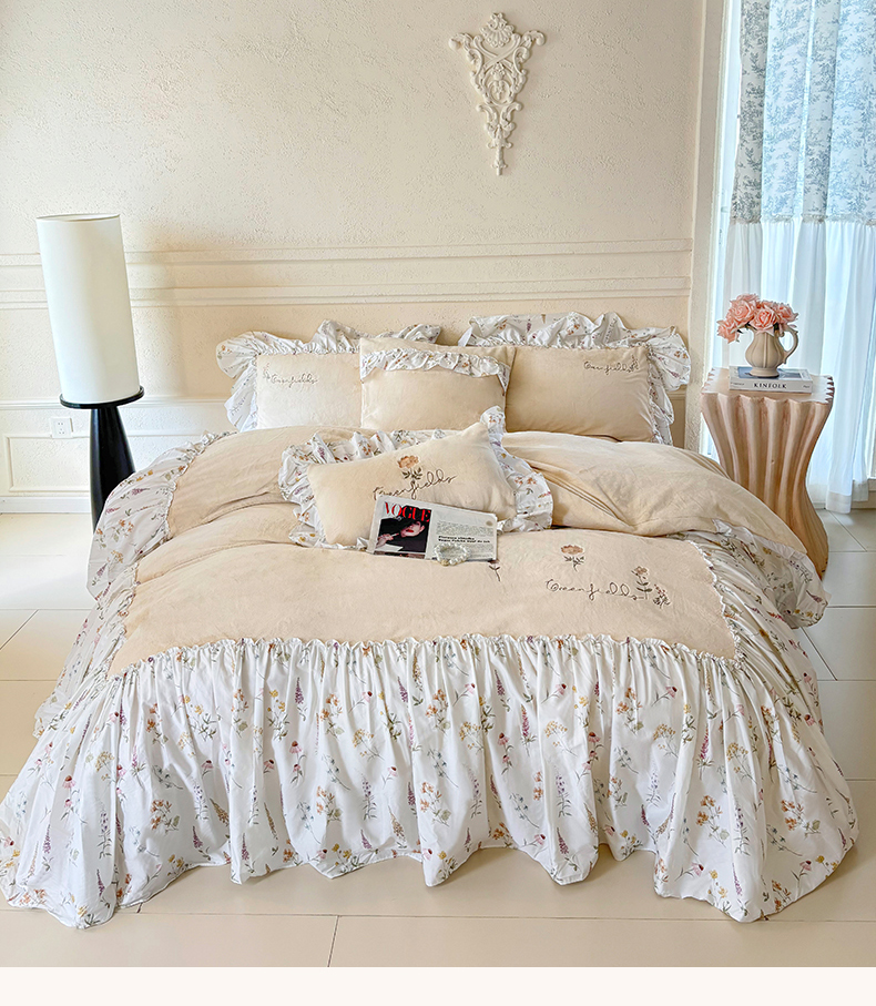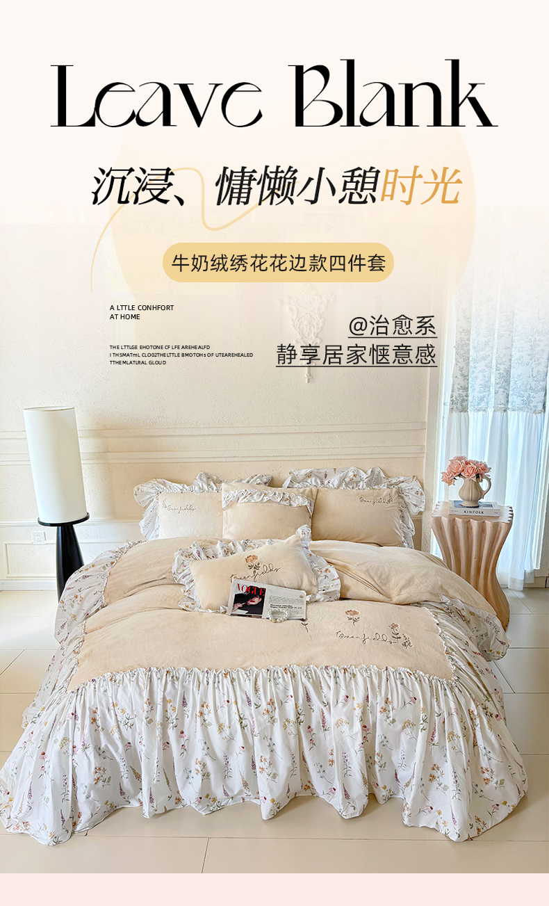 FORTWO家纺原创设计(FOR TWO家纺) 2025新款230克牛奶绒绣花法式花边款四件套 兰庭序-米白