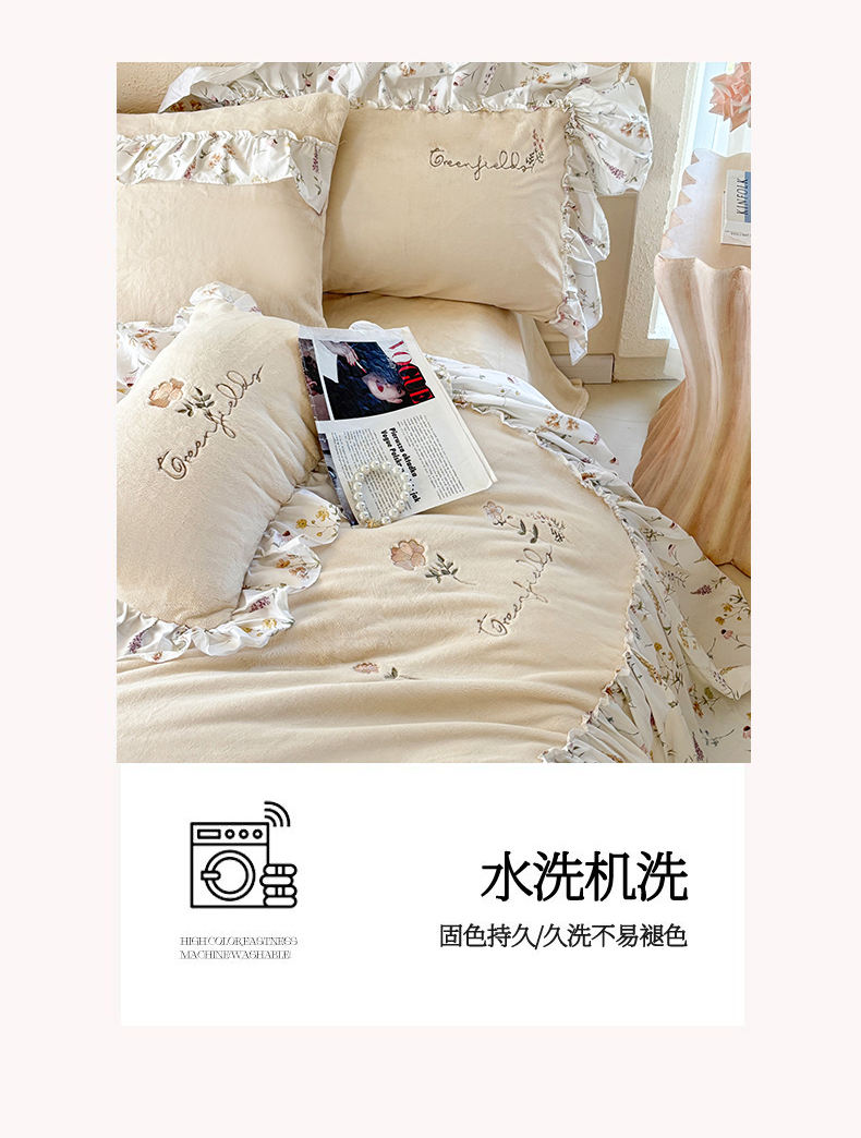 商品名称:FORTWO家纺原创设计(FOR TWO家纺) 2025新款230克牛奶绒绣花法式花边款四件套 兰庭序-米白