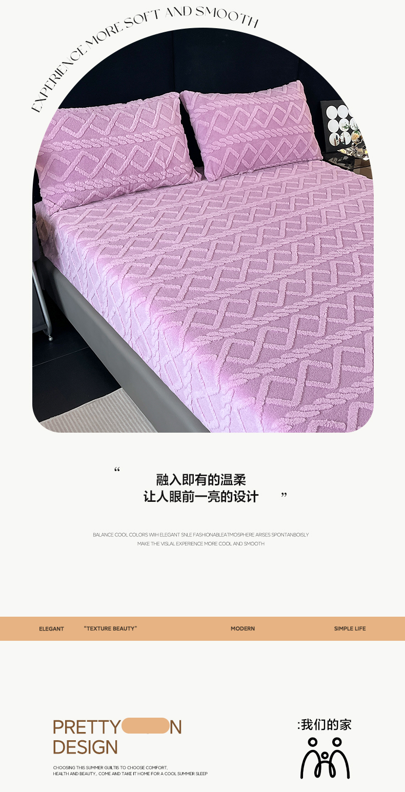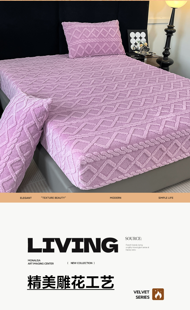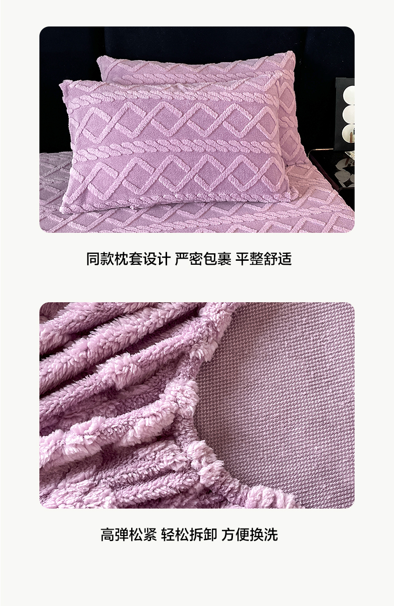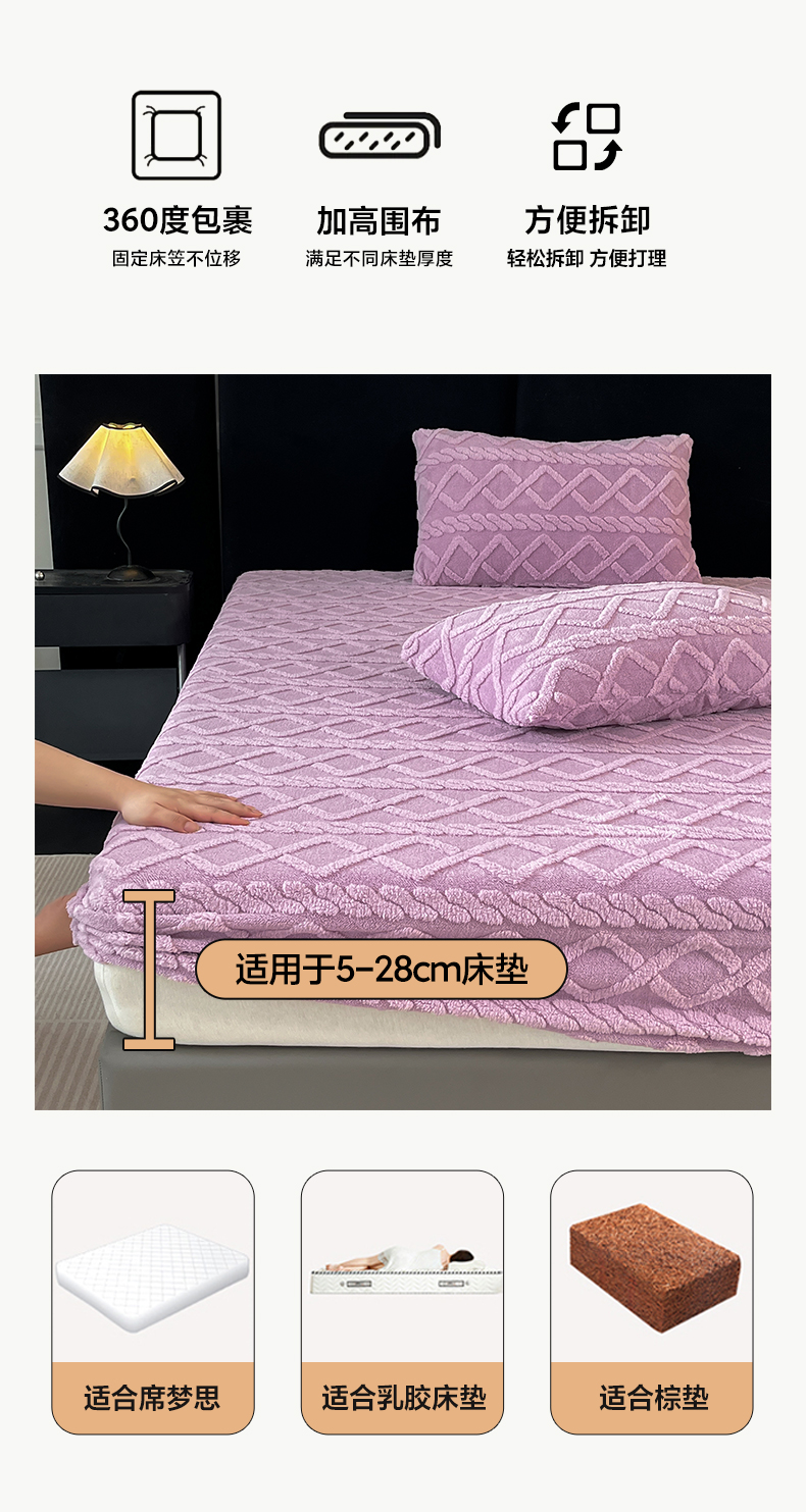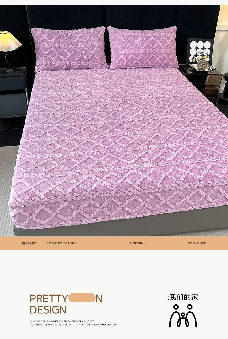 • 91家纺网 家纺一手货源 找家纺 米瑞娜 2025秋冬新款塔芙绒床笠三件套跨境单床笠外贸单品现货尺寸齐全 马尾型-浅紫