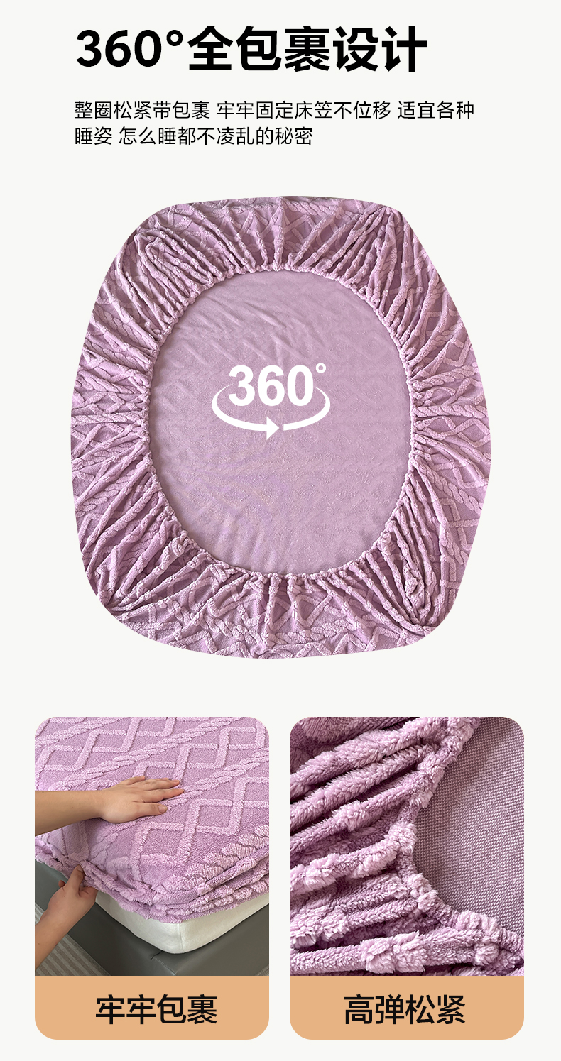 米瑞娜 2025秋冬新款塔芙绒床笠三件套跨境单床笠外贸单品现货尺寸齐全 马尾型-浅紫