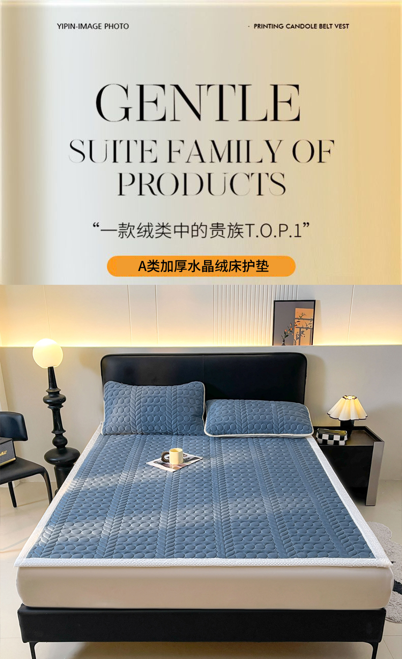 (总)希廷顿 2025新款加厚水晶绒床护垫,宾利蓝,薄荷绿,藏青色,粉玉色,高级灰,墨绿色,奶咖色,绅士灰,天空蓝,香芋紫