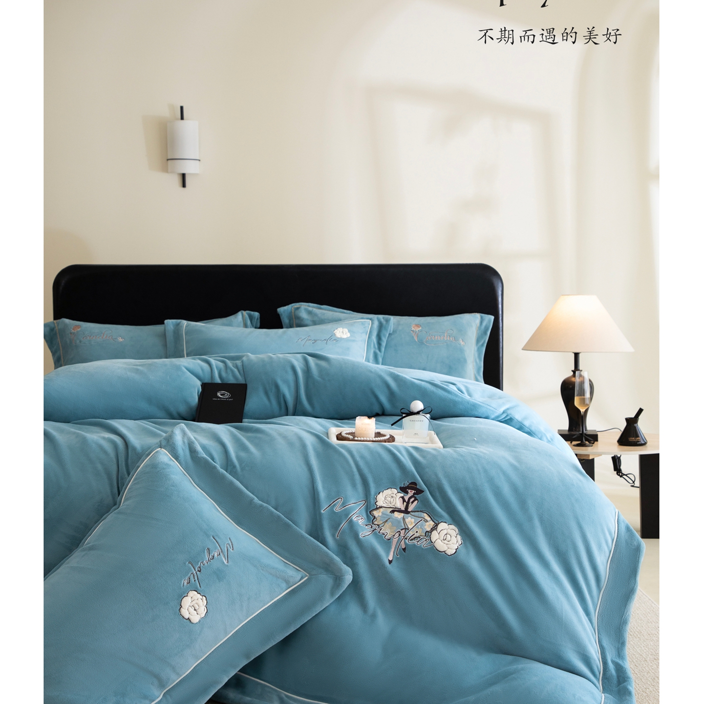 商品名称:芯丝路枕业 2025新款丽莎蚕丝绒四件套 丽莎-天空蓝