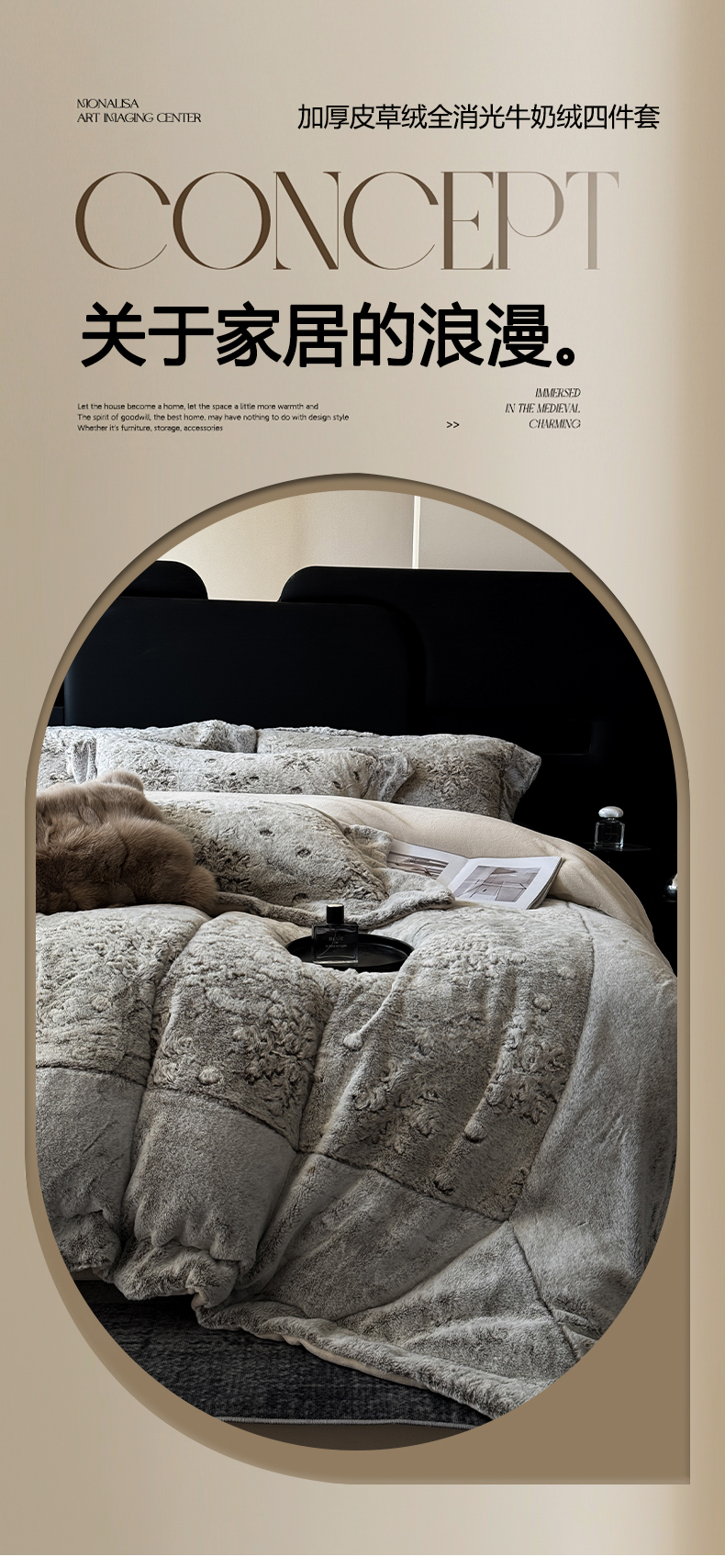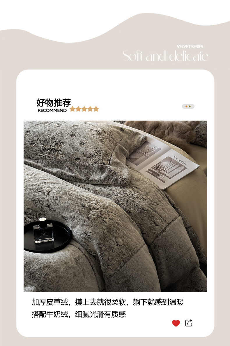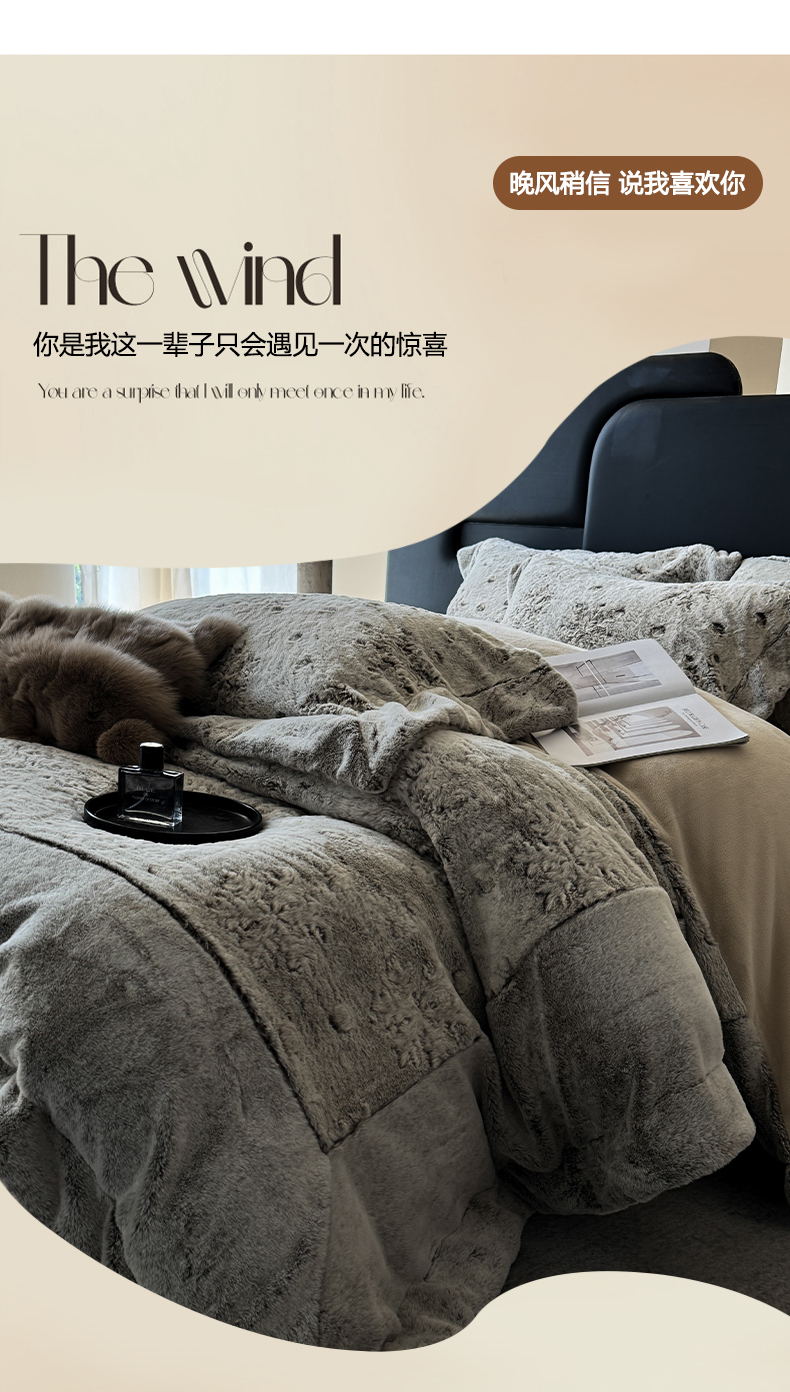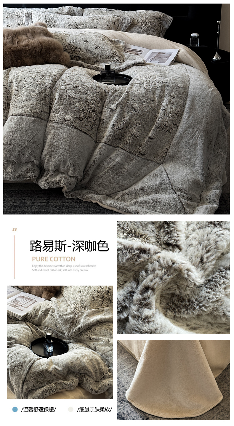 当前位置: 91家纺网 > 商品网购 > 床品套件 > 四件套 > 其它四件套 > 丞音家纺 2025秋冬新款A类轻奢皮草绒加厚水貂绒保暖牛奶绒床上用品珊瑚绒四件套床单被套 路易斯-深咖色