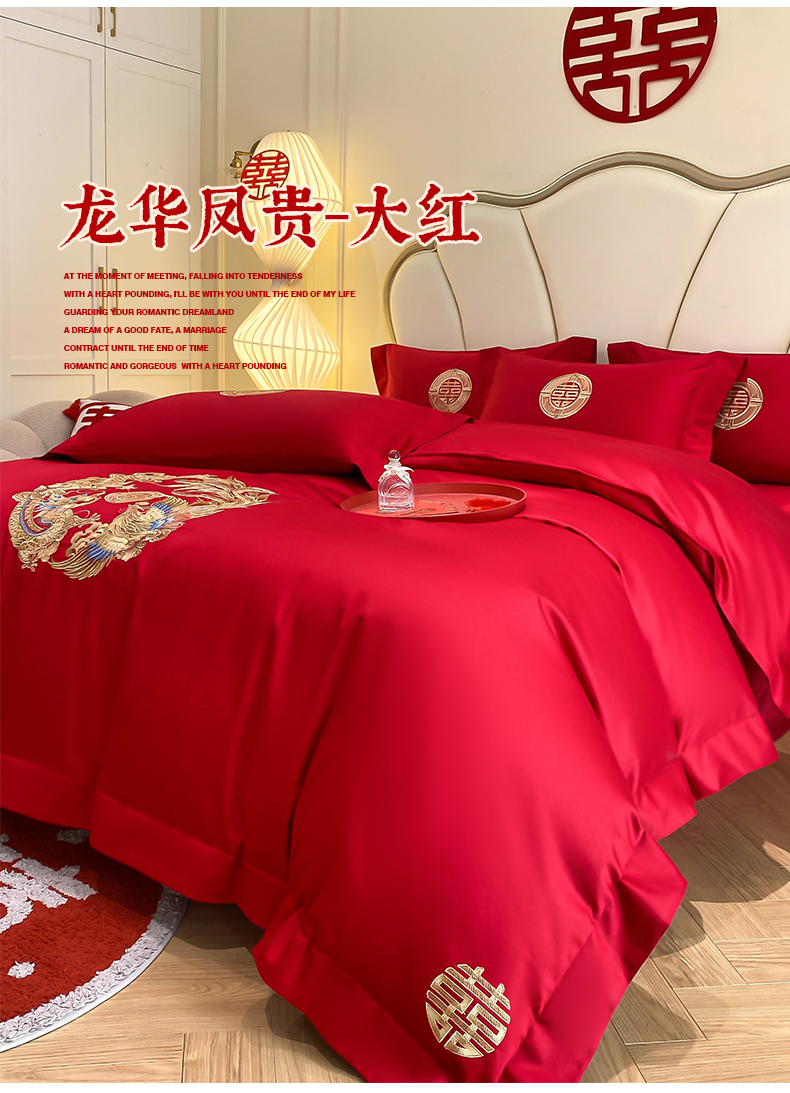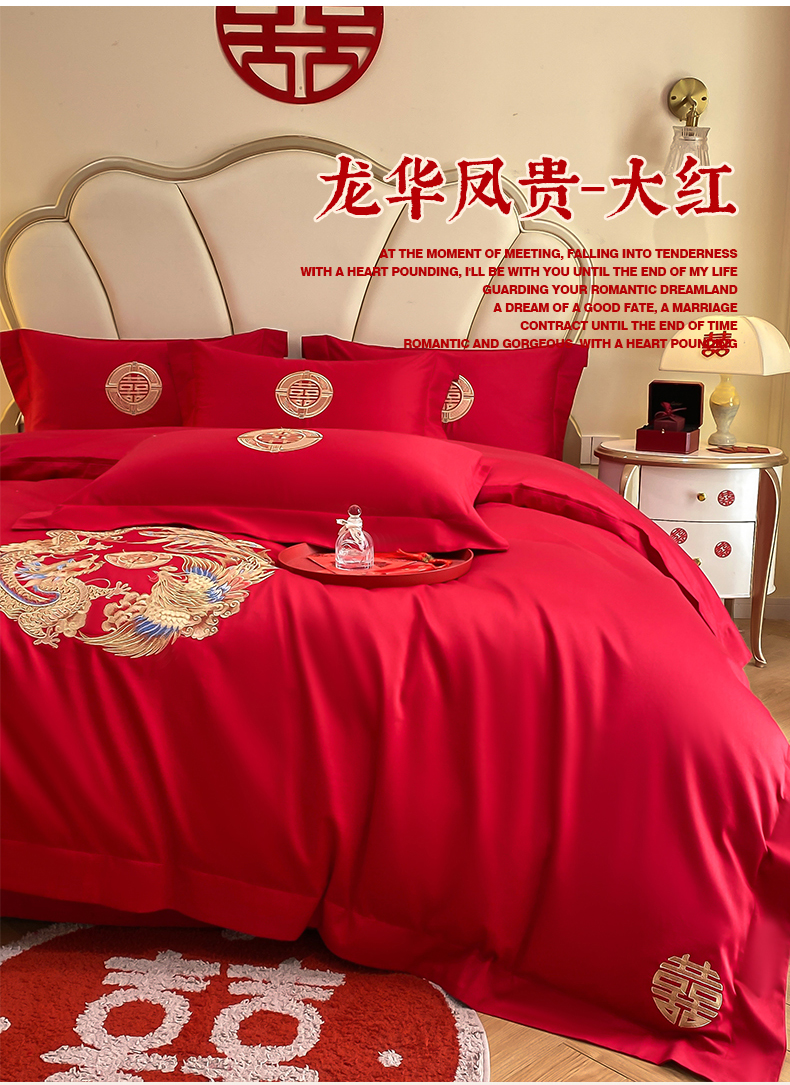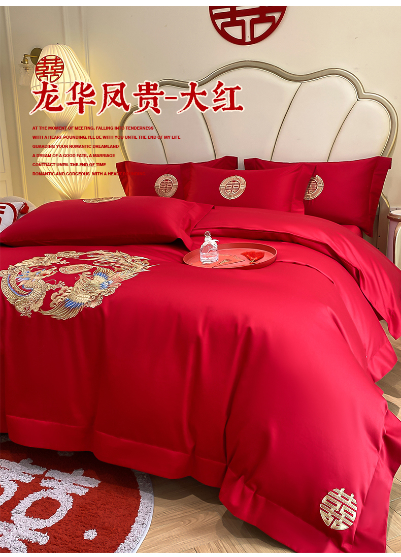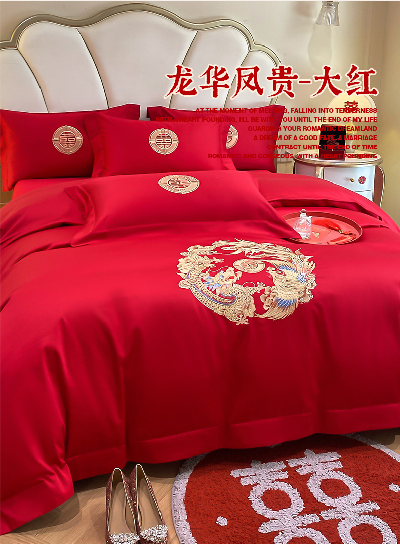 当前位置: 91家纺网 > 商品网购 > 床品套件 > 四件套 > 婚庆四件套 > 置顶家纺 2025新款亲肤磨毛刺绣婚庆四件套系列-棚拍 龙华凤贵-大红