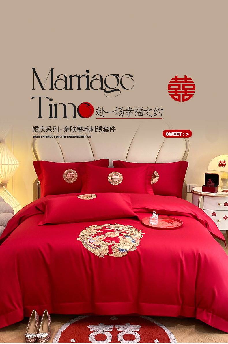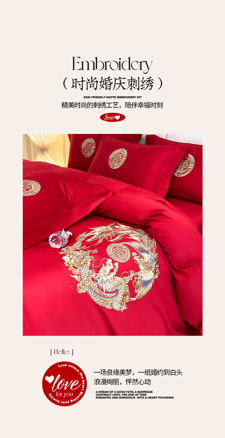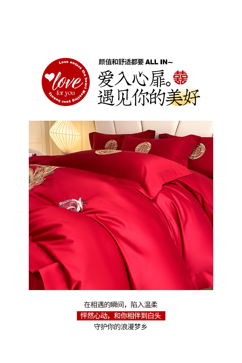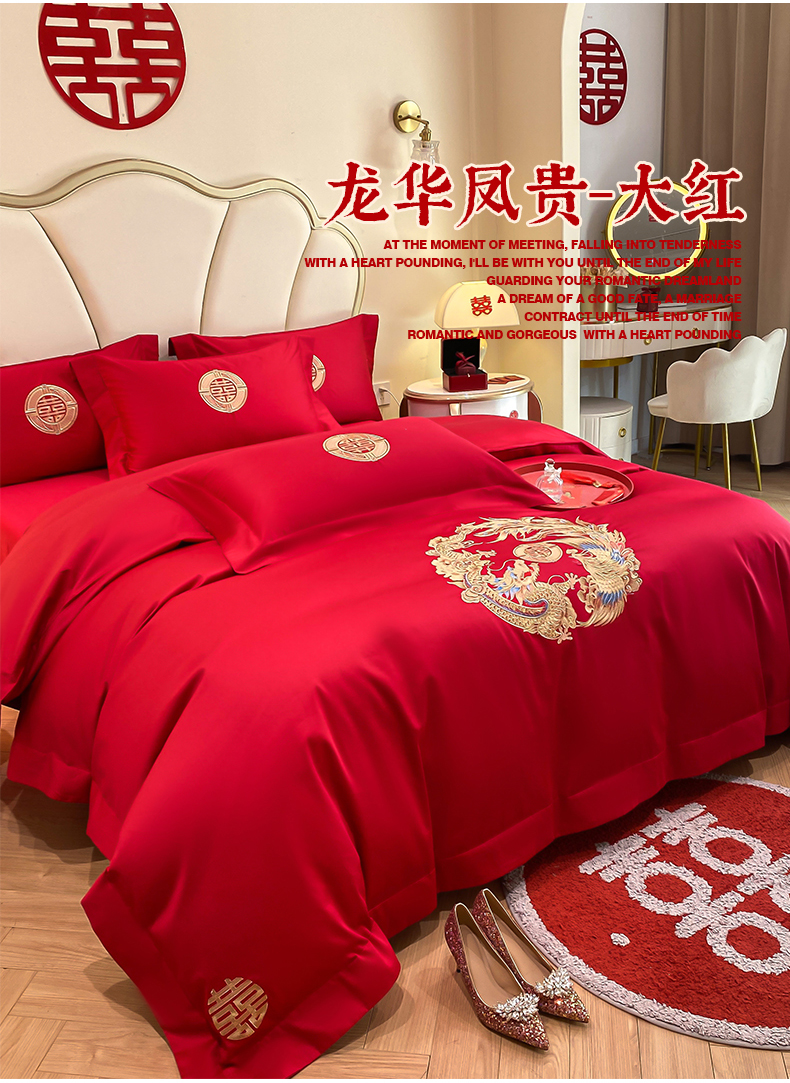 当前位置: 91家纺网 > 商品网购 > 床品套件 > 四件套 > 婚庆四件套 > 置顶家纺 2025新款亲肤磨毛刺绣婚庆四件套系列-棚拍 龙华凤贵-大红