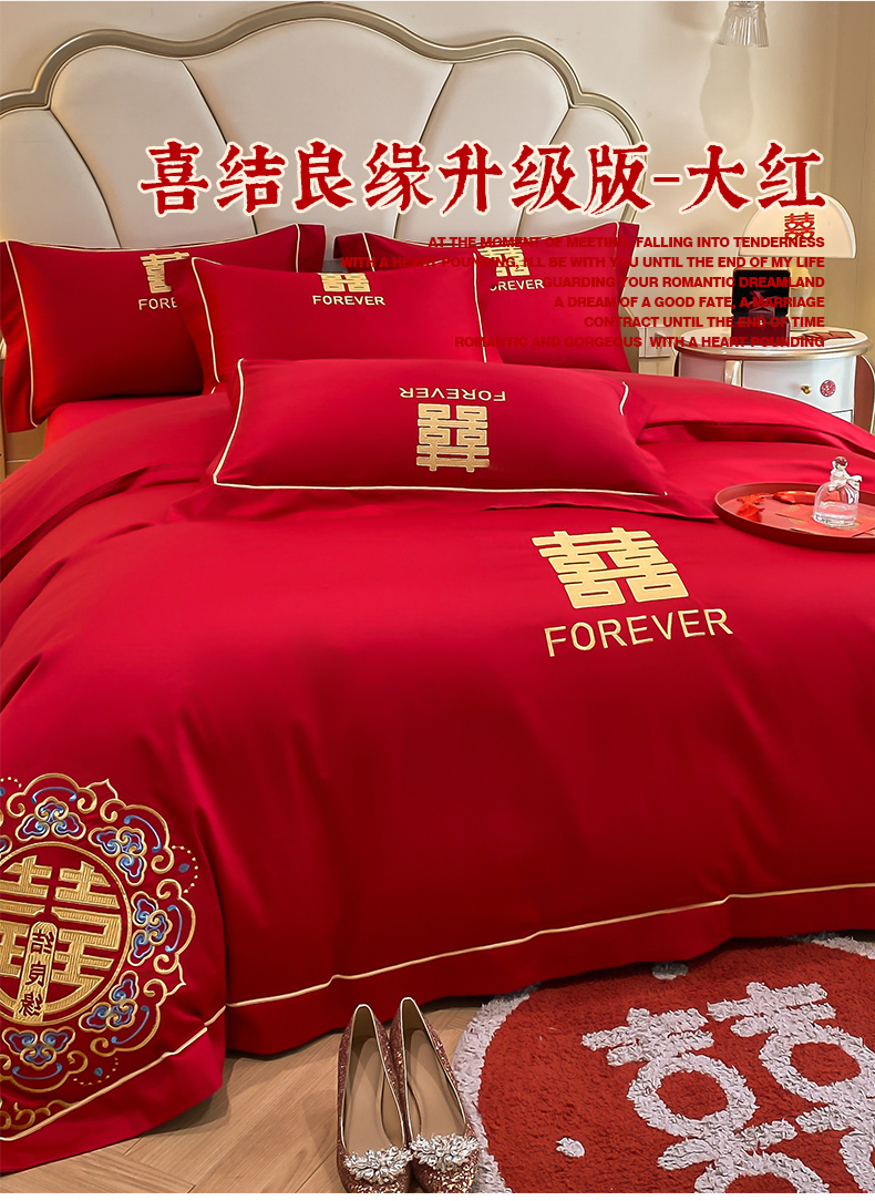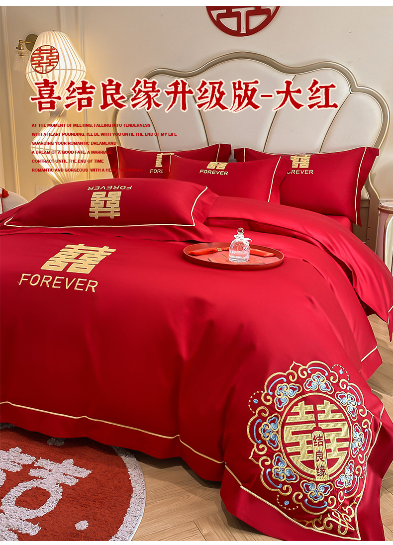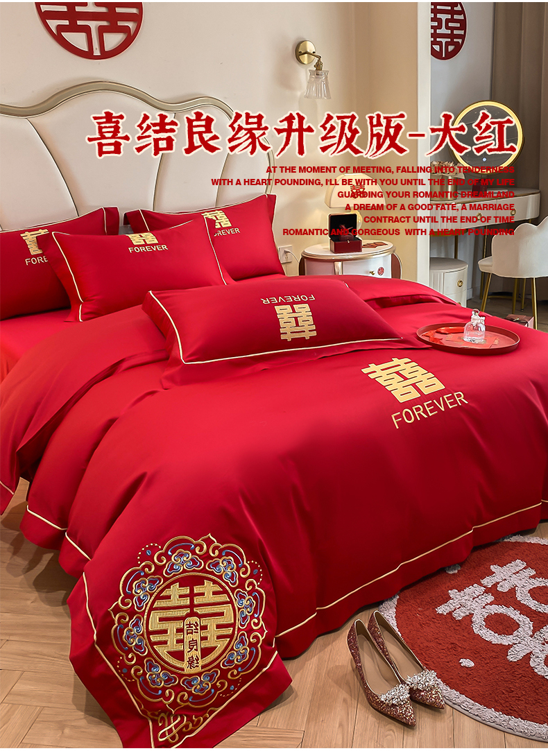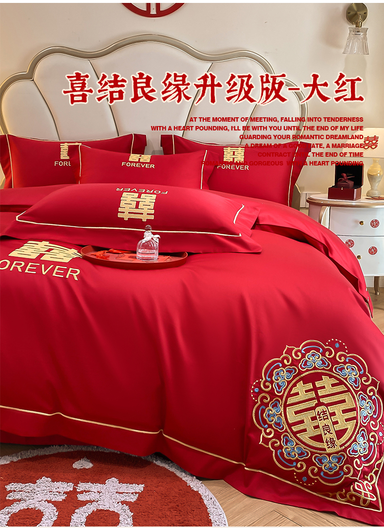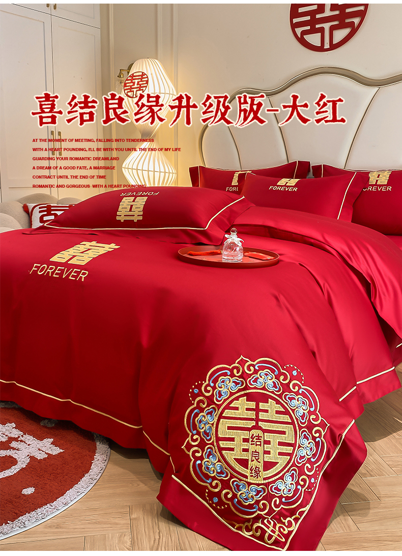 当前位置: 91家纺网 > 商品网购 > 床品套件 > 四件套 > 婚庆四件套 > 置顶家纺 2025新款亲肤磨毛刺绣婚庆四件套系列-棚拍 喜结良缘升级版-大红