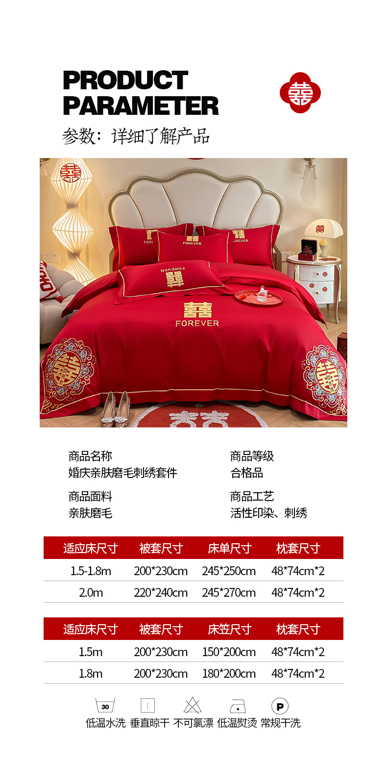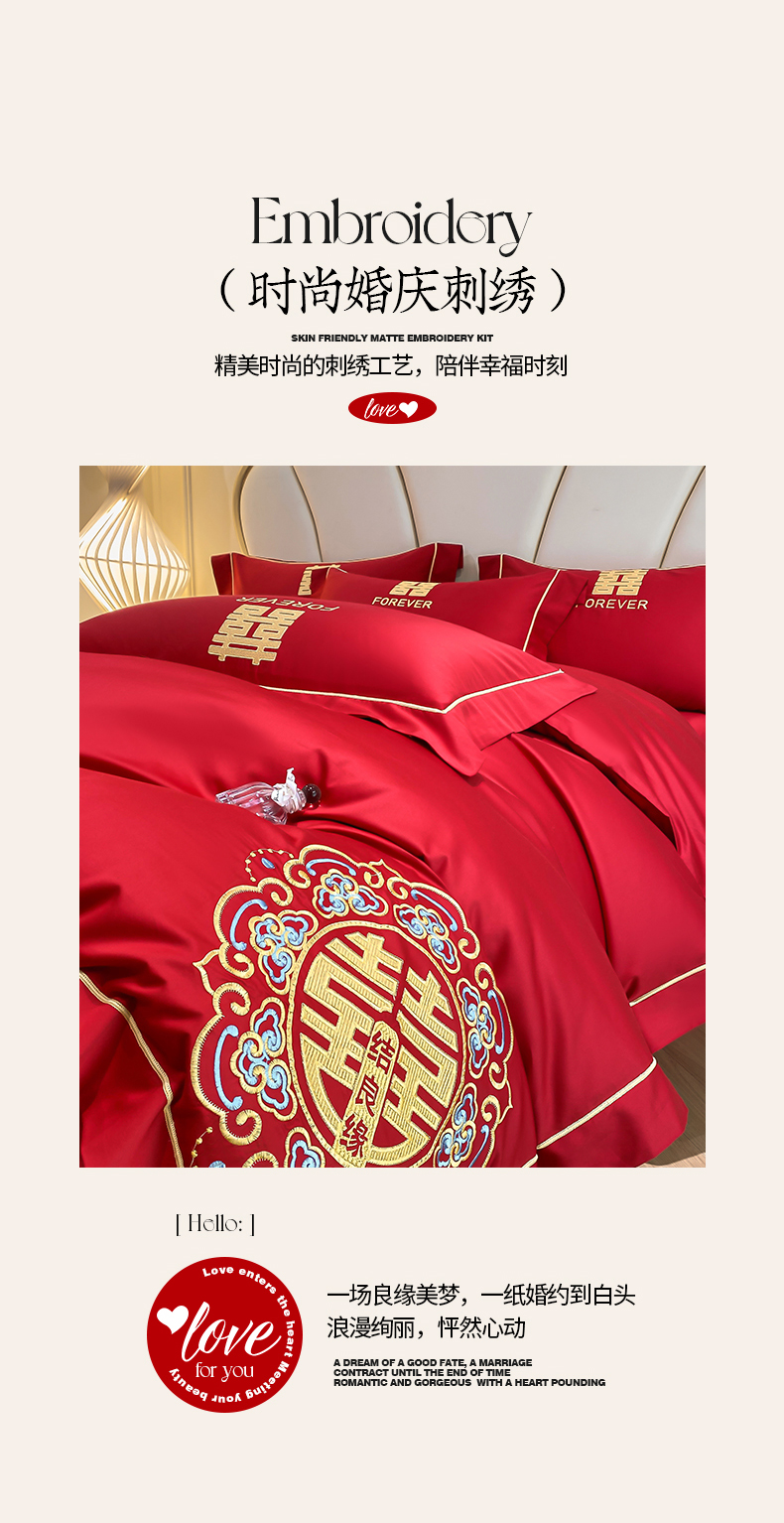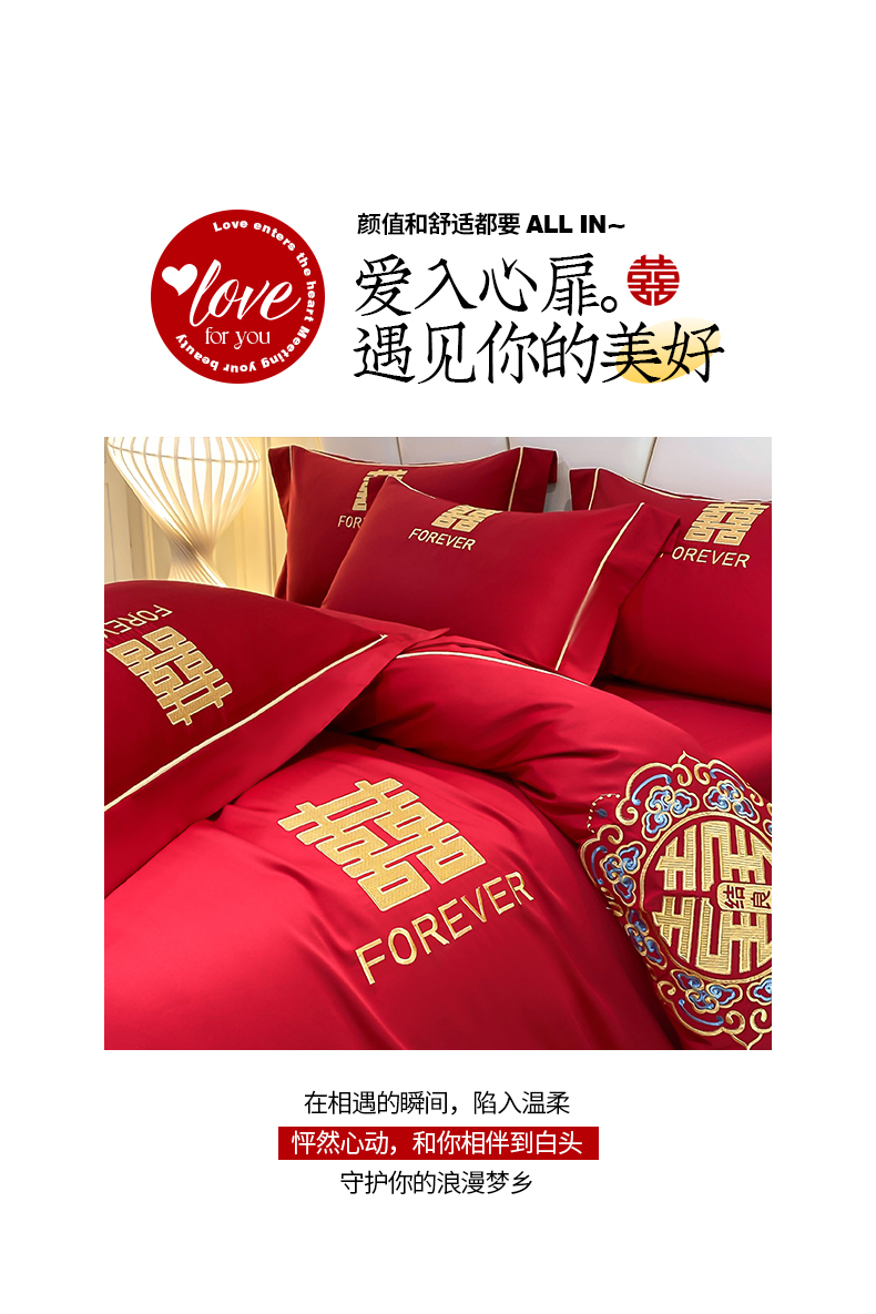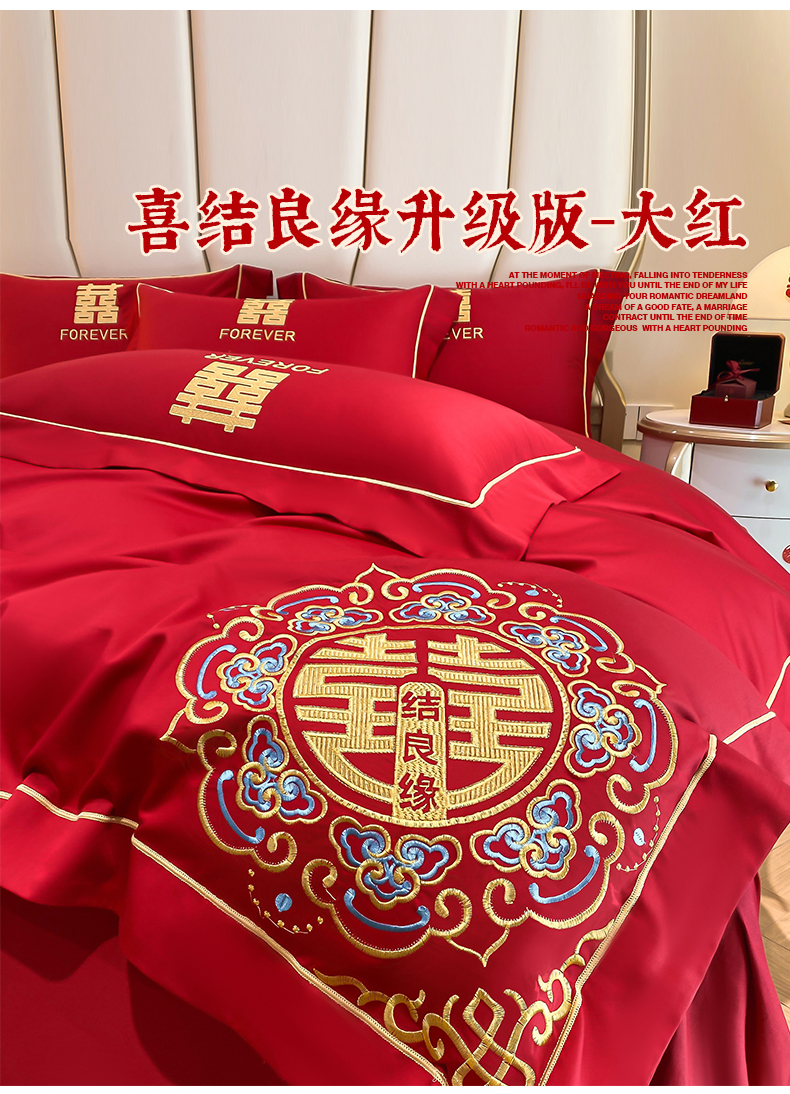 当前位置: 91家纺网 > 商品网购 > 床品套件 > 四件套 > 婚庆四件套 > 置顶家纺 2025新款亲肤磨毛刺绣婚庆四件套系列-棚拍 喜结良缘升级版-大红
