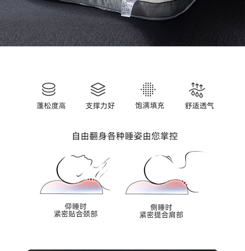 总浩宇家纺新款60支长绒棉枕芯羽丝绒款成人助眠枕高端枕头,棉朵,羽毛