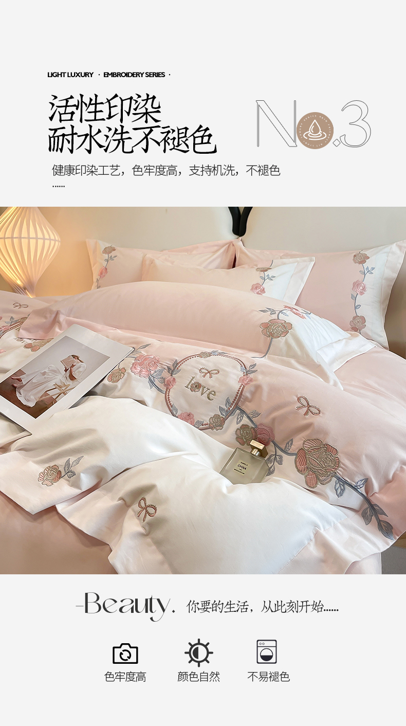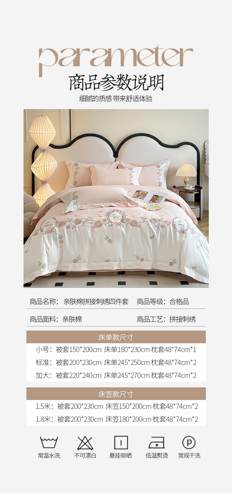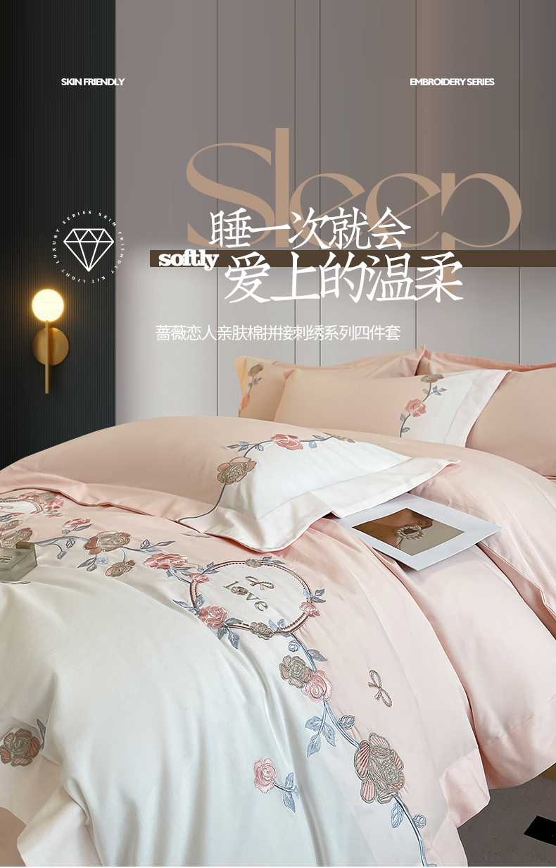 当前位置: 91家纺网 > 商品网购 > 床品套件 > 四件套 > 其它四件套 > 置顶家纺 2025春夏新款亲肤刺绣四件套-蔷薇恋人 蔷薇恋人-粉玉