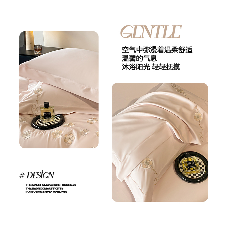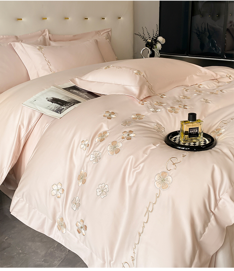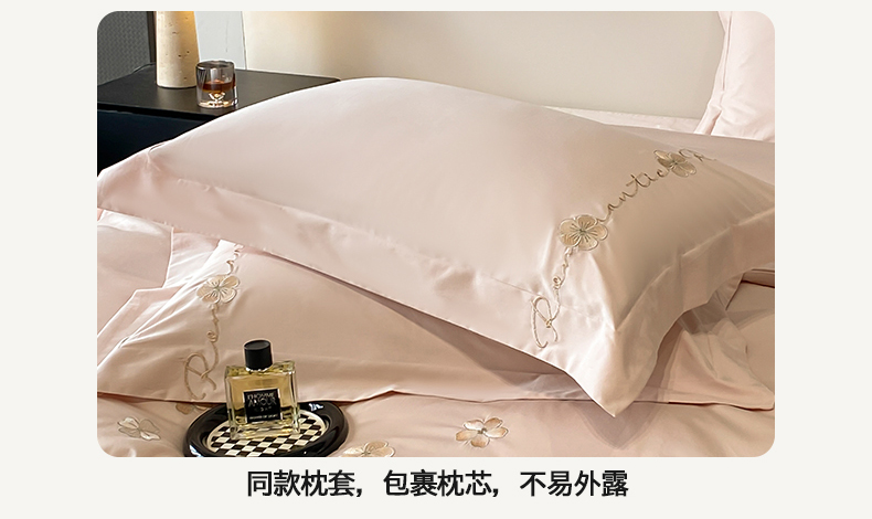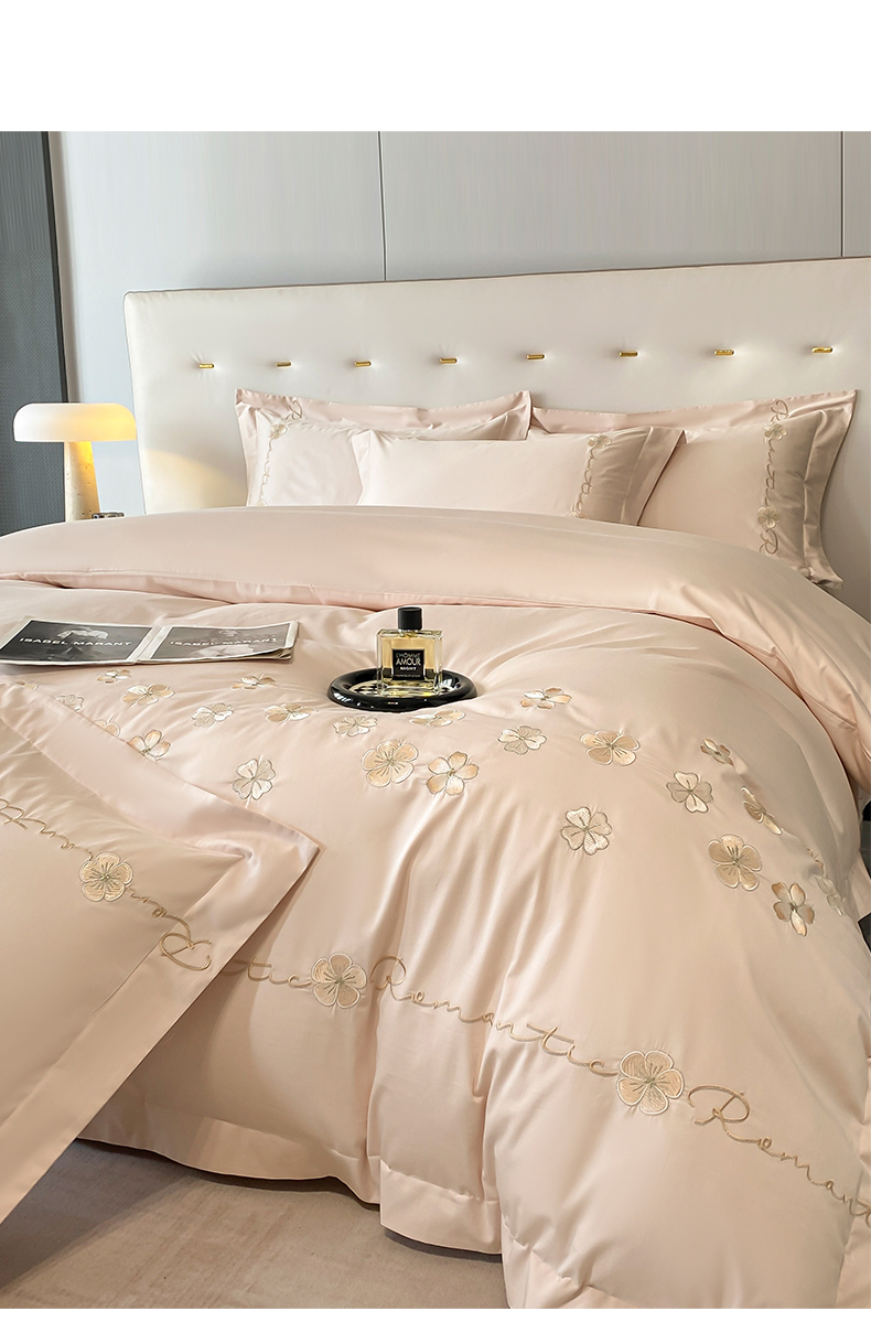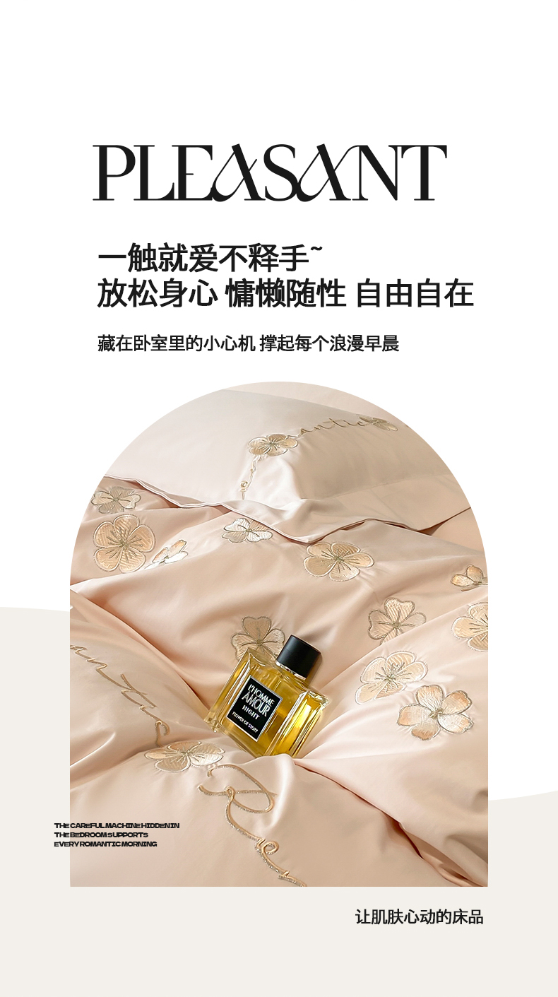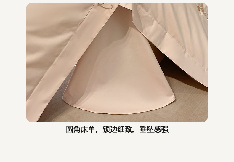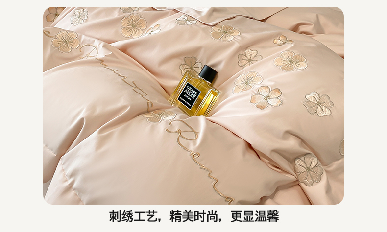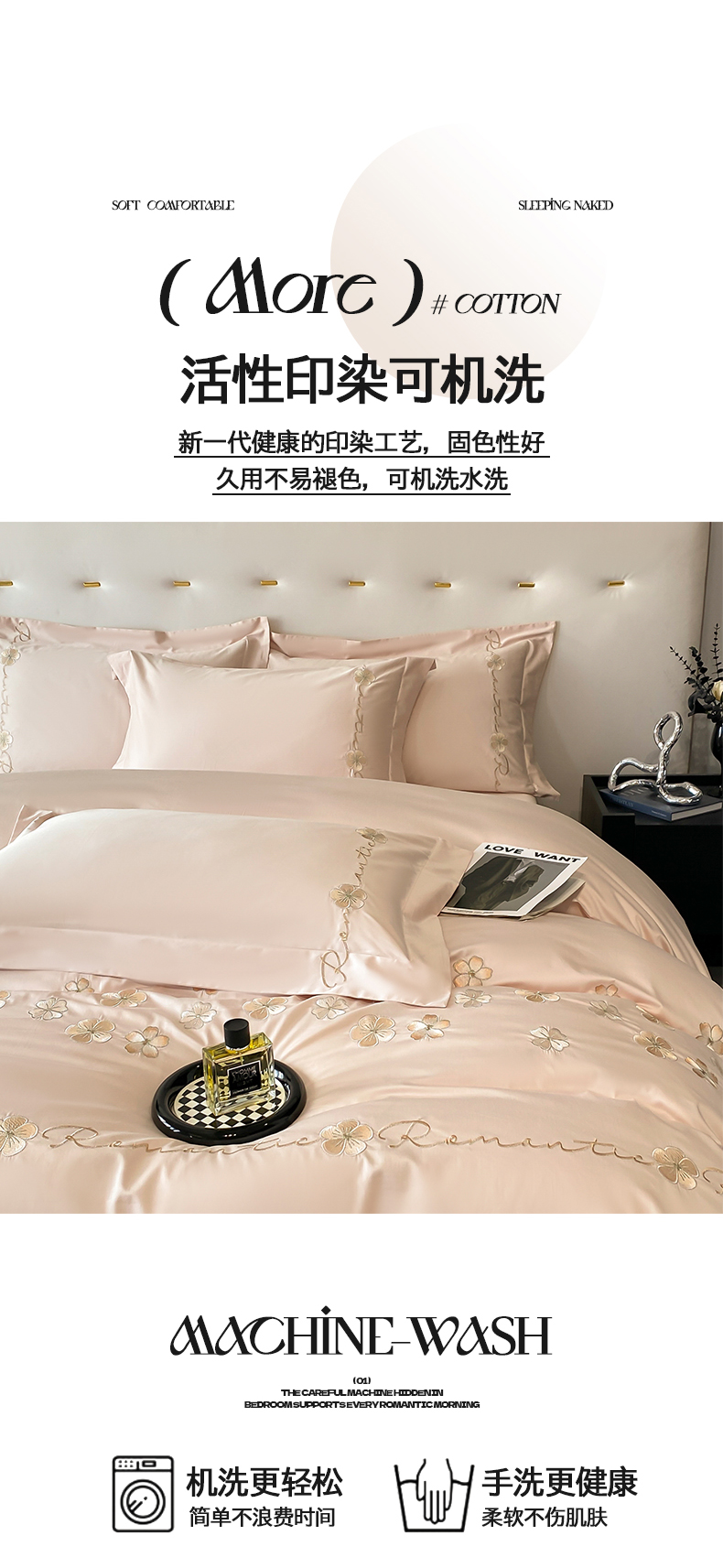 置顶家纺 2025新款13372全棉刺绣四件套-桃花朵朵开 桃花朵朵开-奶玉色