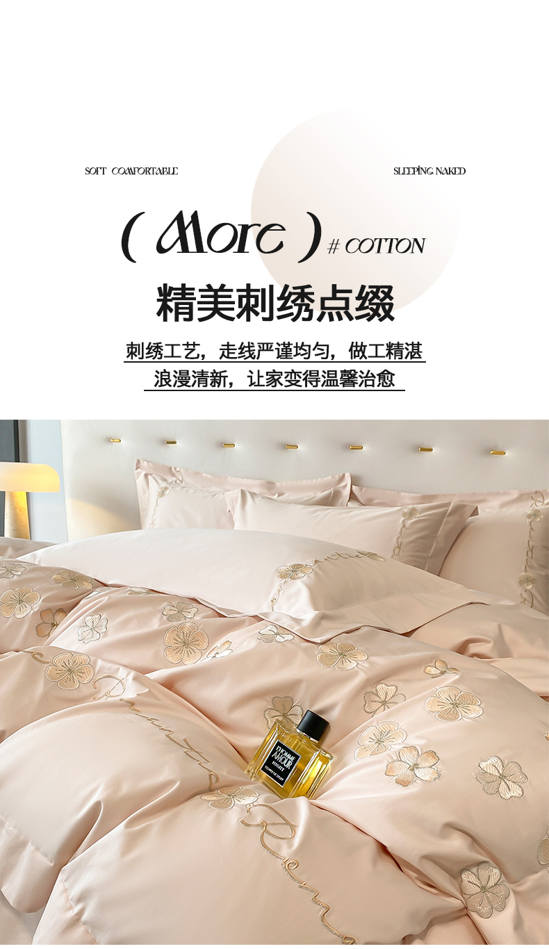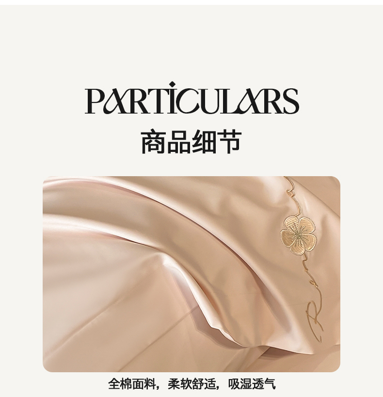 商品名称:置顶家纺 2025新款13372全棉刺绣四件套-桃花朵朵开 桃花朵朵开-奶玉色