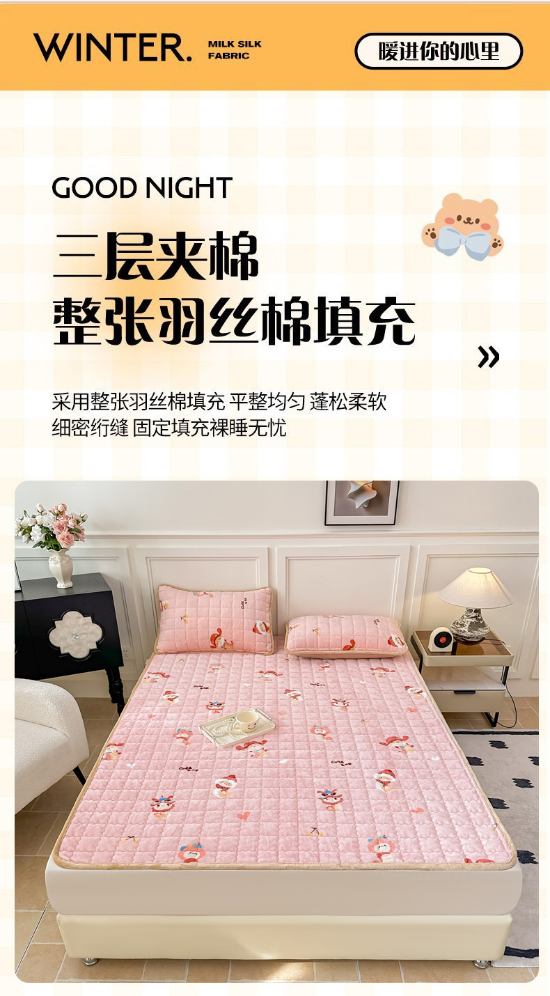 (总)棉森家纺 2025新款亲肤舒适高克重牛奶绒夹棉床褥床垫垫子,爱相随,爱心蓝色,爱心奶白,动物园,豆绿,灰色,玫瑰兔,西瓜红