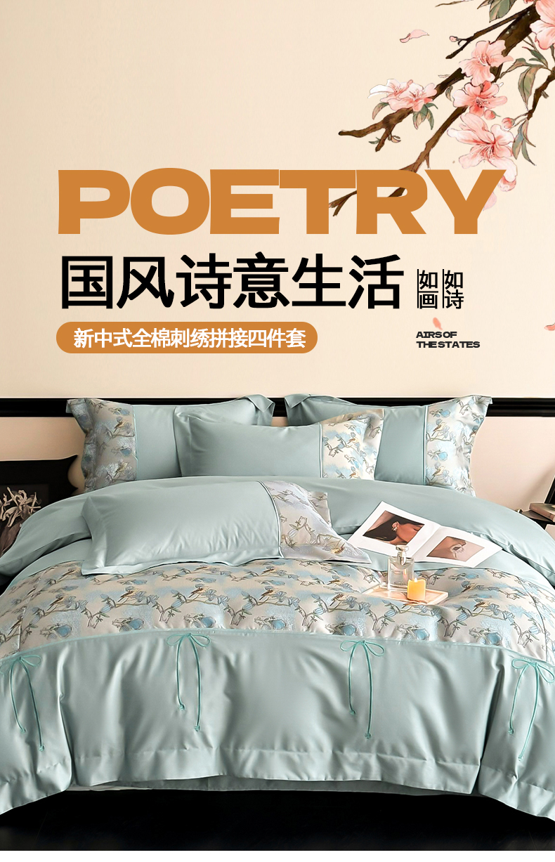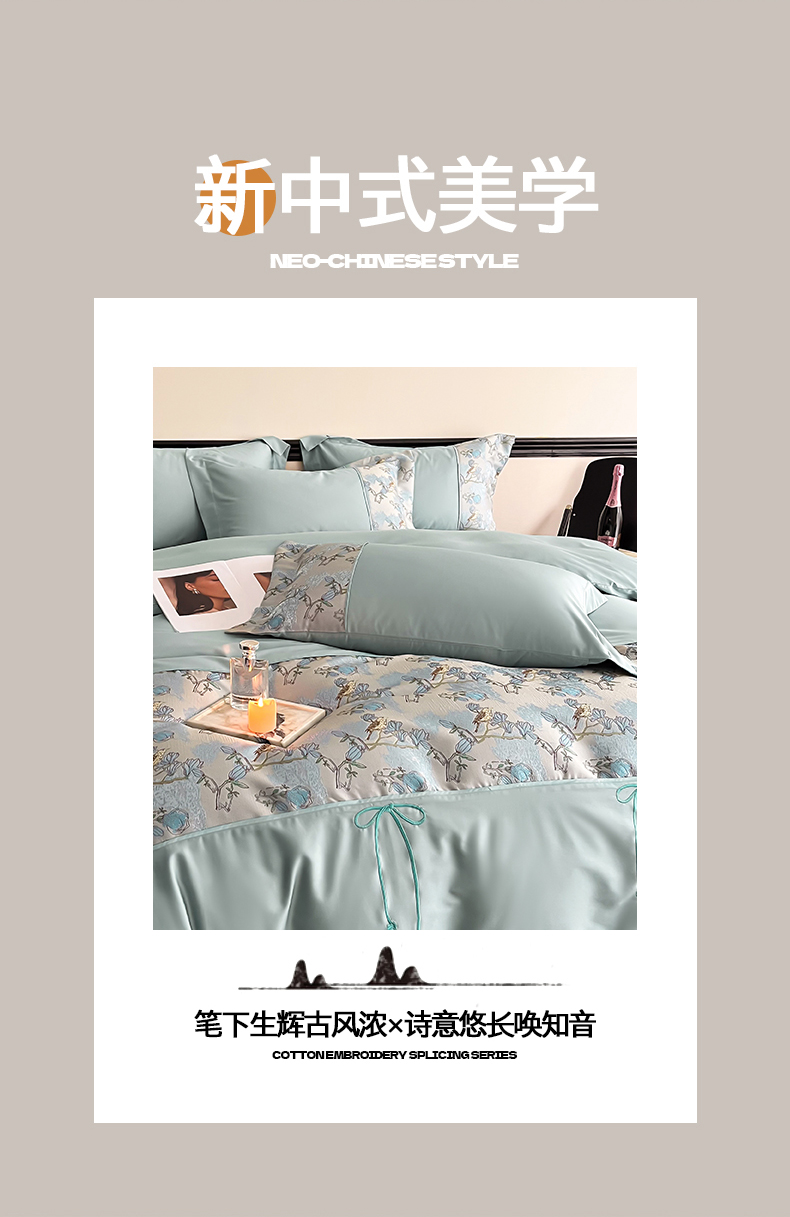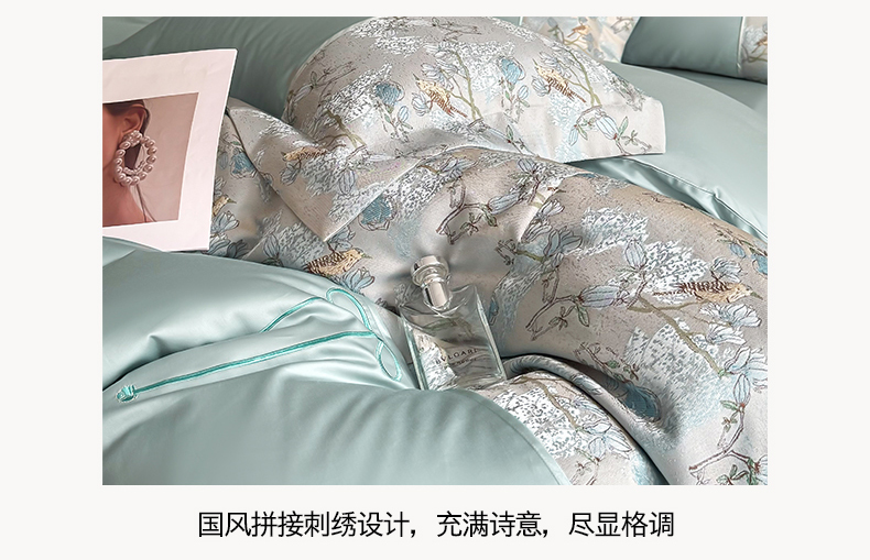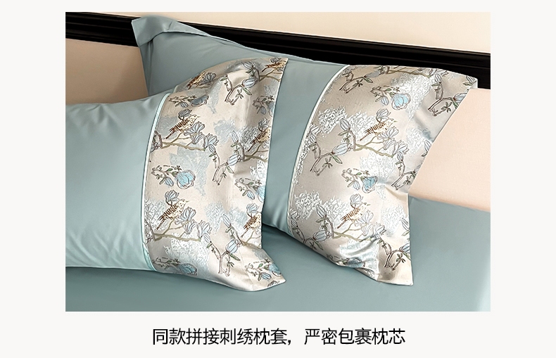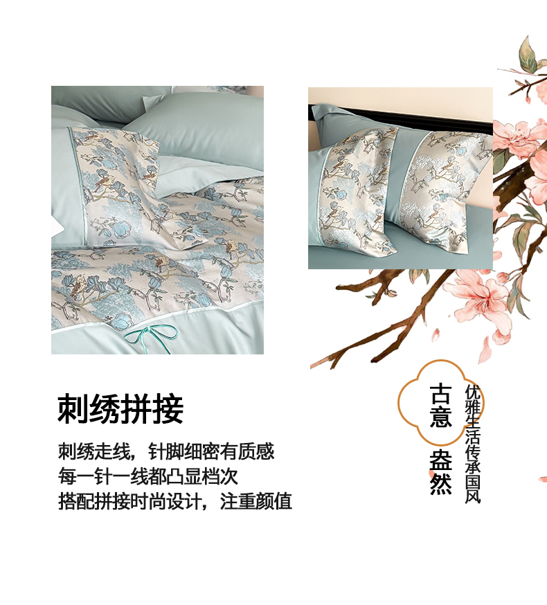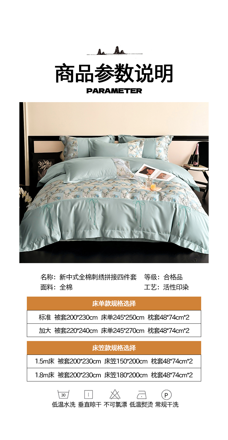 当前位置: 91家纺网 > 商品网购 > 床品套件 > 四件套 > 全棉普通四件套 > 置顶家纺 2025新款国色天香新中式全棉刺绣拼接四件套 幸禾-月影蓝