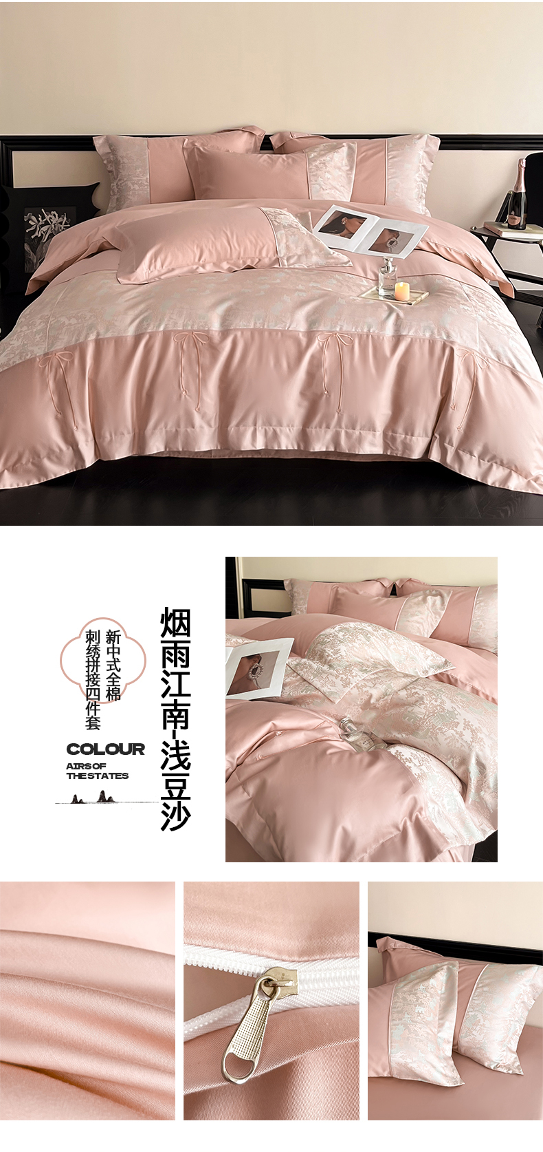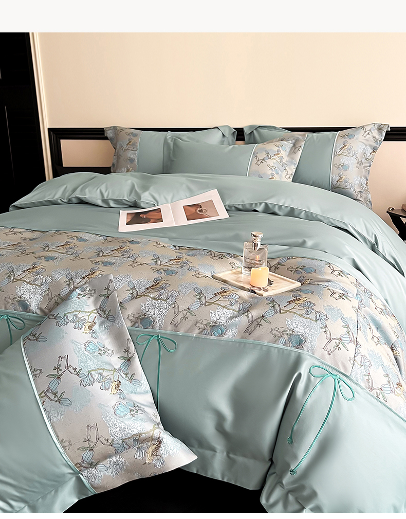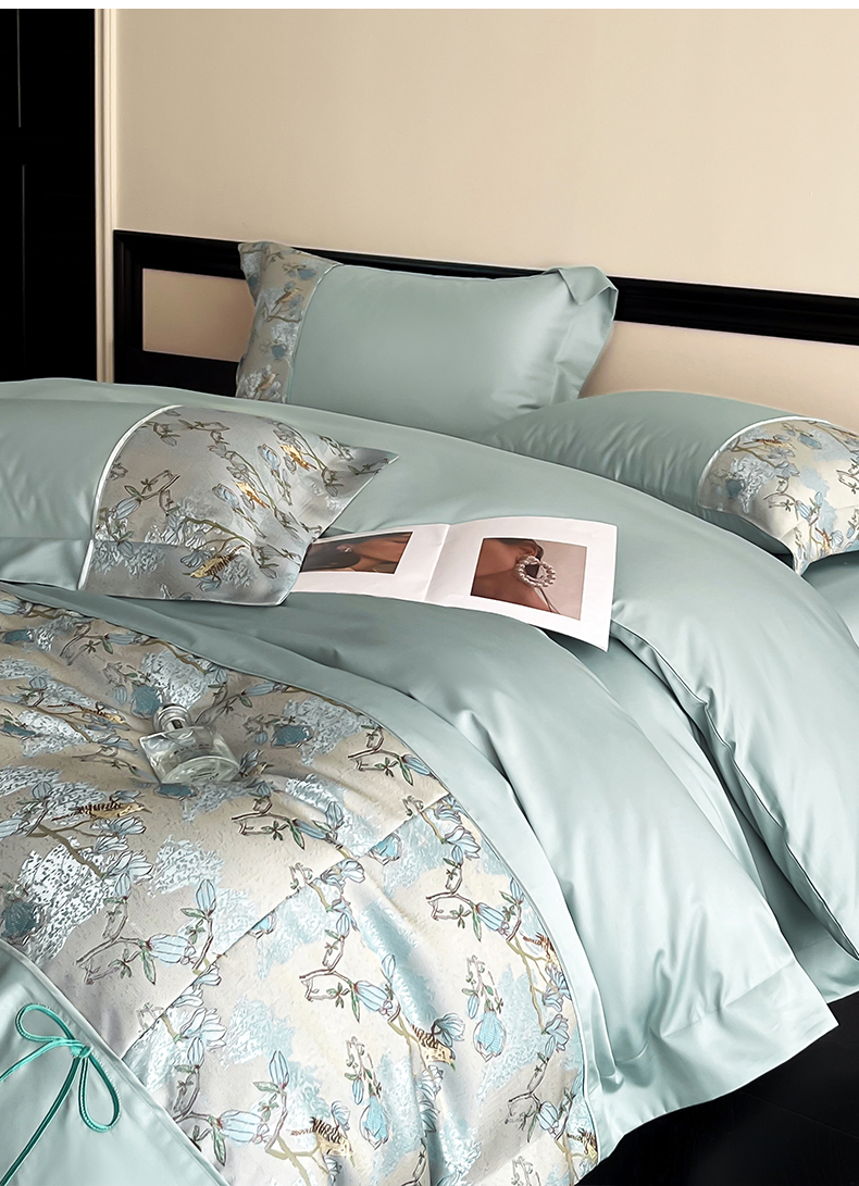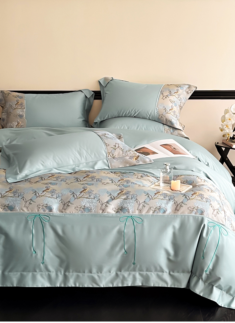 当前位置: 91家纺网 > 商品网购 > 床品套件 > 四件套 > 全棉普通四件套 > 置顶家纺 2025新款国色天香新中式全棉刺绣拼接四件套 幸禾-月影蓝