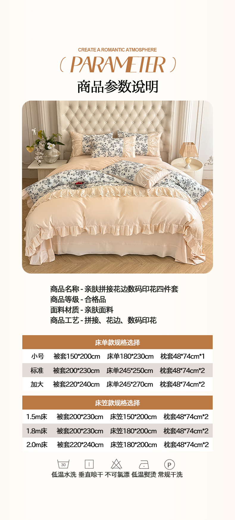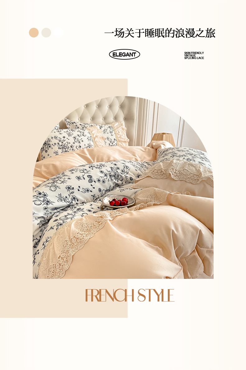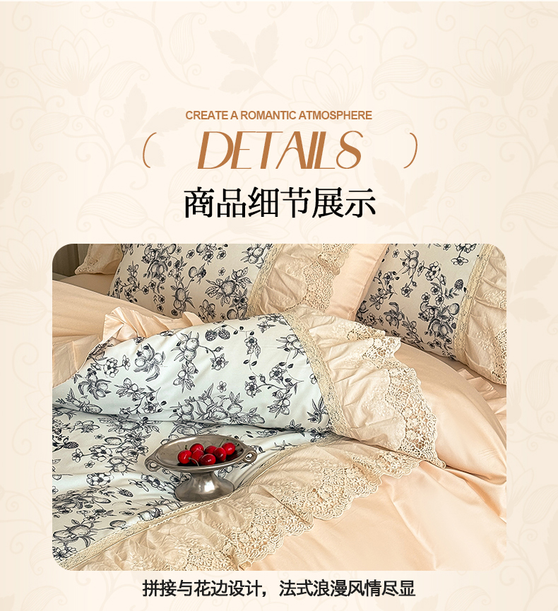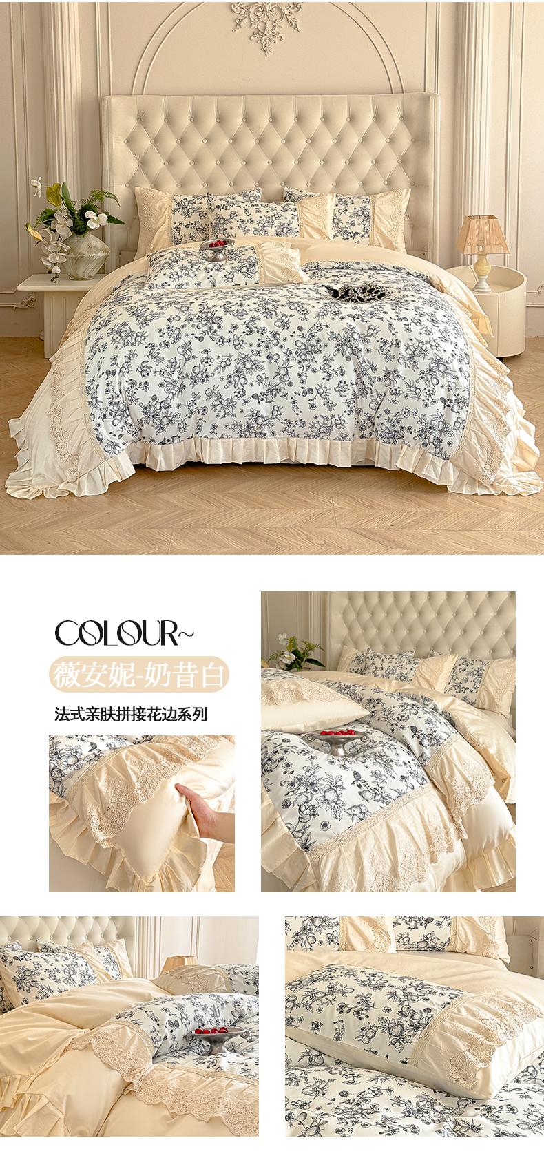 当前位置: 91家纺网 > 商品网购 > 床品套件 > 四件套 > 其它四件套 > (总)置顶家纺 2025秋冬新品法式亲肤花边拼接四件套