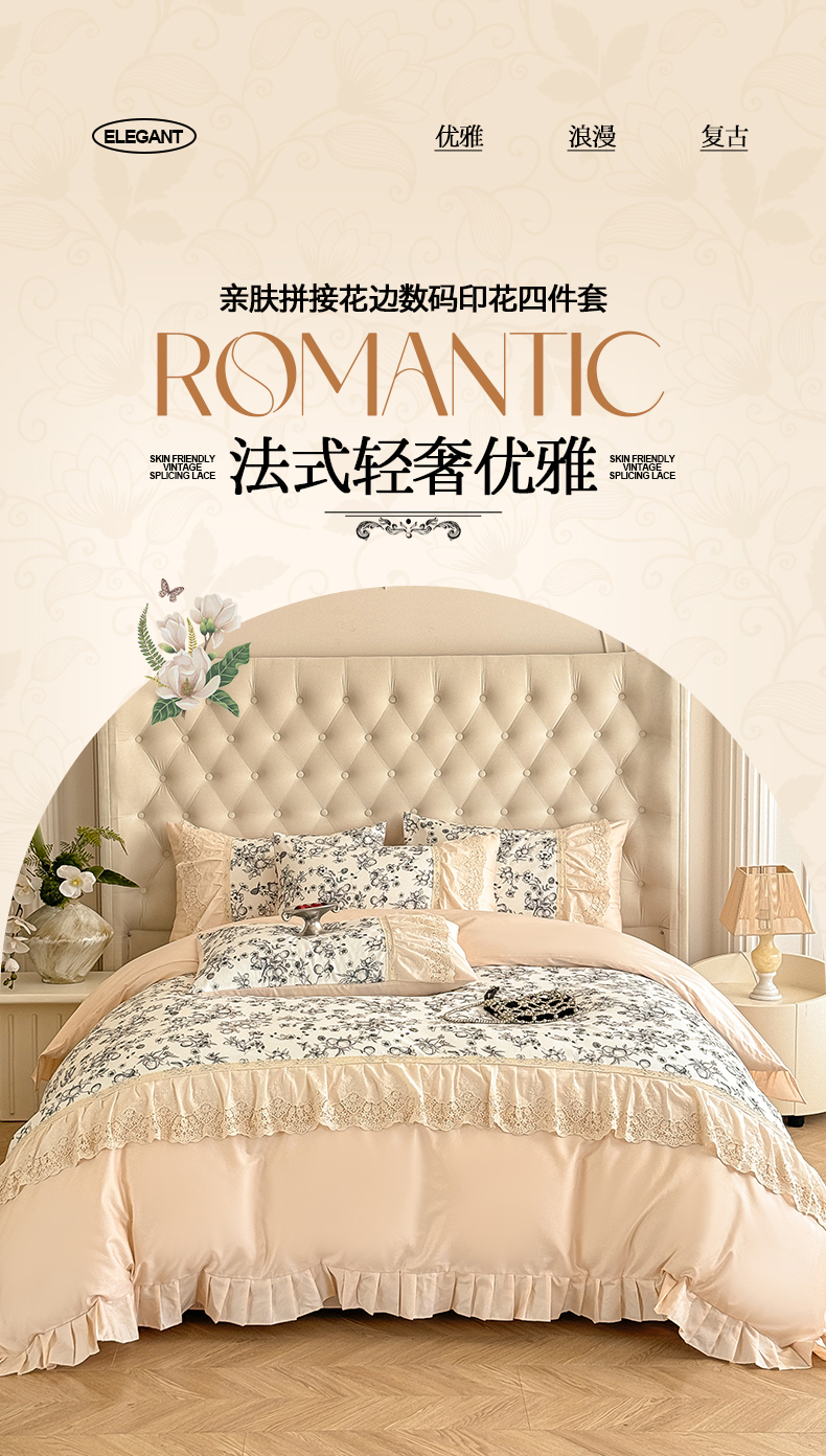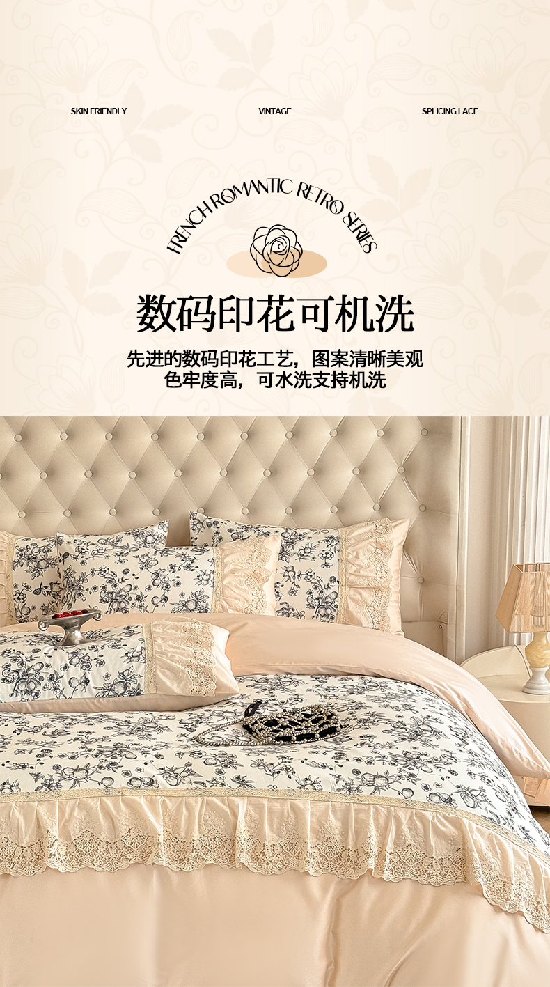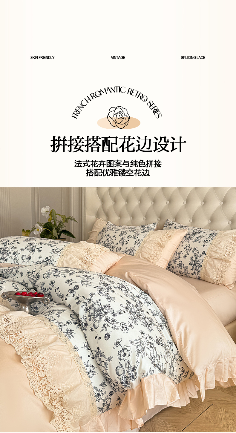 当前位置: 91家纺网 > 商品网购 > 床品套件 > 四件套 > 其它四件套 > (总)置顶家纺 2025秋冬新品法式亲肤花边拼接四件套