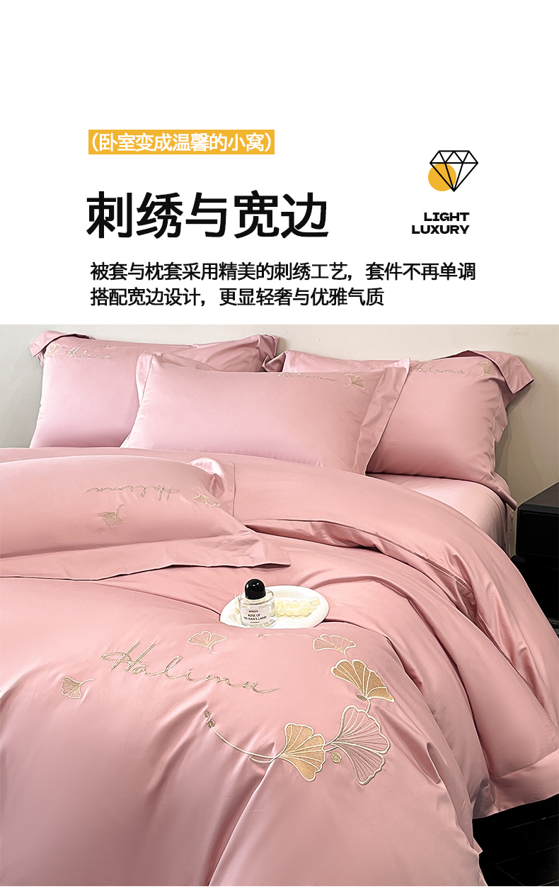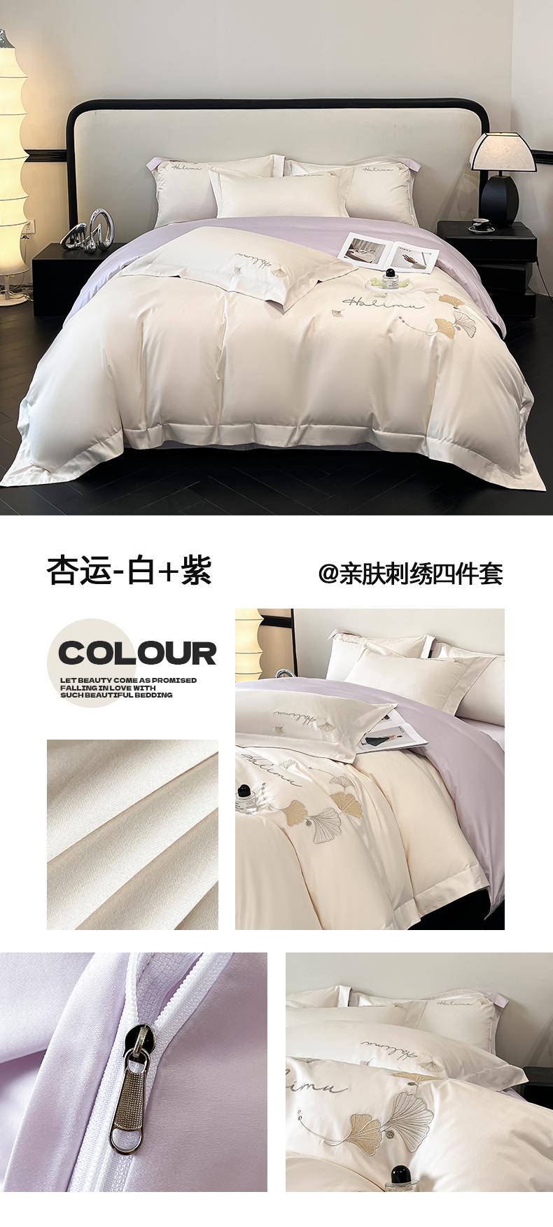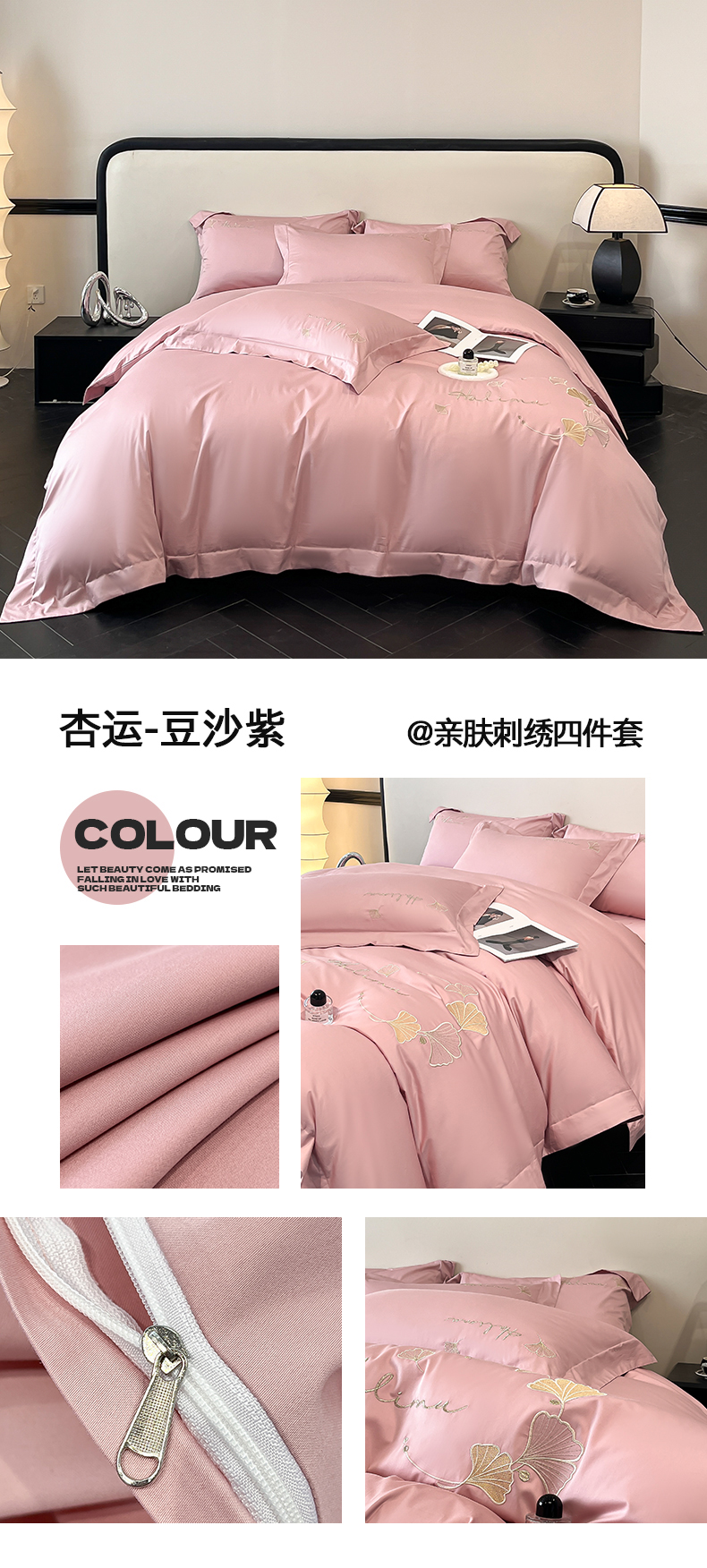 当前位置: 91家纺网 > 商品网购 > 床品套件 > 四件套 > 全棉普通四件套 > 置顶家纺 2025新款亲肤刺绣四件套-杏运 杏运-豆沙紫