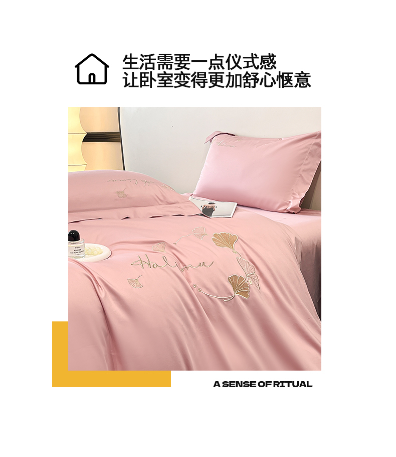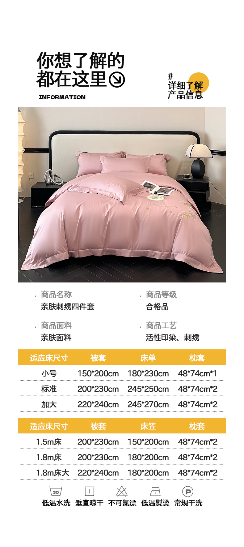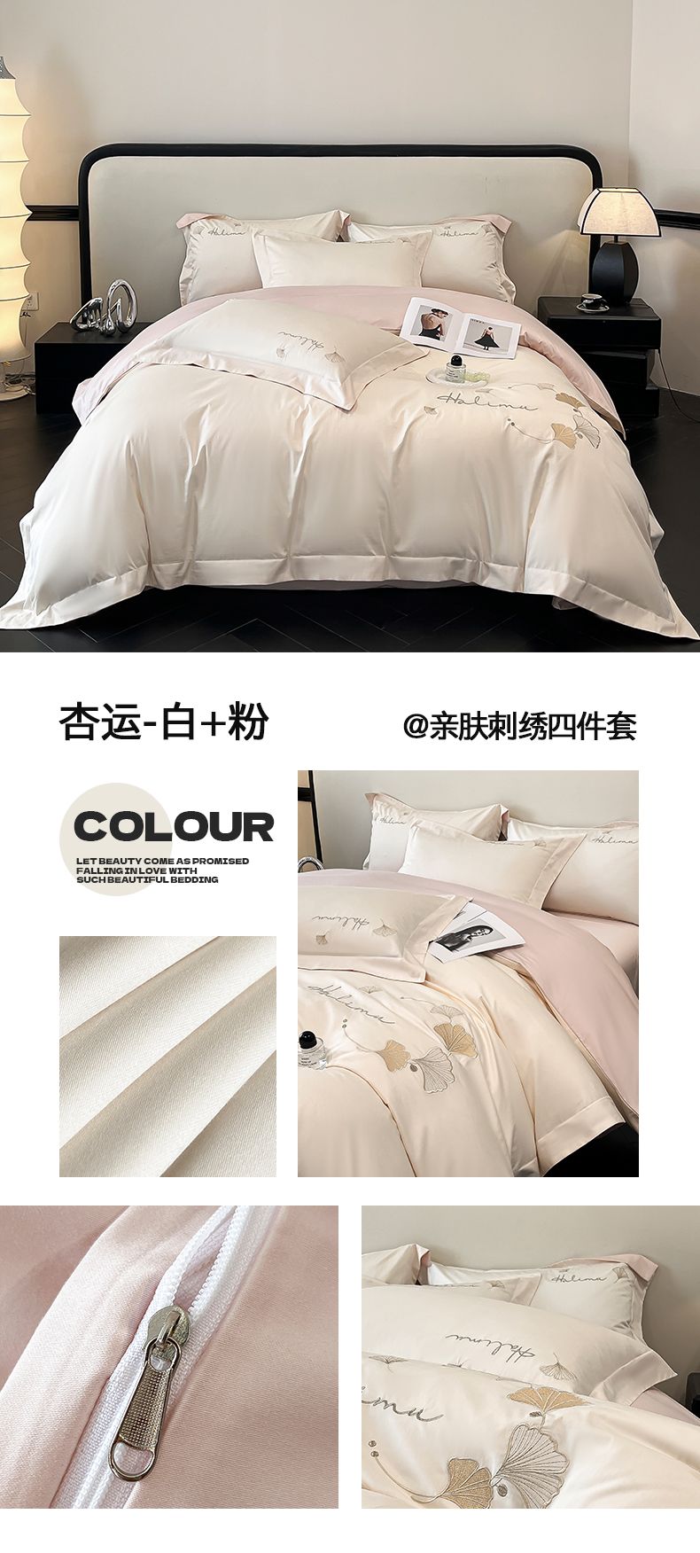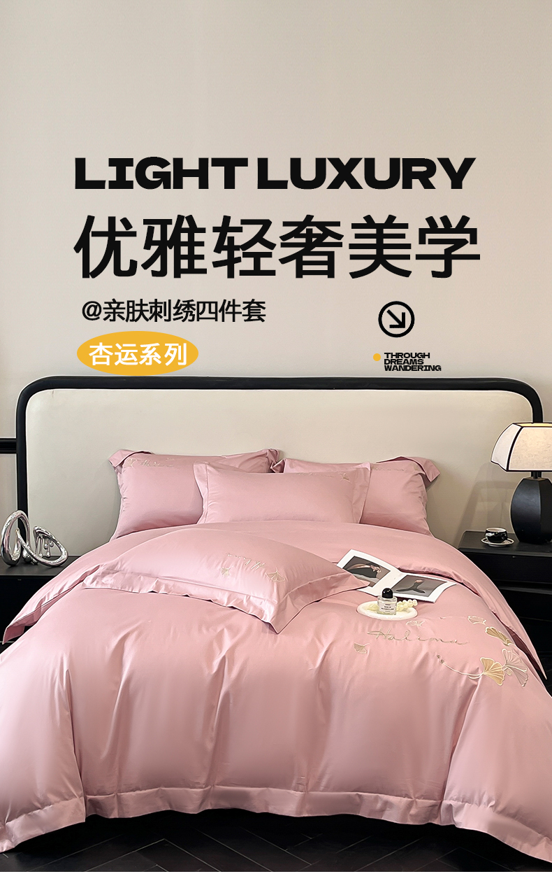 当前位置: 91家纺网 > 商品网购 > 床品套件 > 四件套 > 全棉普通四件套 > 置顶家纺 2025新款亲肤刺绣四件套-杏运 杏运-豆沙紫