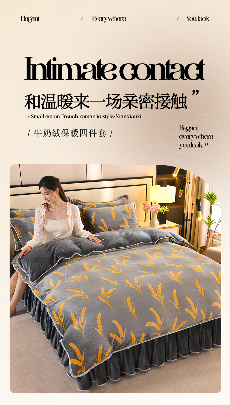 商品名称:2025新款高克重8斤金貂绒牛奶绒四件套 麦穗