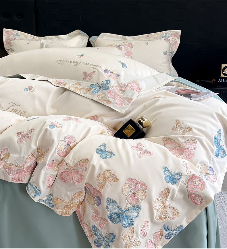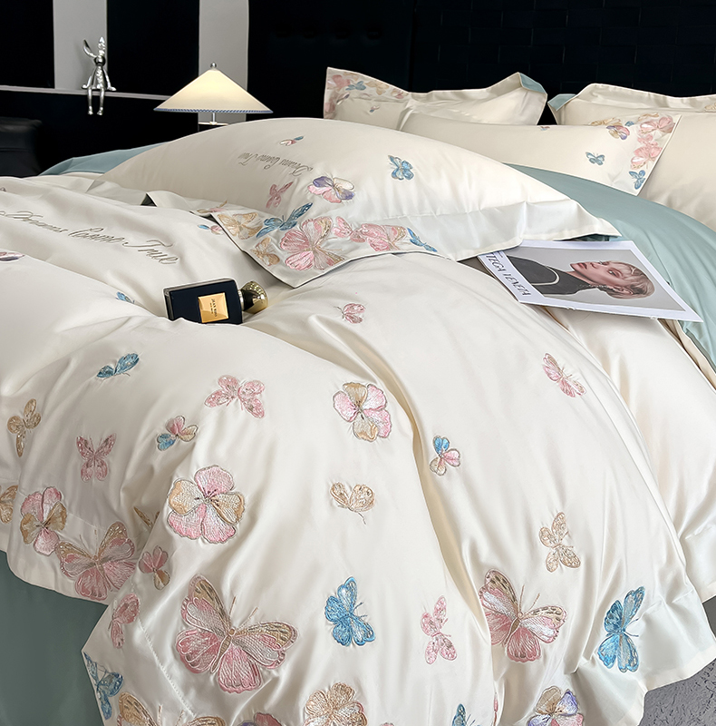 (总)置顶家纺 2026新款花汐子亲肤刺绣小清新四件套,花汐子-白+豆沙,花汐子-白+繁星蓝,花汐子-白+粉,花汐子-白+香芋紫,花汐子-豆沙,花汐子-繁星蓝,花汐子-天蓝,花汐子-香芋紫