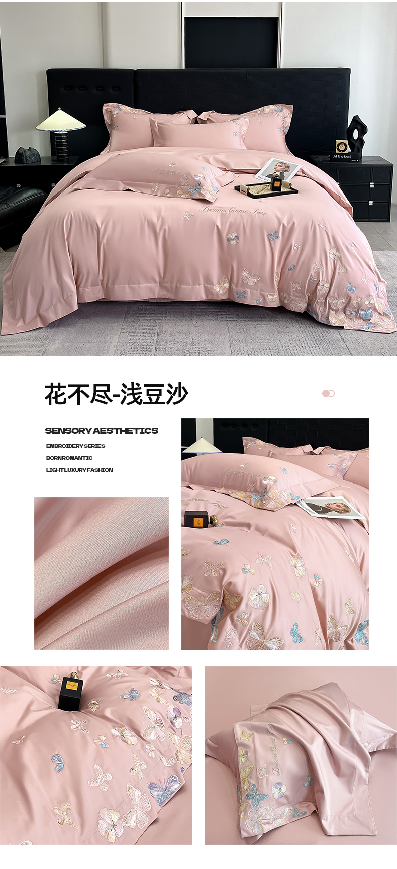 商品名称:(总)置顶家纺 2025新款亲肤加厚磨毛刺绣四件套-花不尽