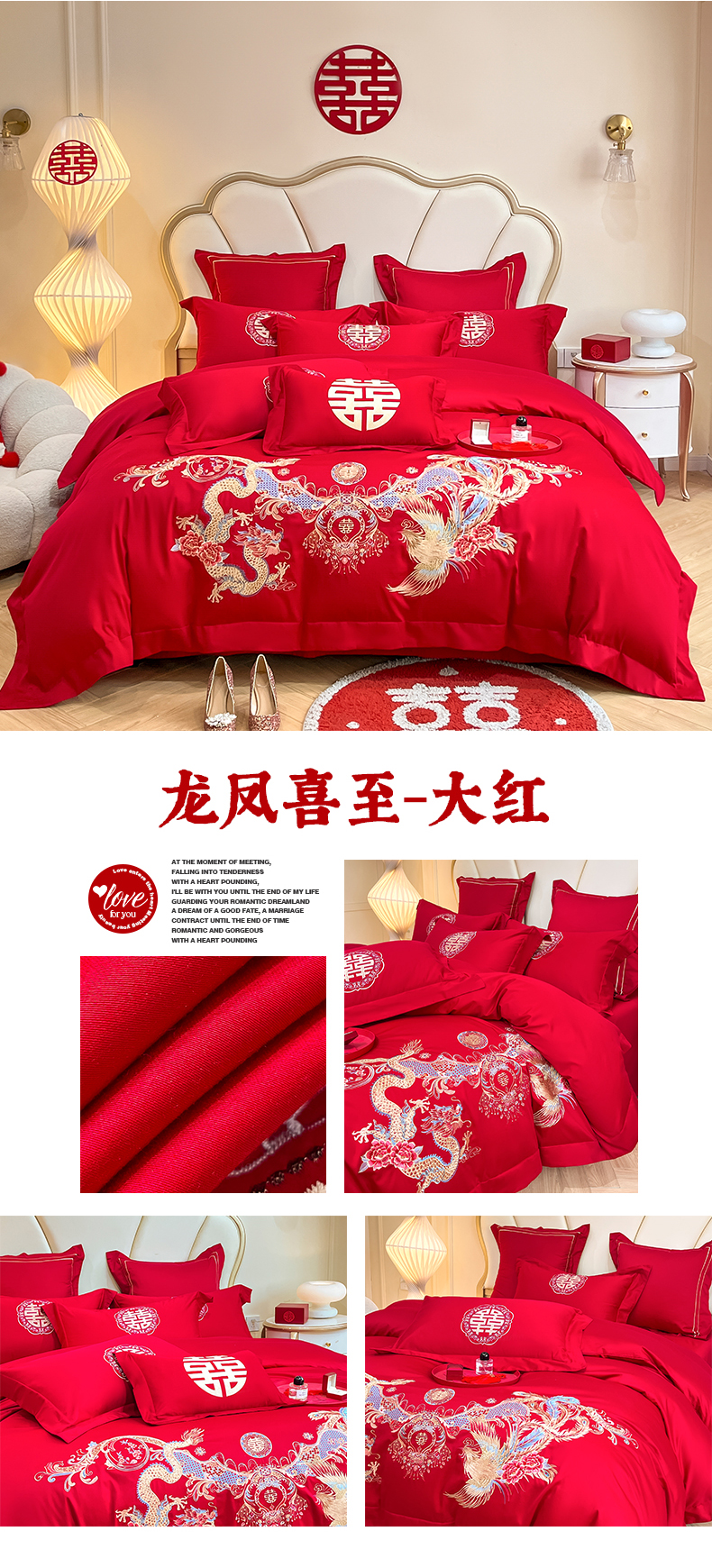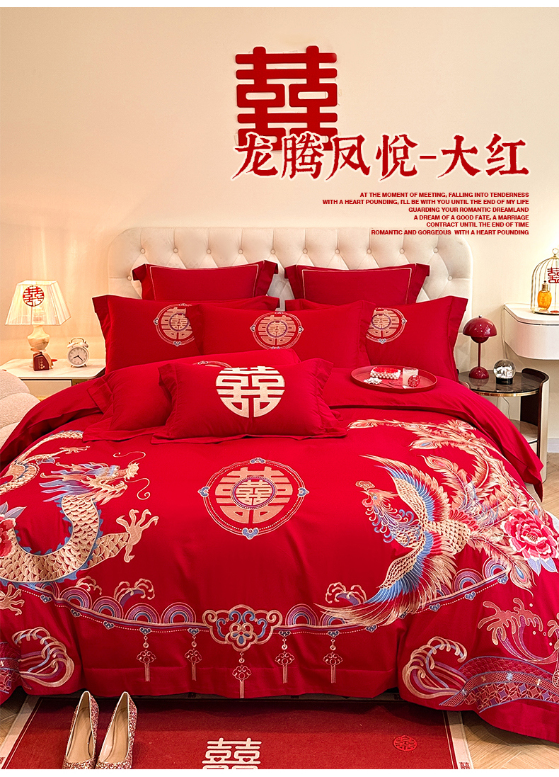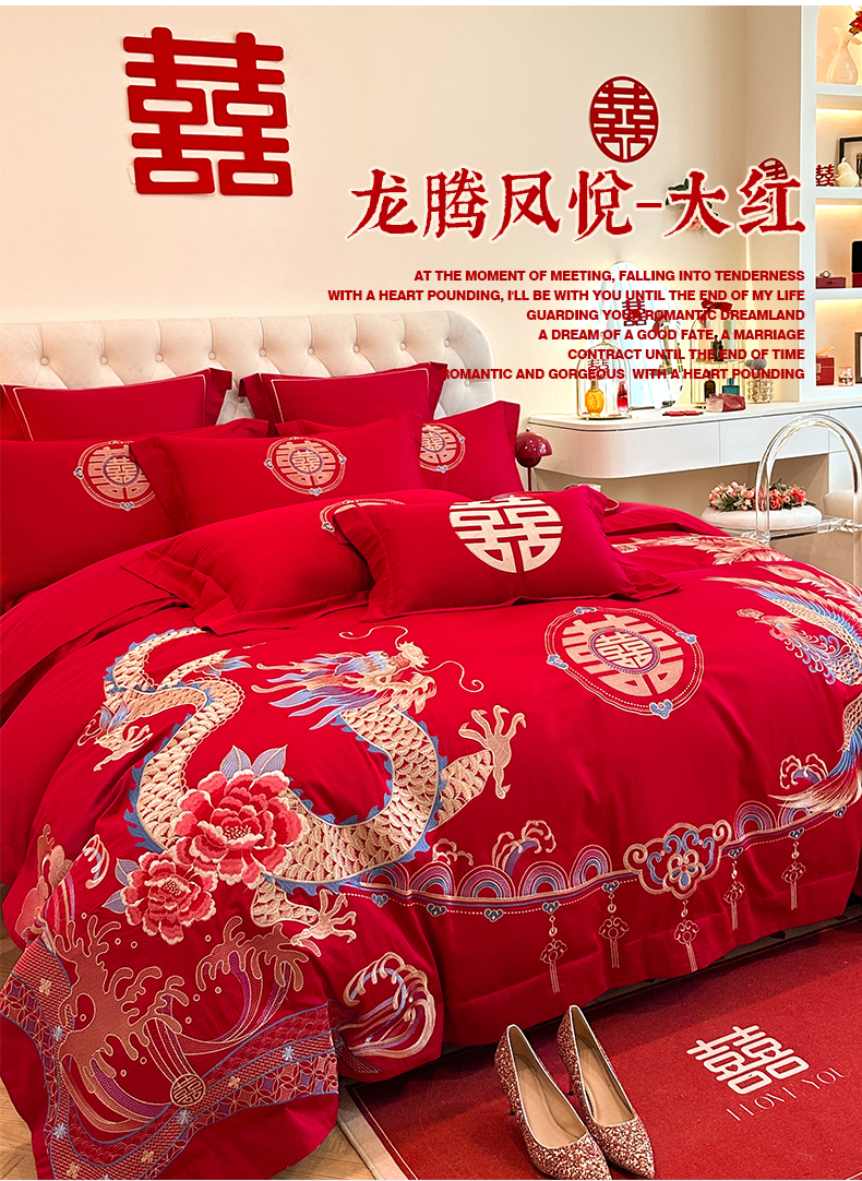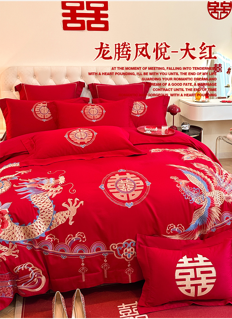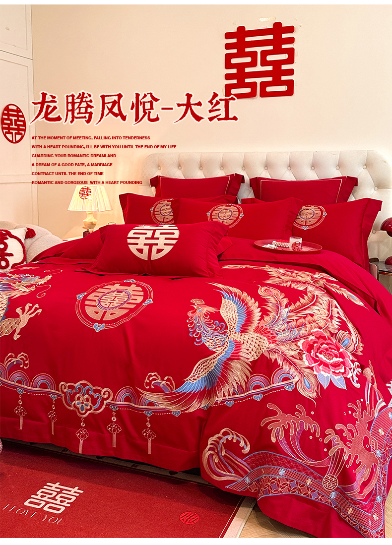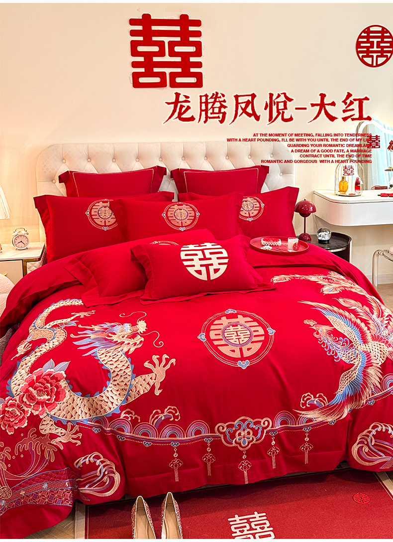 当前位置: 91家纺网 > 商品网购 > 床品套件 > 四件套 > 婚庆四件套 > 置顶家纺 2025新款亲肤刺绣婚庆磨毛四件套 龙腾凤悦-大红