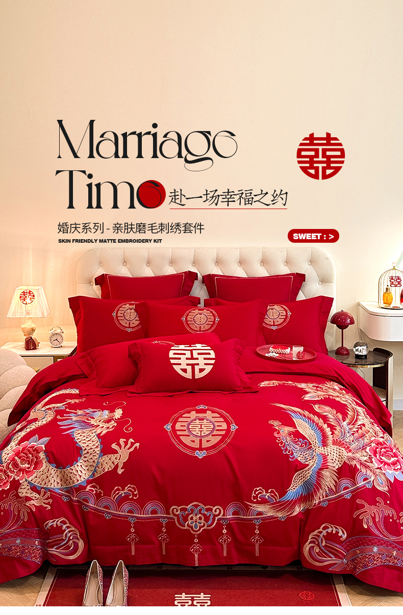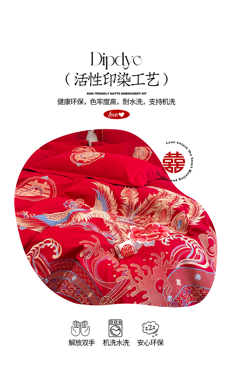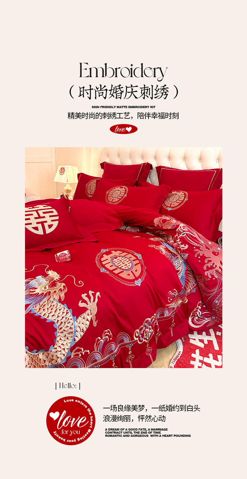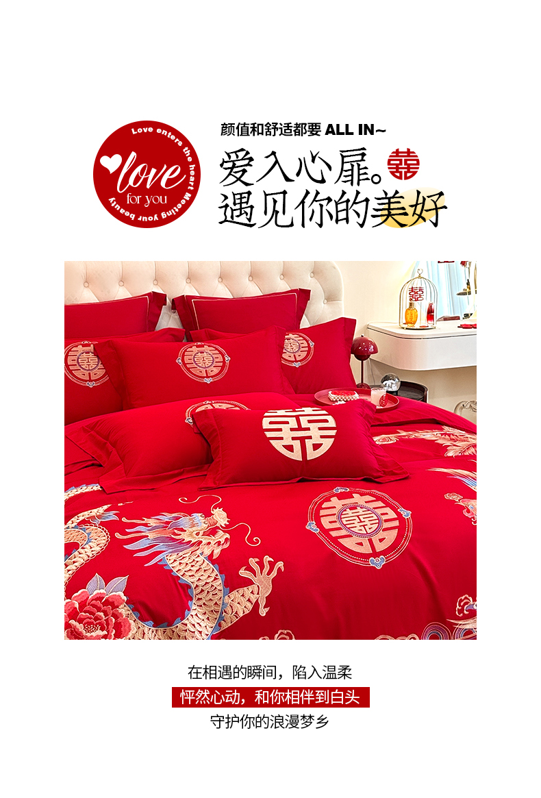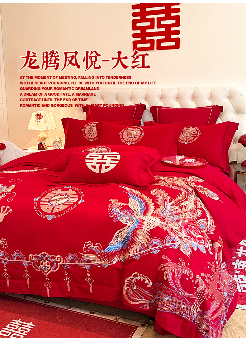 当前位置: 91家纺网 > 商品网购 > 床品套件 > 四件套 > 婚庆四件套 > 置顶家纺 2025新款亲肤刺绣婚庆磨毛四件套 龙腾凤悦-大红