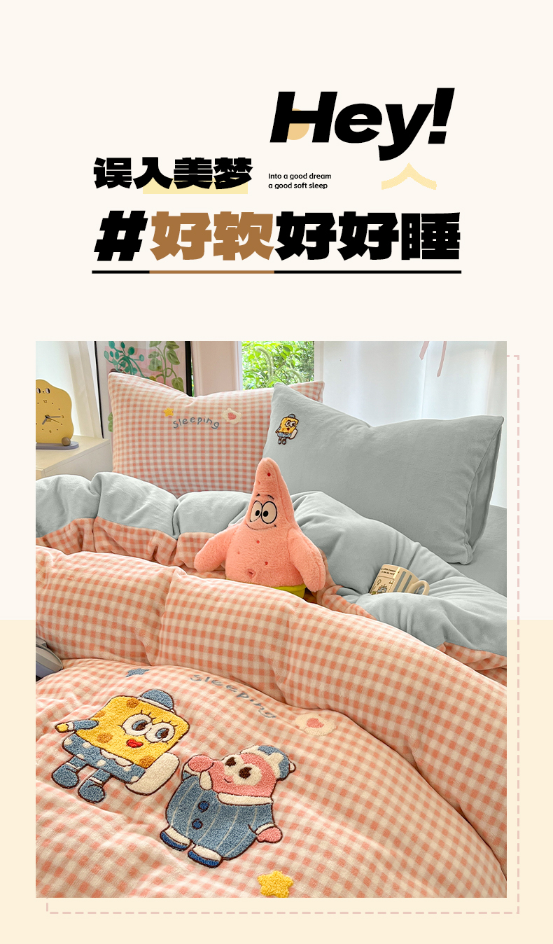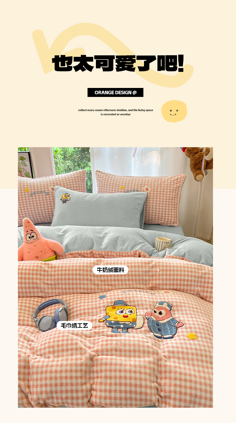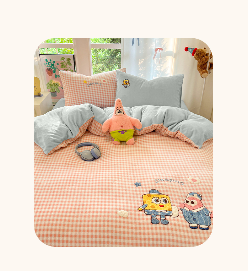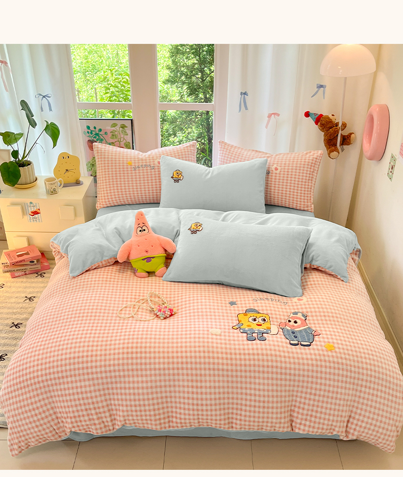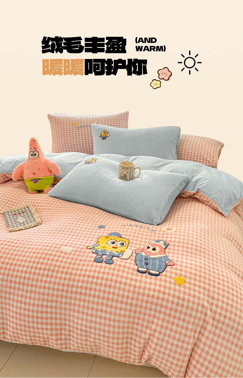 如一 2025新款卡通毛巾绣系列牛奶绒四件套 海绵宝宝
