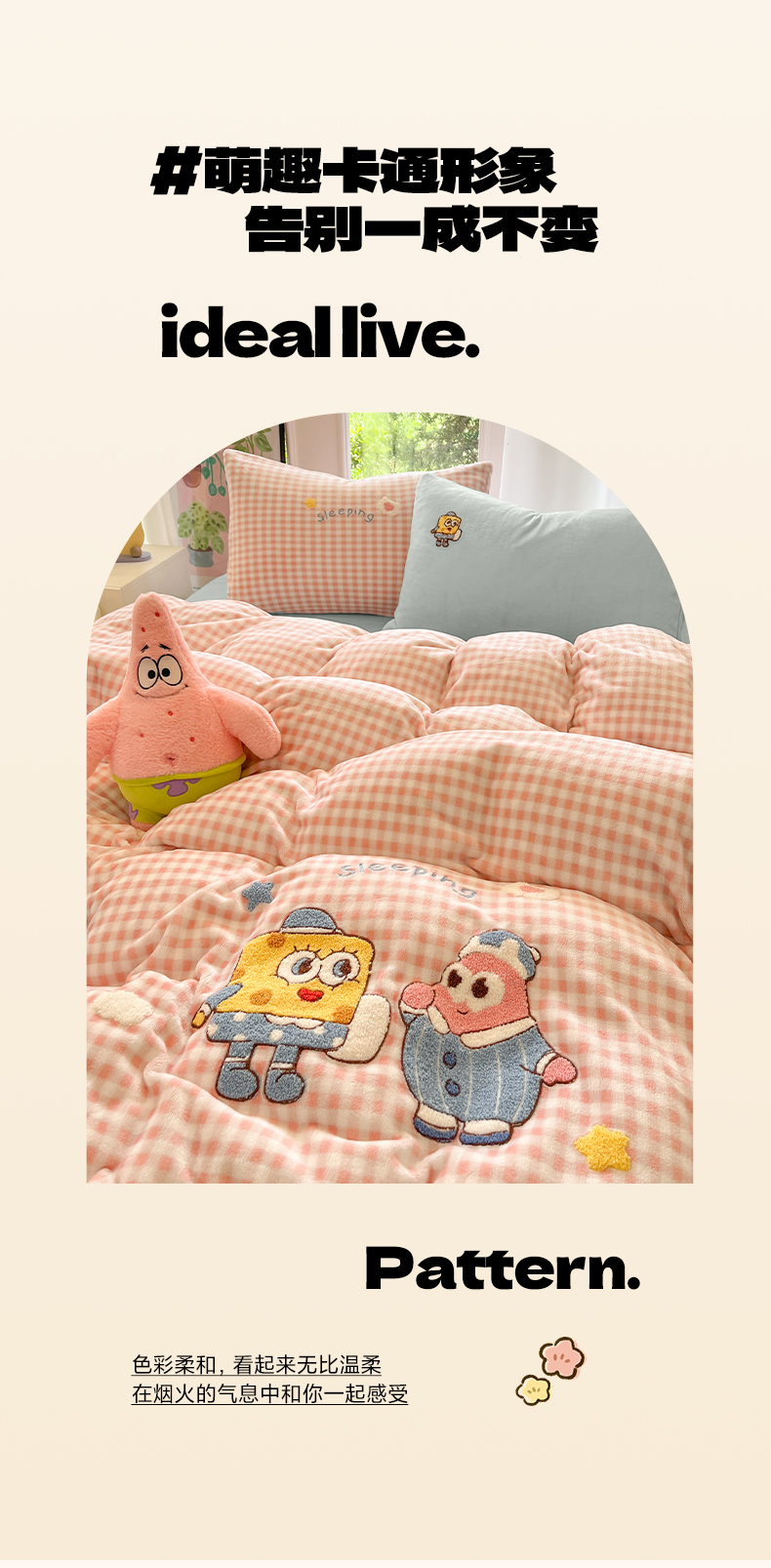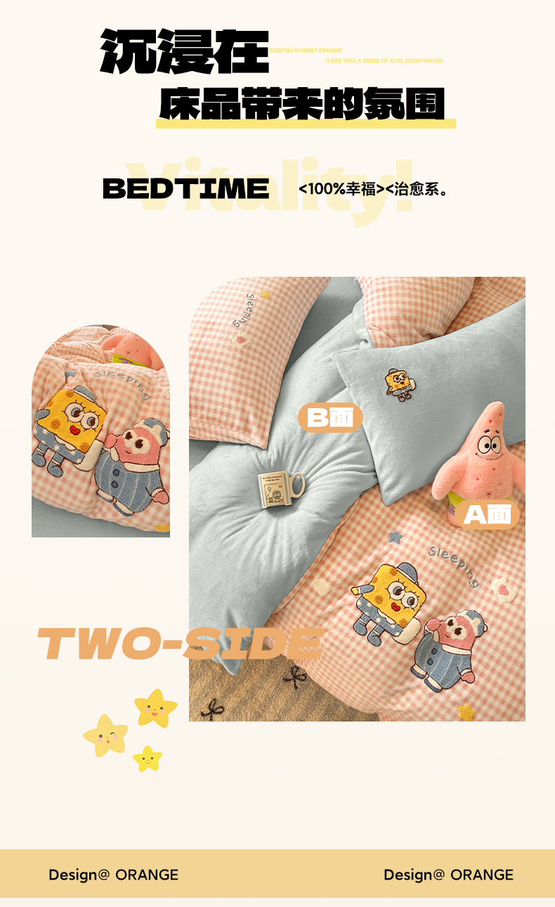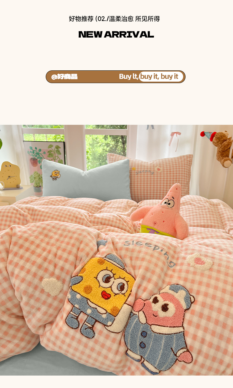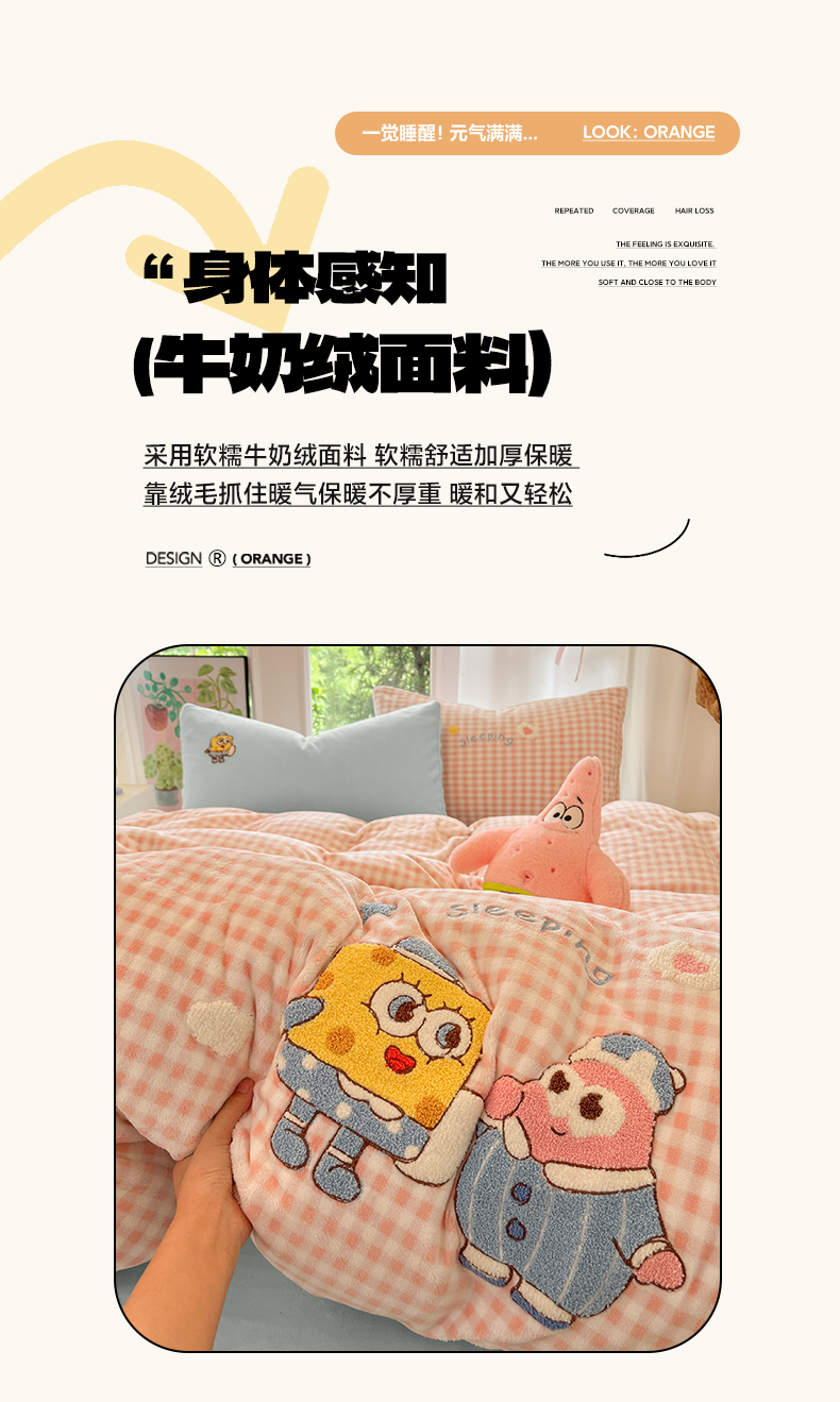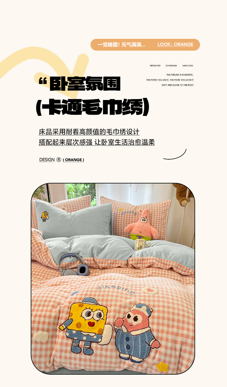 如一 2025新款卡通毛巾绣系列牛奶绒四件套 海绵宝宝