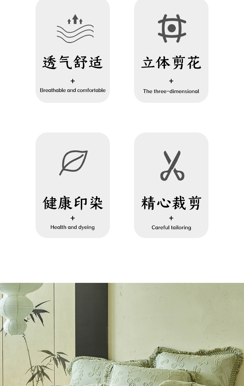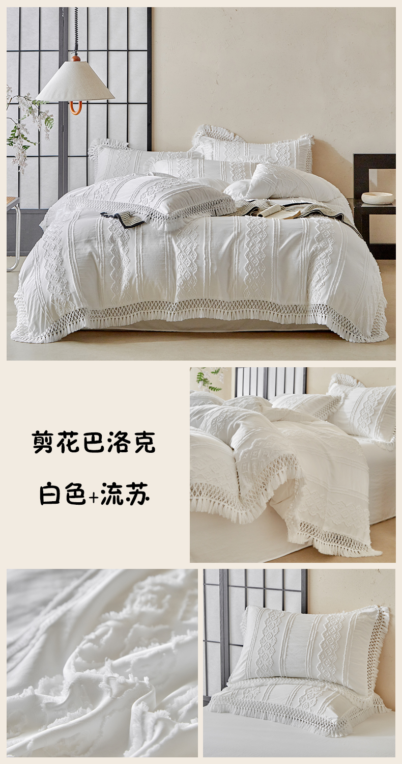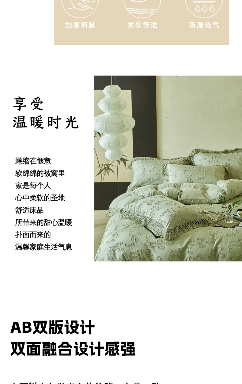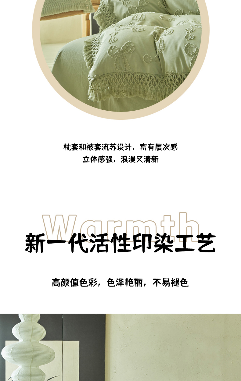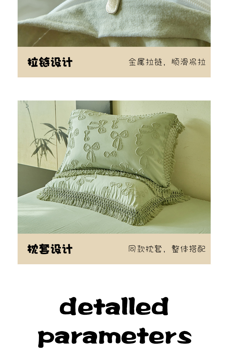 当前位置: 91家纺网 > 商品网购 > 床品套件 > 四件套 > 其它四件套 > 缘生活 2025新款立体剪花流苏四件套 四季通用-新增花型 剪花蝴蝶结 流苏+抹茶绿
