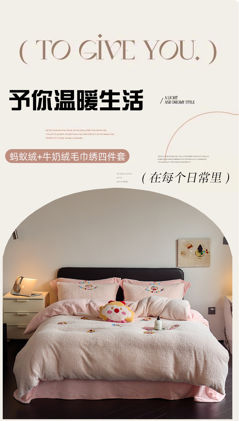 当前位置: 91家纺网 > 商品网购 > 床品套件 > 四件套 > 牛奶绒四件套 > 禾时 2025新款保暖舒适蚂蚁绒牛奶绒毛巾绣四件套 淑女屋