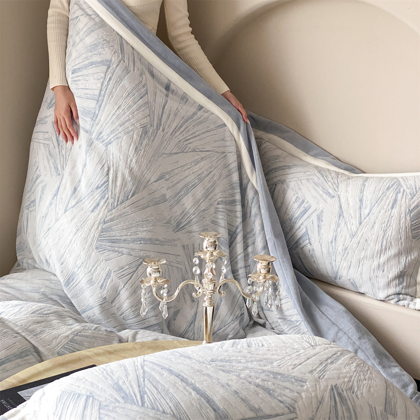 (总)馨蕊家居 2025新款意大利进口高精密刺绣拼角工艺秋冬法式高奢雪貂绒系列-绒雪芙 会员-10【券后控价358/378】,绒雪芙-奶咖,绒雪芙-蔷薇粉,绒雪芙-婉若紫,绒雪芙-月光白
