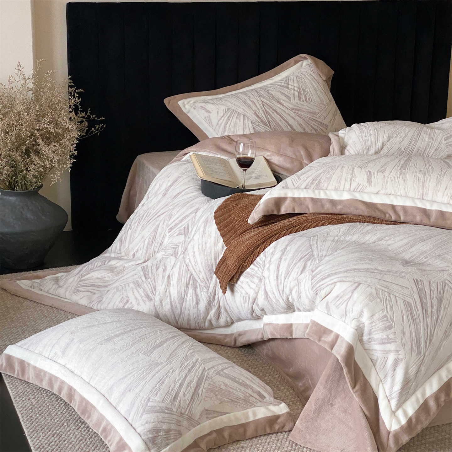 (总)馨蕊家居 2025秋冬新品超细旦磨毛高奢系列四件套-知禾,知禾-高级灰,知禾-蔷薇粉,知禾-月光白
