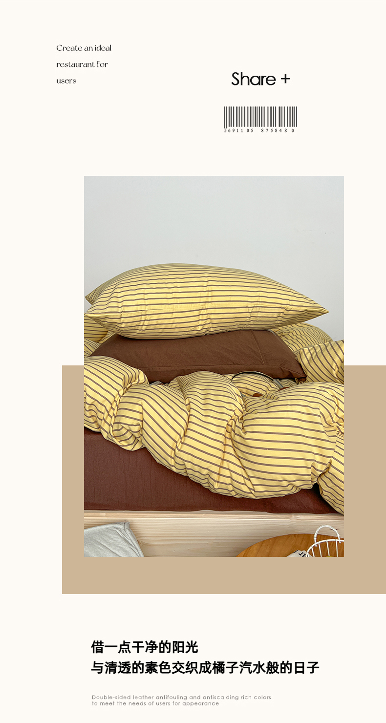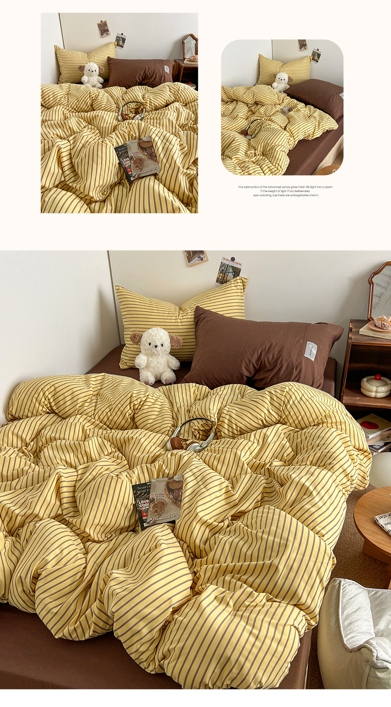 当前位置: 91家纺网 > 商品网购 > 床品套件 > 四件套 > 水洗棉四件套 > 暖芯优选 2025新款韩式无印风水洗棉拼色学生三件套床单床笠款四件套 条纹柠檬黄+咖啡