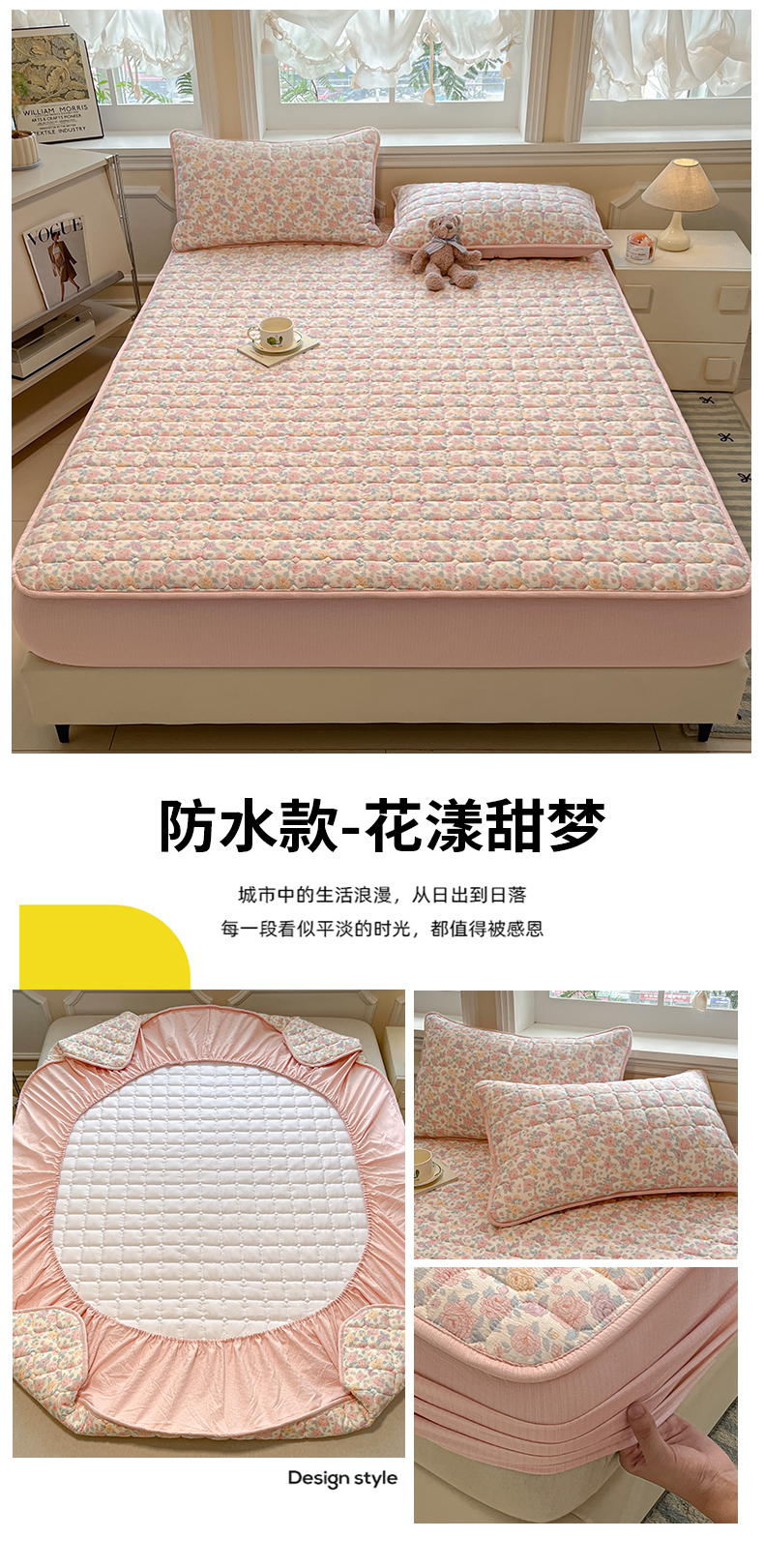 九亭家纺 2025新款A类皱皱纱印花防水夹棉床笠 防水款-莓格甜梦