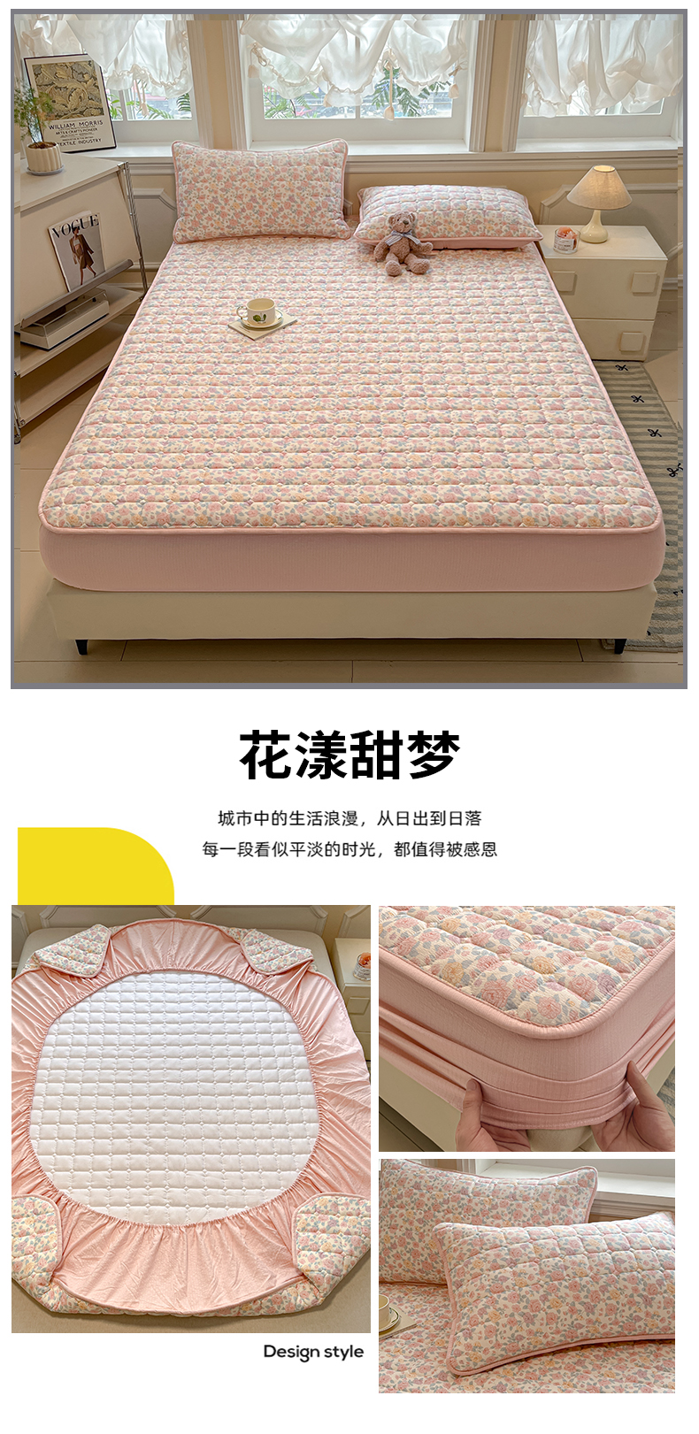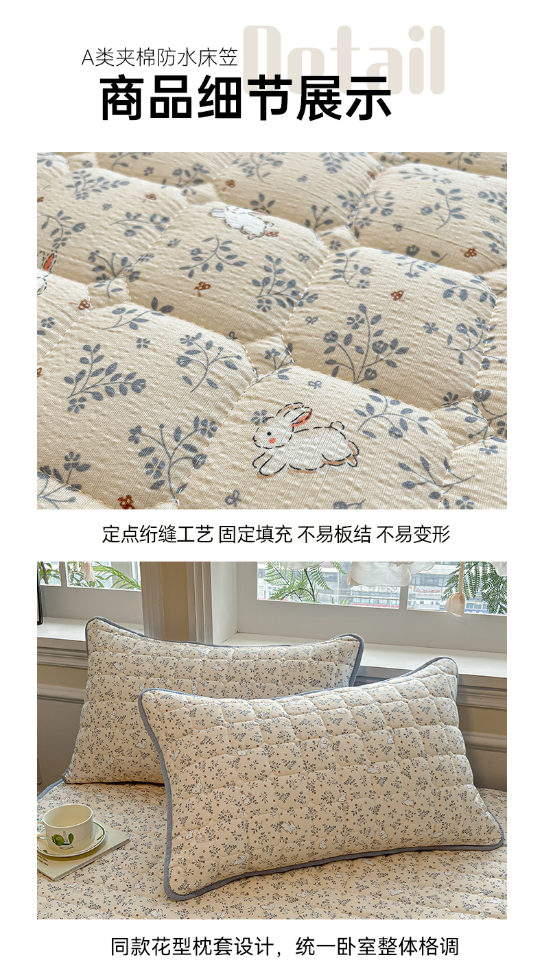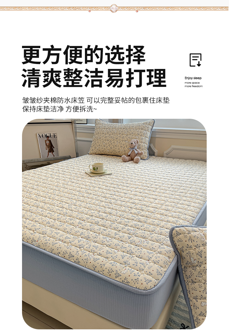 • 91家纺网 家纺一手货源 找家纺 九亭家纺 2025新款A类皱皱纱印花防水夹棉床笠 普通款-萌熊花漾