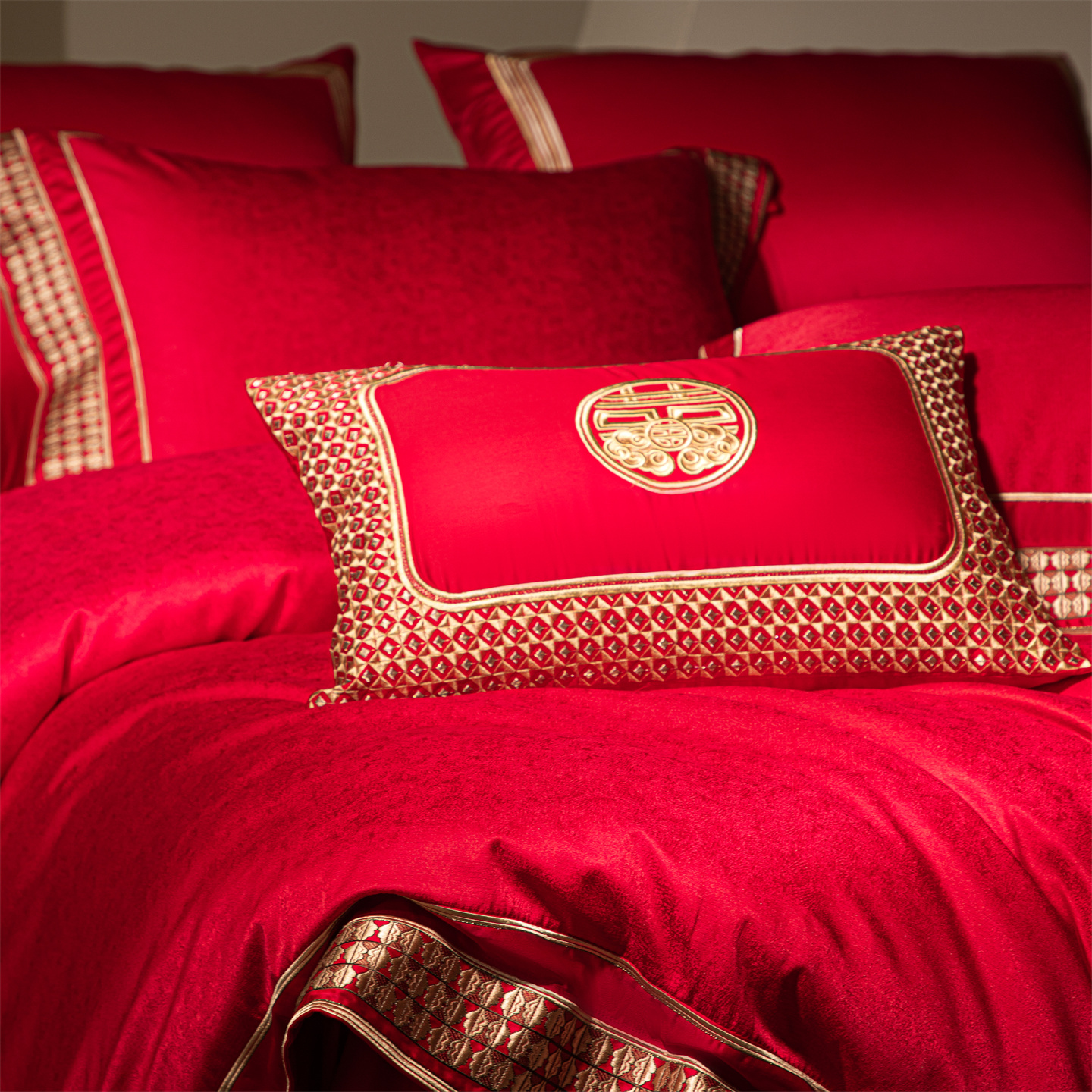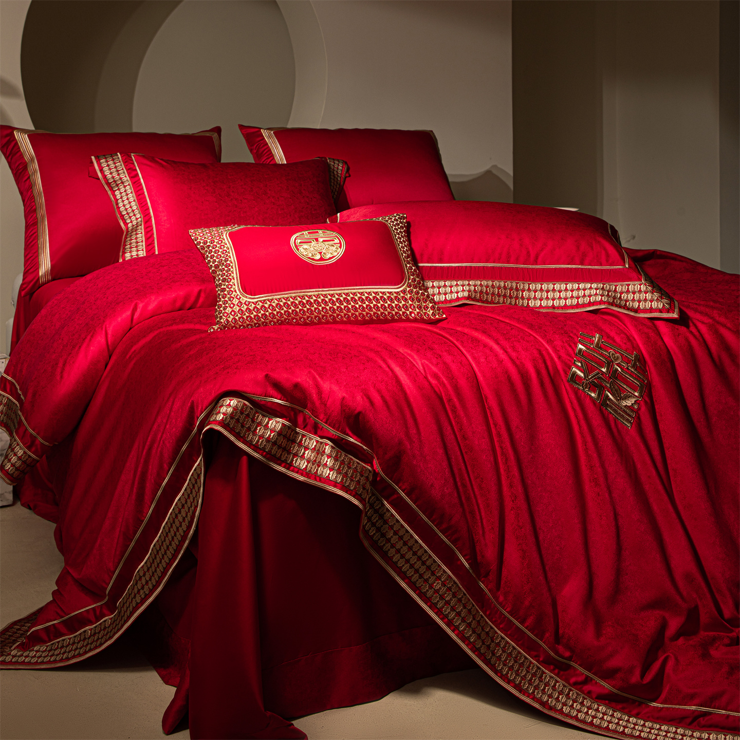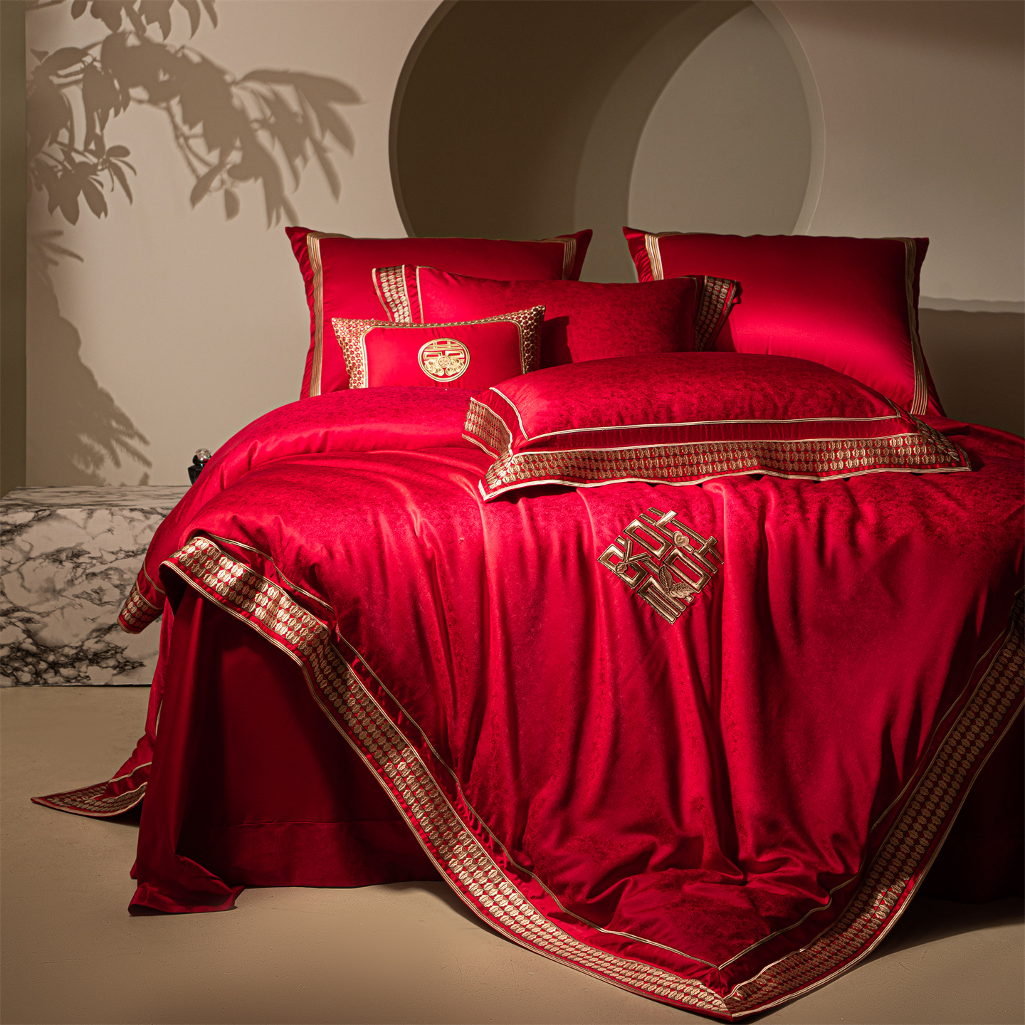 商品名称:(总)佳汐蓝家纺 2025新款100支全棉刺绣婚庆四件套-喜书