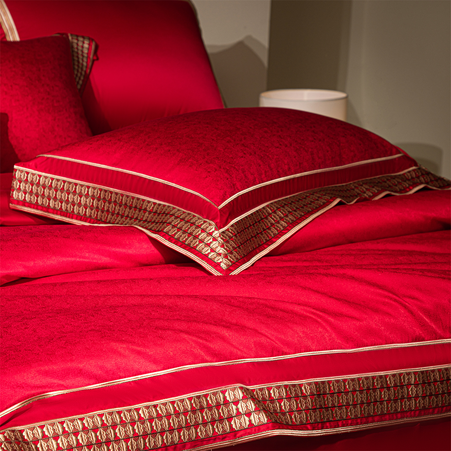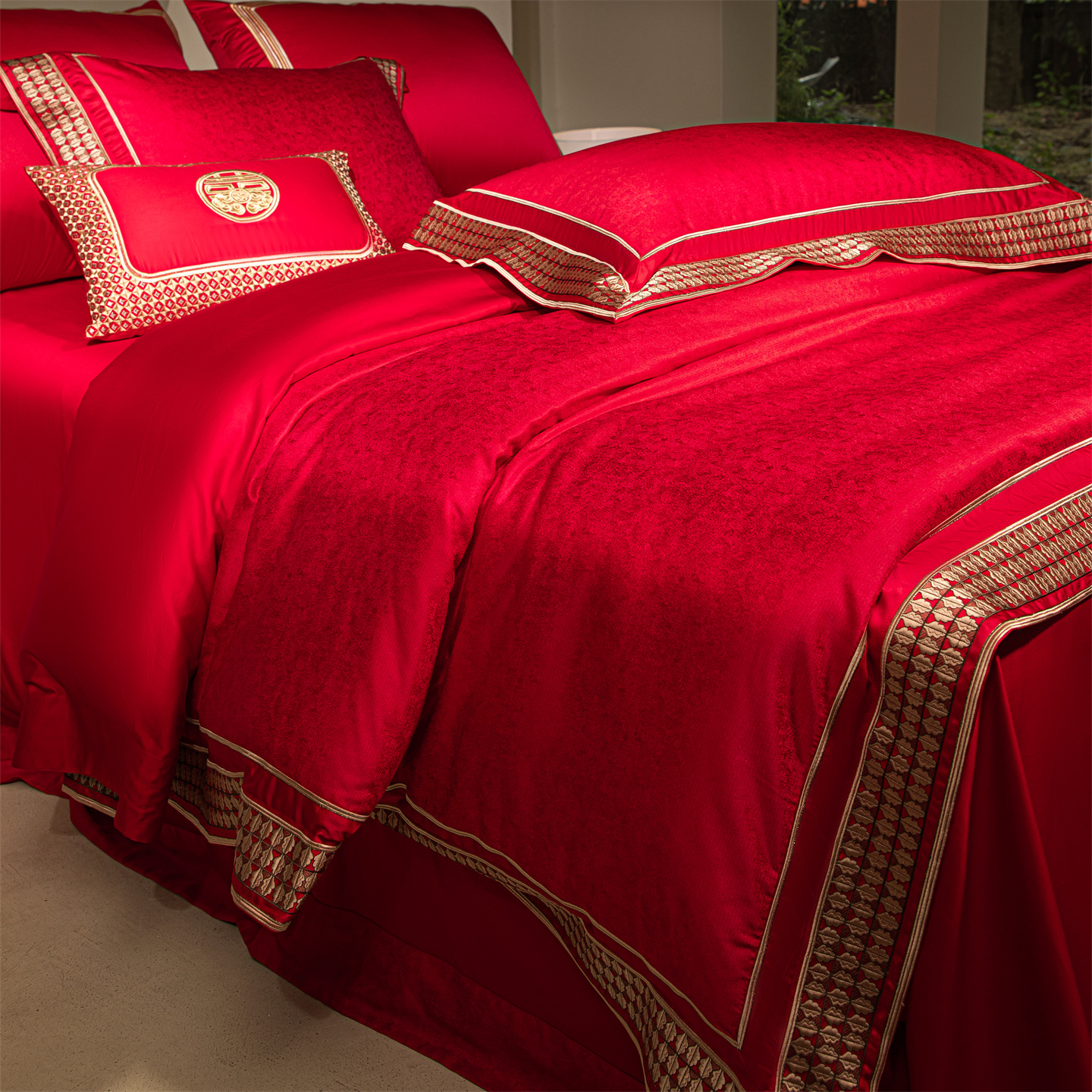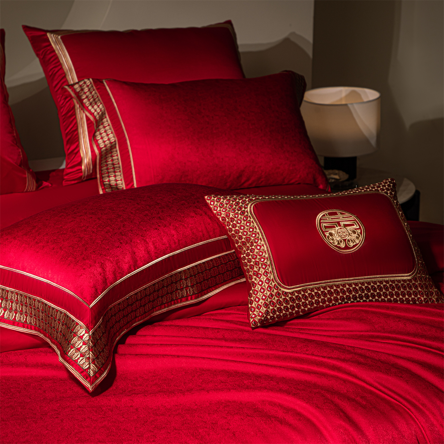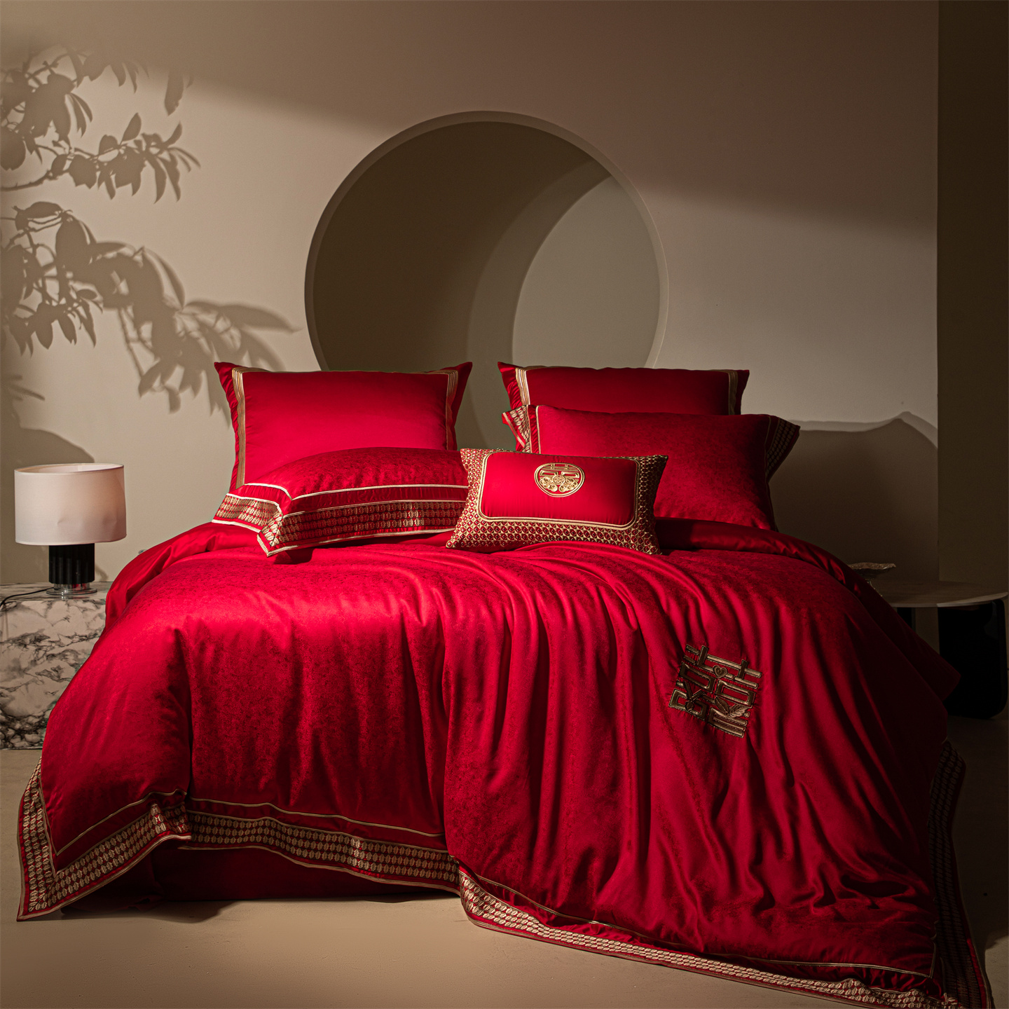 商品名称:(总)佳汐蓝家纺 2025新款100支全棉刺绣婚庆四件套-喜书