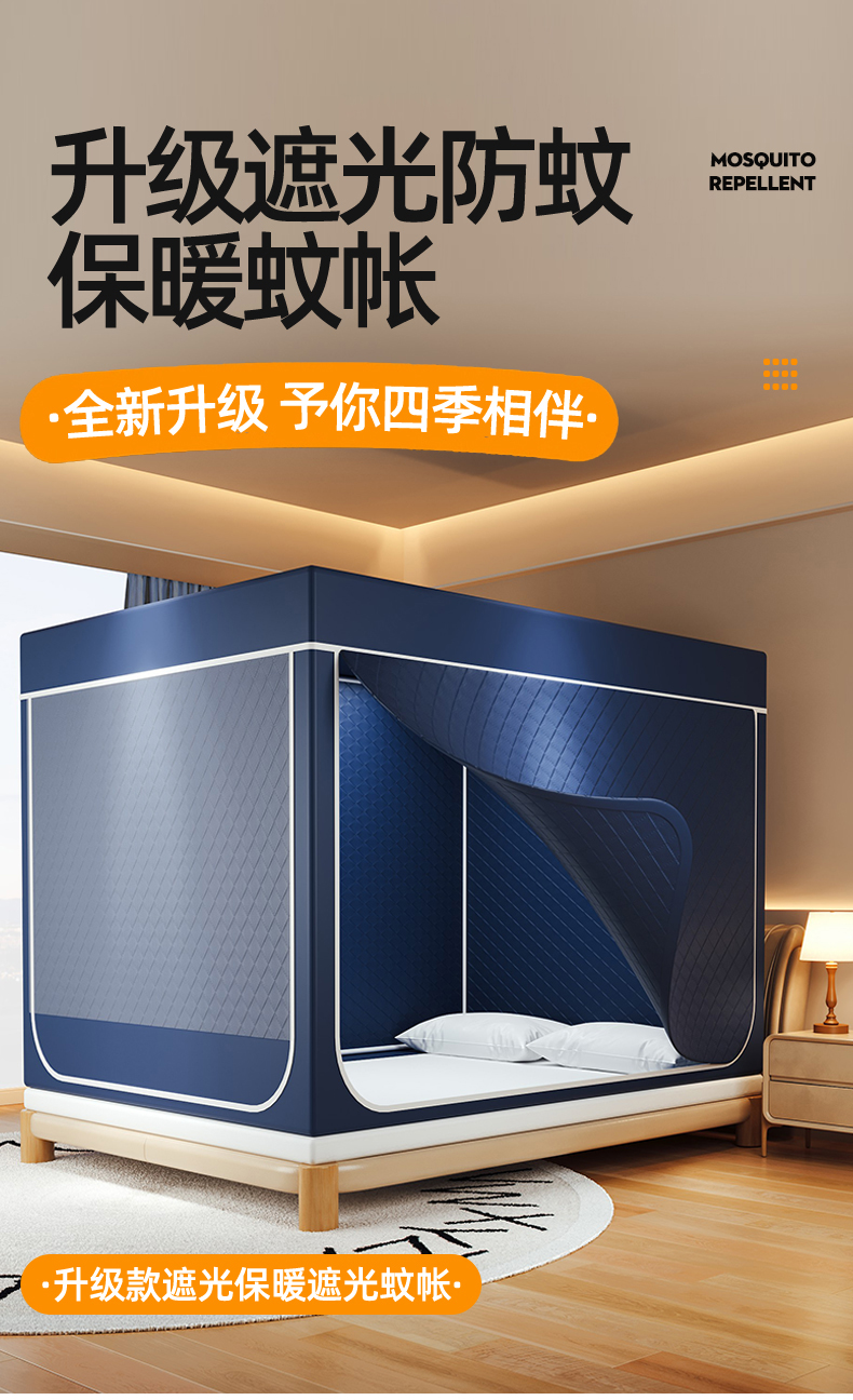 商品名称:2025新款夹棉保暖遮光蚊帐终版 深蓝