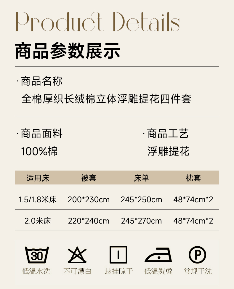 商品名称:琉宿家纺 2026新款长绒棉纯棉知性简雅肌理浮雕提花长绒棉四件套 宁静花开(玉)