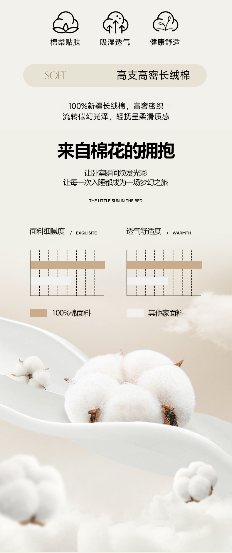 琉宿家纺 2026新款长绒棉纯棉知性简雅肌理浮雕提花长绒棉四件套 宁静花开(玉)