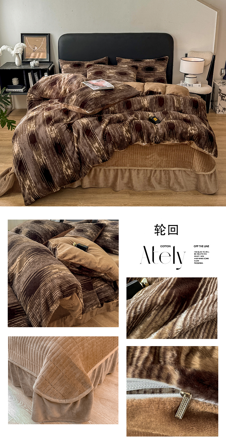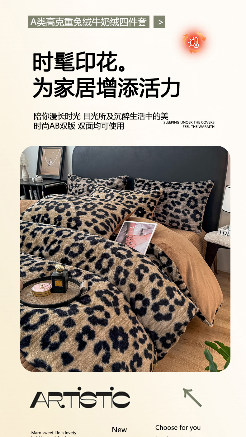(总)乐窝家纺仓储 2025新款【8斤重】轻奢复古美拉德兔兔绒牛奶绒床单床笠床盖款四件套(日发50套优惠8元一套),豹纹灰,蝶舞,虎纹,花语,轮回,豹纹咖